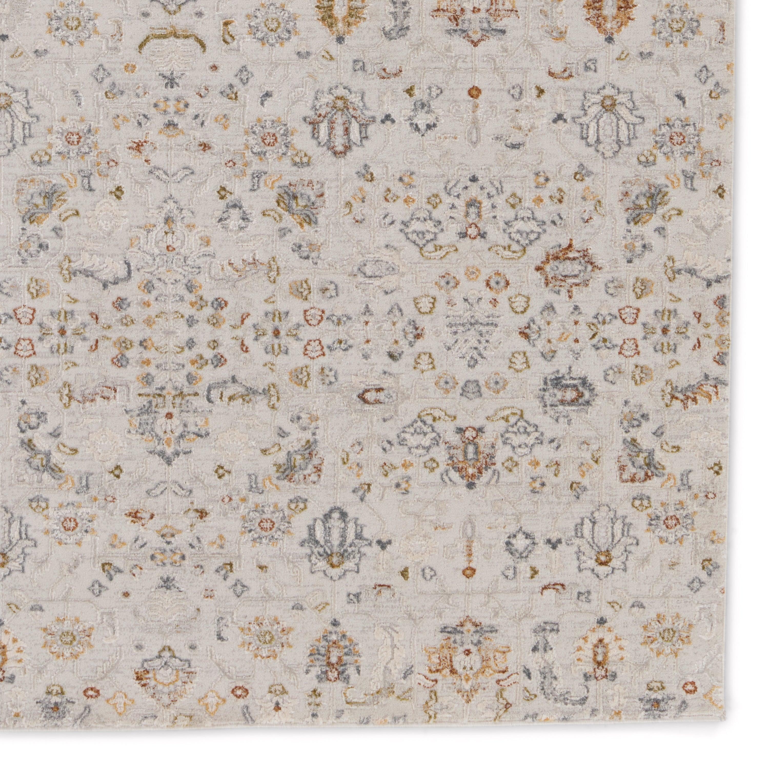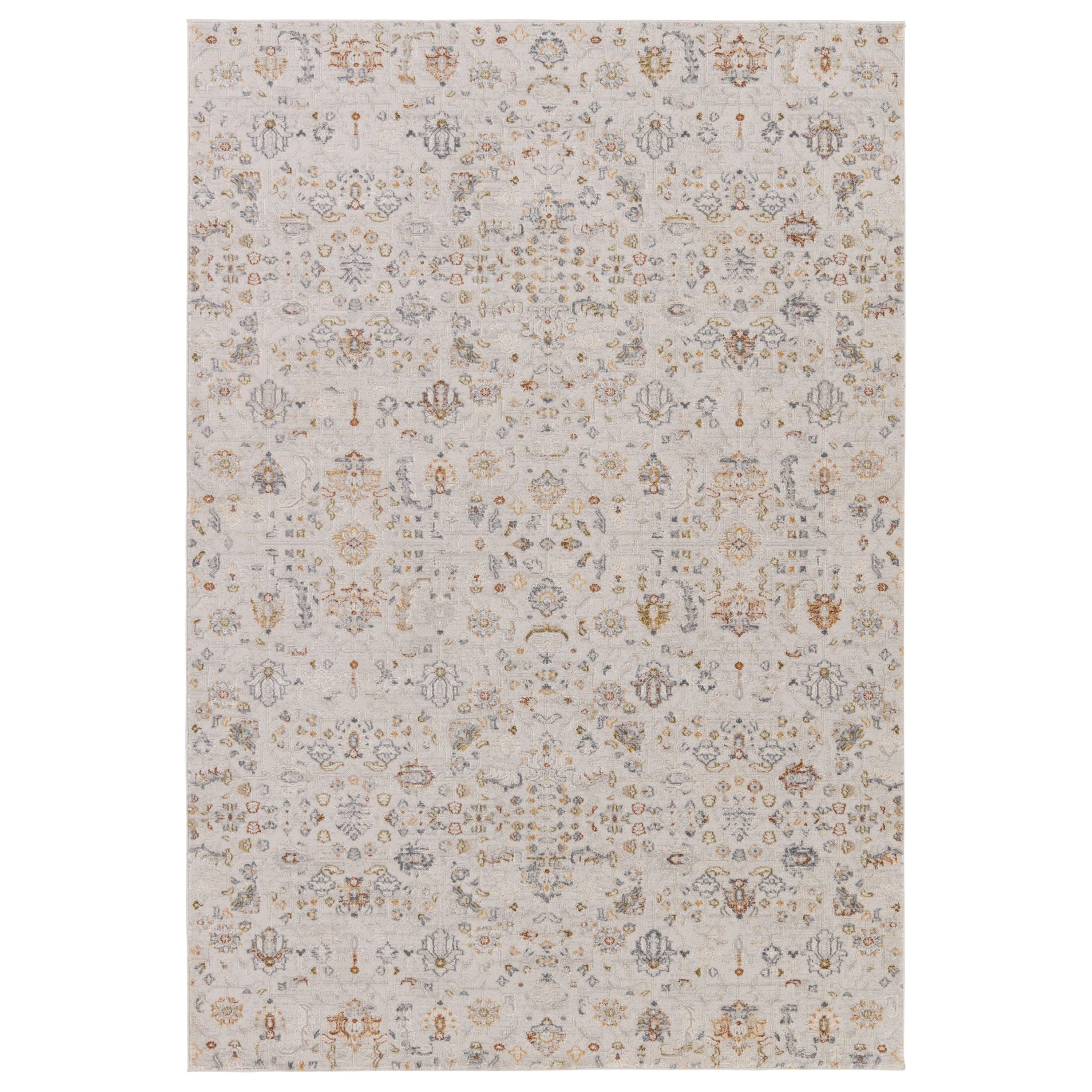 The Cirque collection artistically melds contemporary appeal with the timeless and intricate beauty of antique designs. The Waverly area rug boasts a charming floral pattern in a white, light gray, gold, blue, green, and burnt orange colorway. The pastel hues create a vintage look on this power-loomed viscose and polyester accent, soft with textured high-low pile. This shiny rug thrives in medium and low-traffic spaces, such as bedrooms, formal dining areas, and formal living rooms.