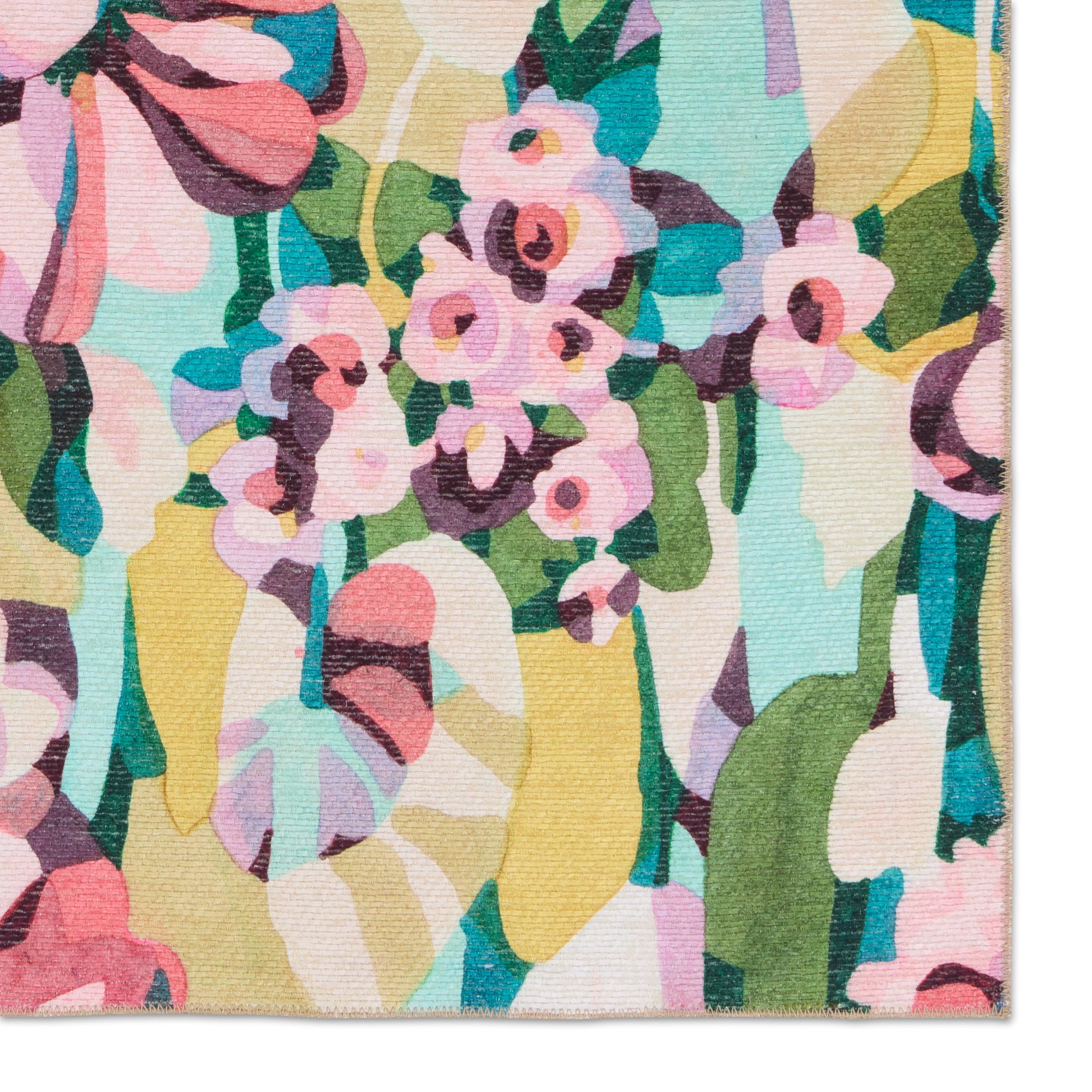 Ibis IBS02 Amicia from the vibrant Ibis collection, adding a pop of color and pattern to your indoor or outdoor space. Crafted from durable polyester, this rug is designed to withstand the test of time. The Amicia rug showcases a lively abstract floral motif in striking shades of pink, purple, green, yellow, cream, blush, and blue.