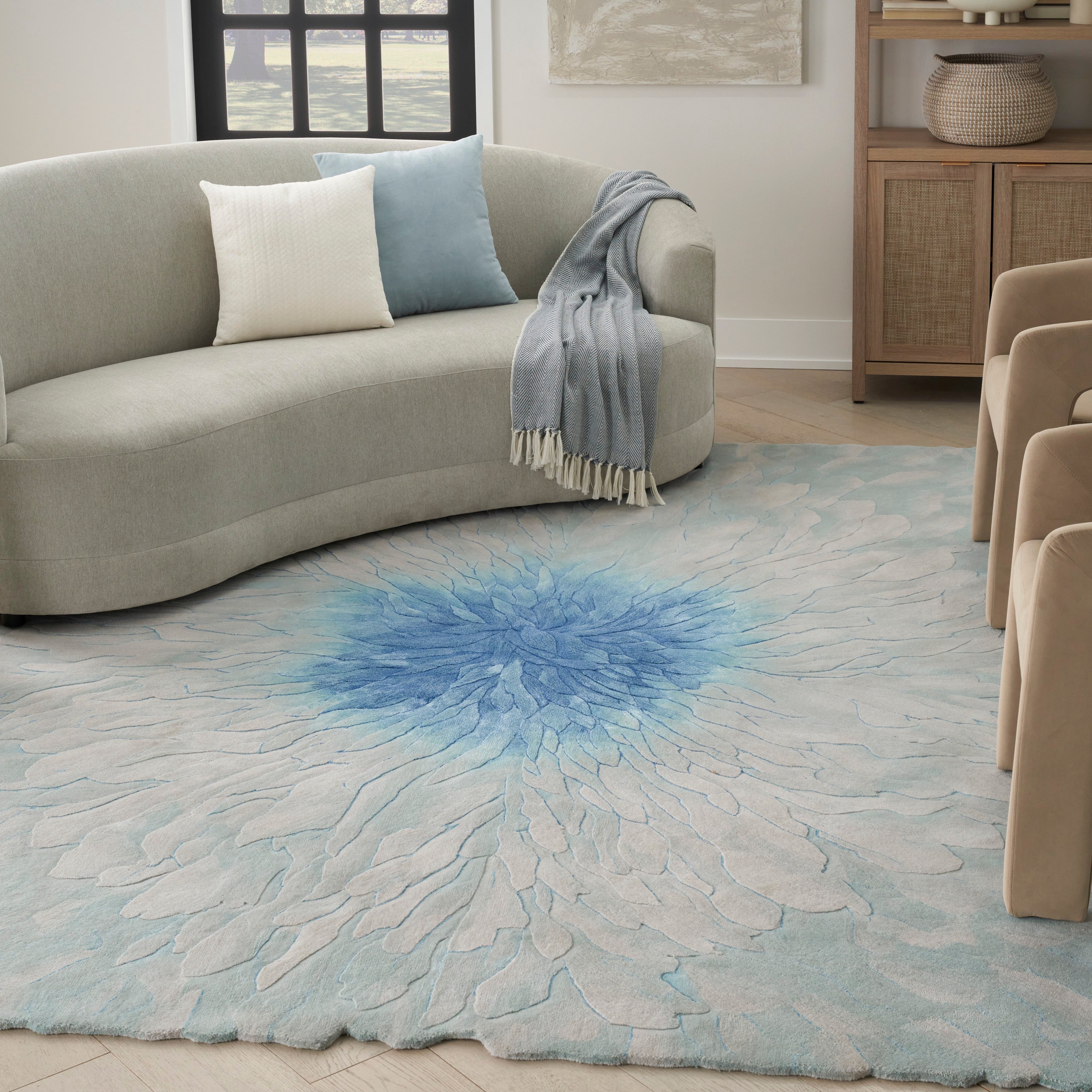 Elevate your living space with the enchanting Prismatic PRS39 Blue rug. From our exclusive Prismatic Collection, this abstract rug features a captivating floral-inspired design in a striking saturated blue hue that gracefully transitions into delicate highlights. Expertly hand-carved with intricate details and scalloped edges, this textured rug exudes depth and elegance. Crafted from a luxurious blend of premium wool and Luxcelle™, it promises both comfort and durability for years to come.