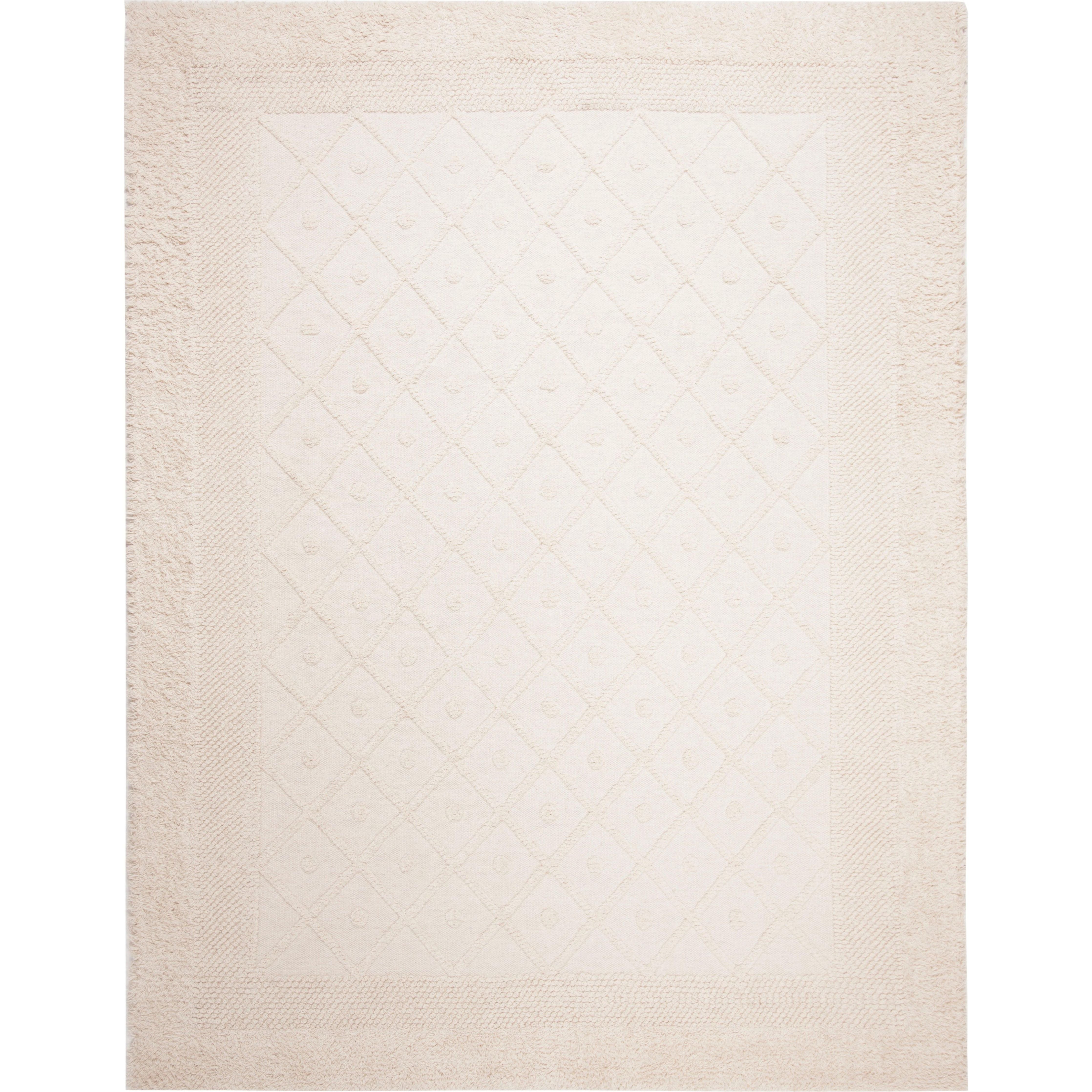 Kenya KNY952A Ivory Rug, a stunning addition to your home decor that effortlessly blends tribal artistry with contemporary style. Handmade from pure wool, these rugs feature captivating designs, luxurious textures, and modern colors that will instantly elevate any room. The Kenya Collection boasts unique tribal patterns created through over-stitched cut pile yarns, adding depth and character to each piece with an approximate thickness of 1.5 inches.