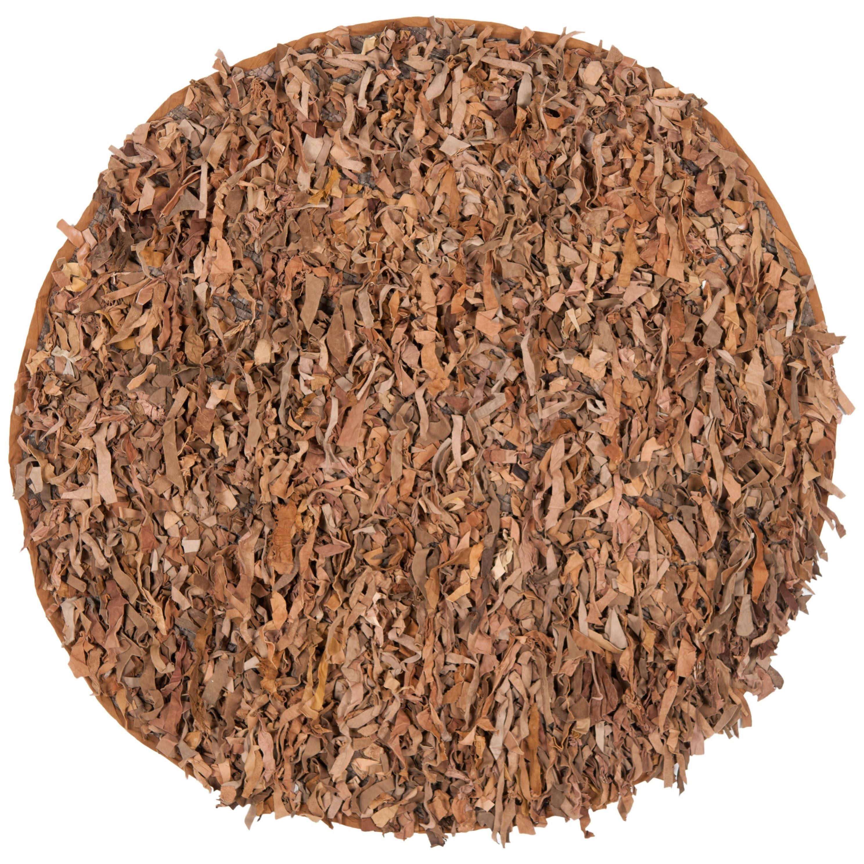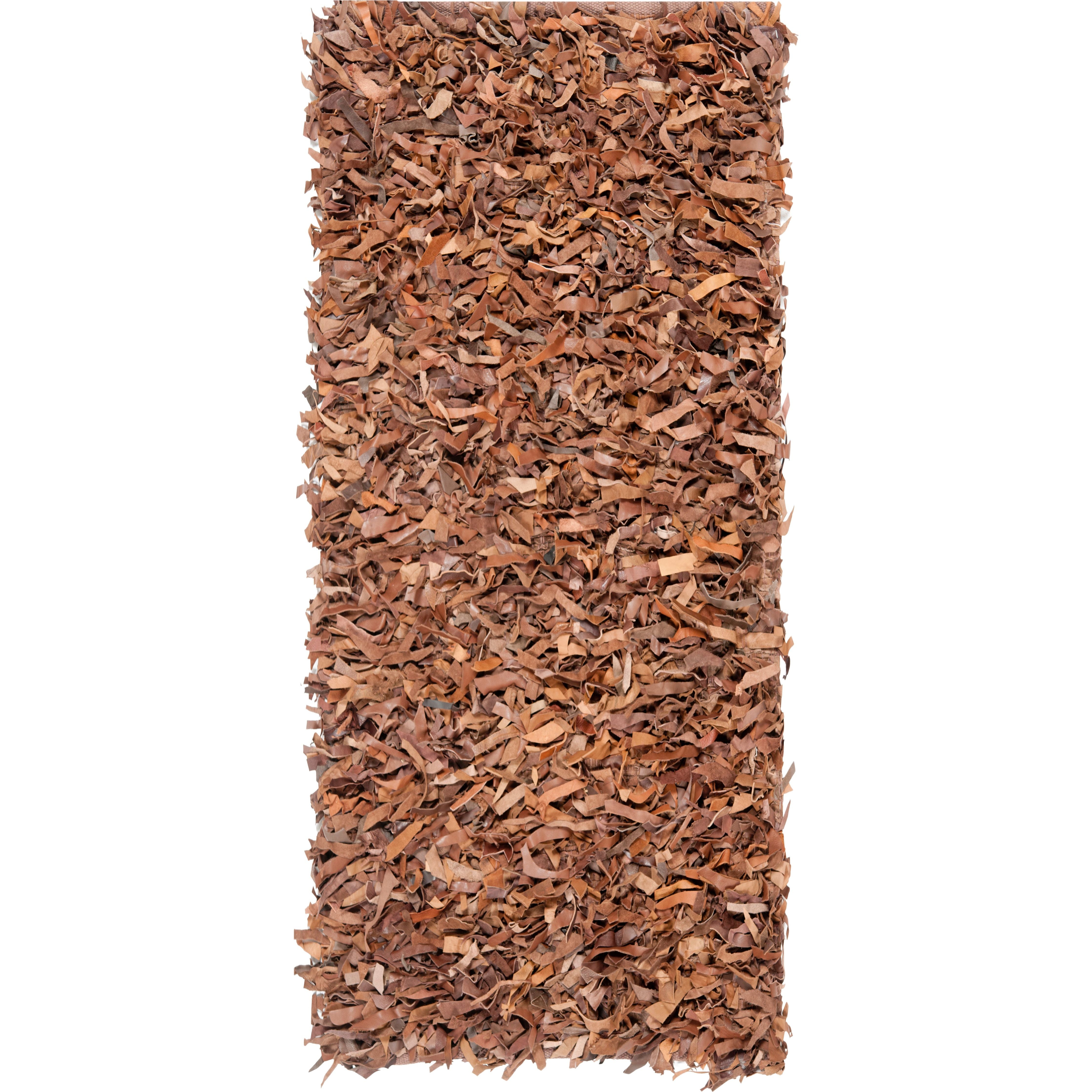 Leather Shag LSG511K, a luxurious addition to your living space. Crafted from genuine leather, these rugs feature soft strips of high-quality natural hides hand-knotted to a special cotton weave. The unique technique used in making these rugs showcases the soft suede underside of the leather, creating a stunning tonal effect that complements both contemporary and rustic home decor styles.