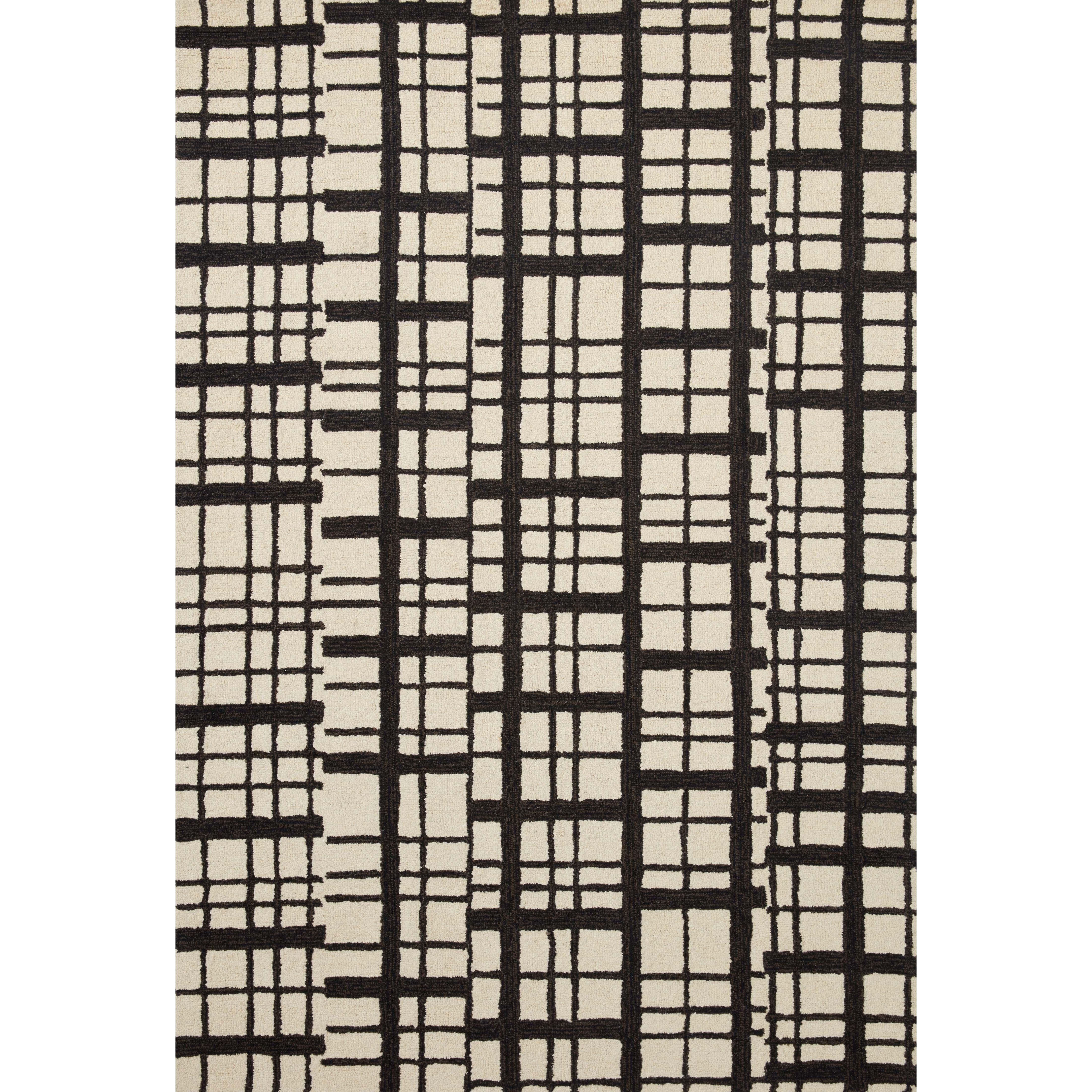 chic Polly Pol 02 Black Ivory rug from the exclusive Polly collection by Chris Loves Julia x Loloi. Crafted with a blend of wool and jute pile, this hand-tufted rug offers a modern twist on timeless designs. The striking gridded pattern is elegantly complemented by a neutral color palette, making Polly a versatile addition to any room.