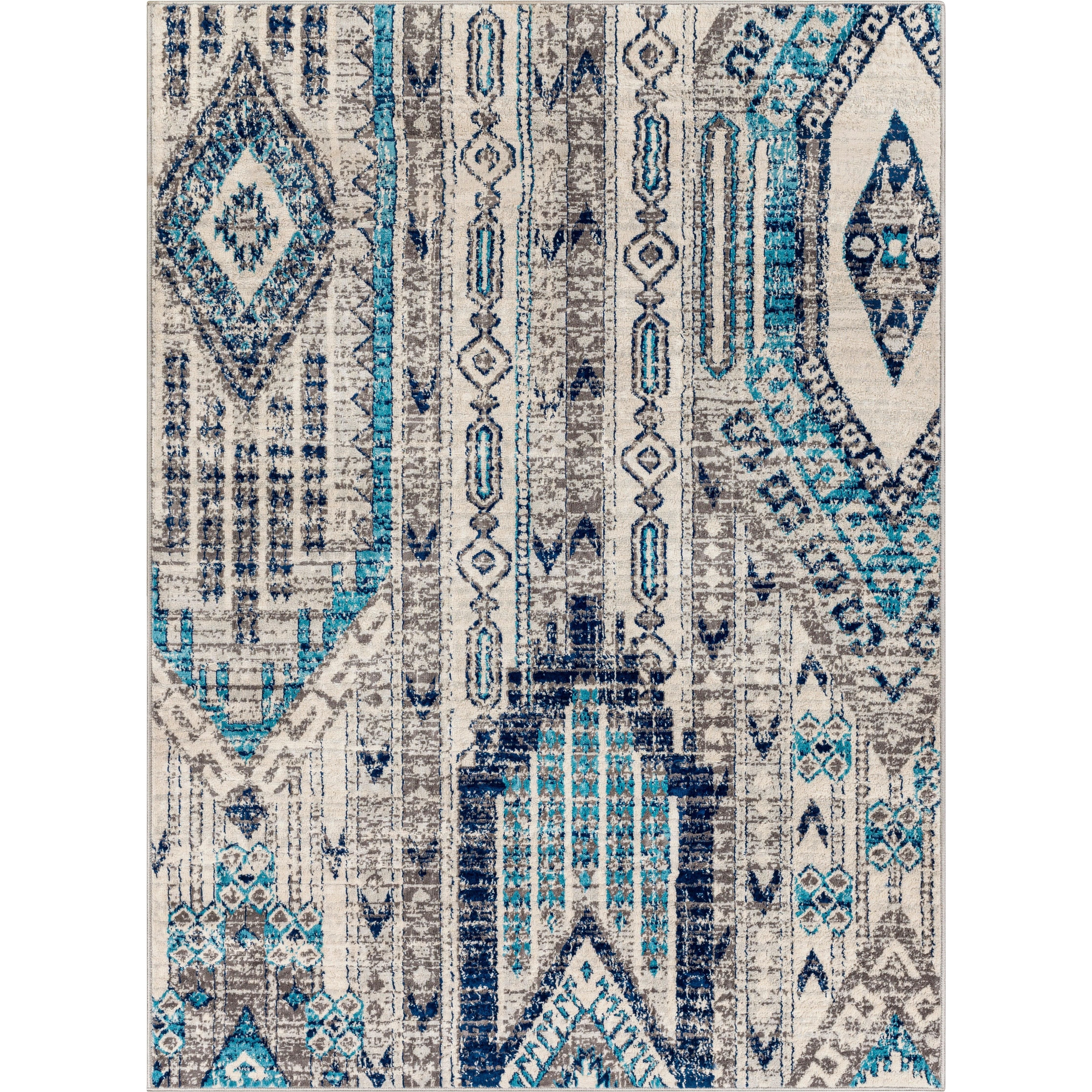 Detailed Colors: Dark Blue, Sky Blue, Charcoal, Light Gray, Cream