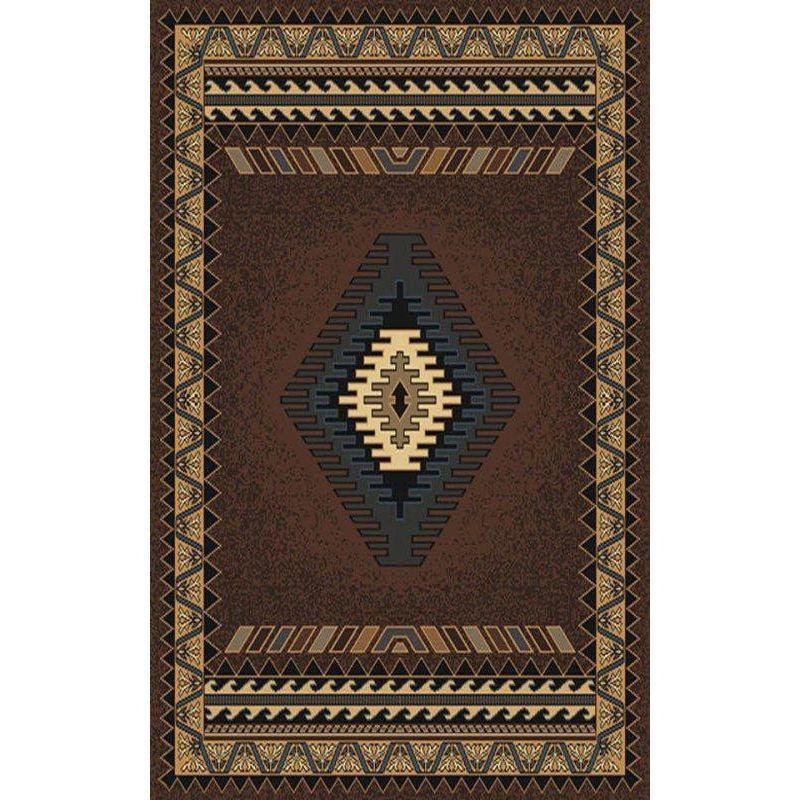 exquisite Manhattan Tucson Brown rug, a stunning addition to any space. Its chic and stylish border instantly catches the eye, making it a standout piece in your home decor. This Indian medallion rug is accentuated by a unique stippled background, creating a sharp and contemporary Southwestern design that is sure to impress.