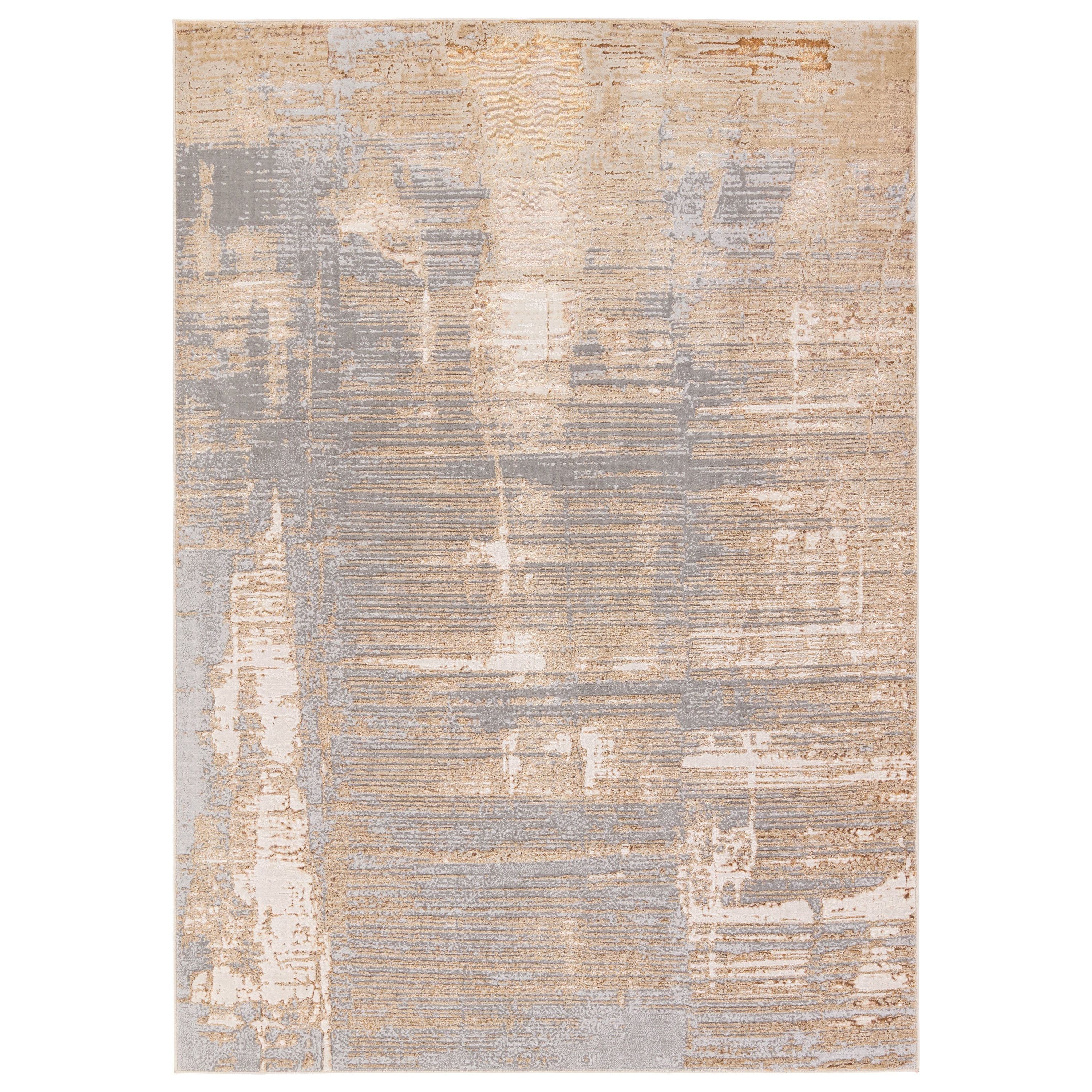 Elevate your living space with the Catalyst CTY35 Flight rug. This eye-catching piece boasts a unique and modern design that adds a touch of sophistication to any room. The shimmering rug features a captivating abstract pattern in shades of gray, brown, bronze, cream, and beige.