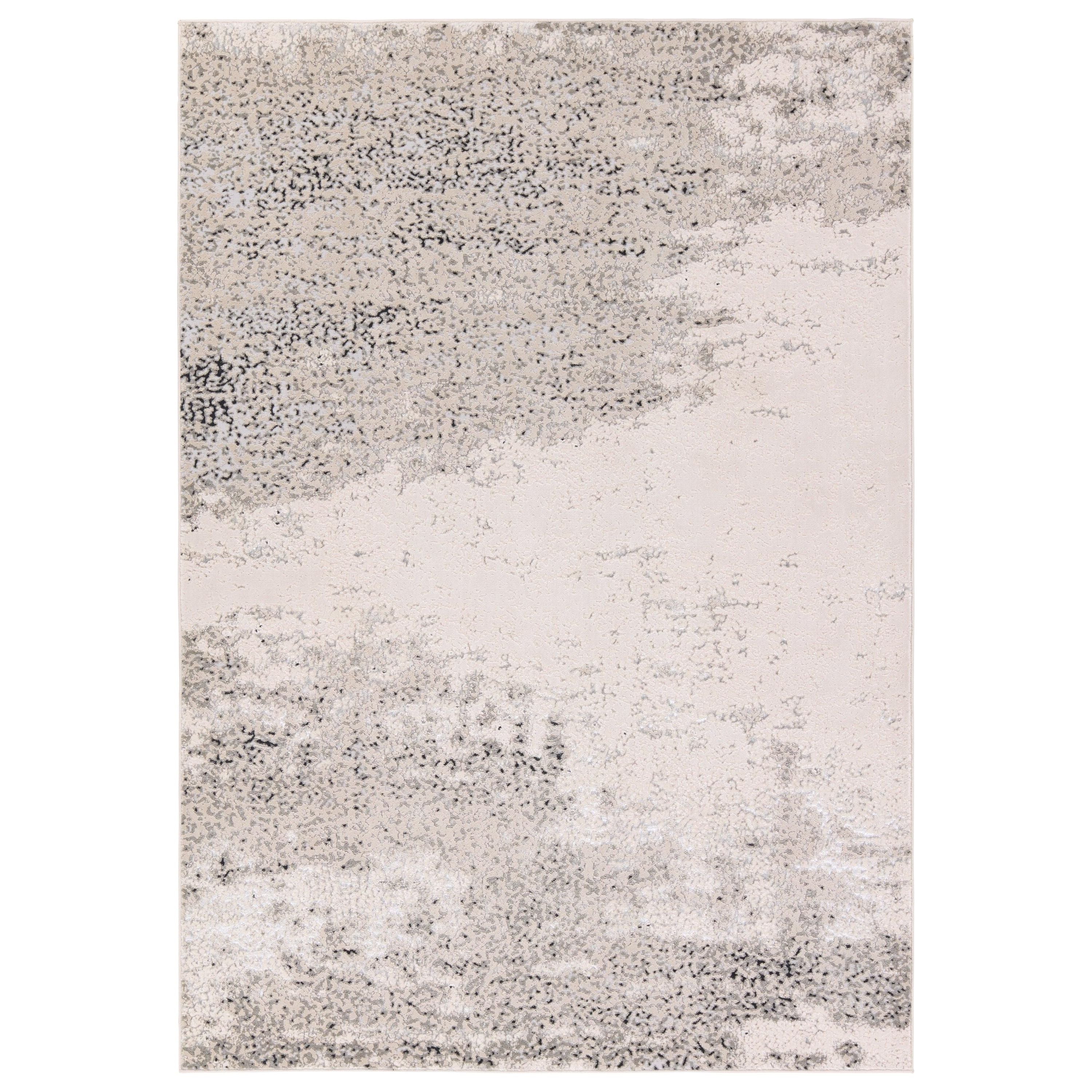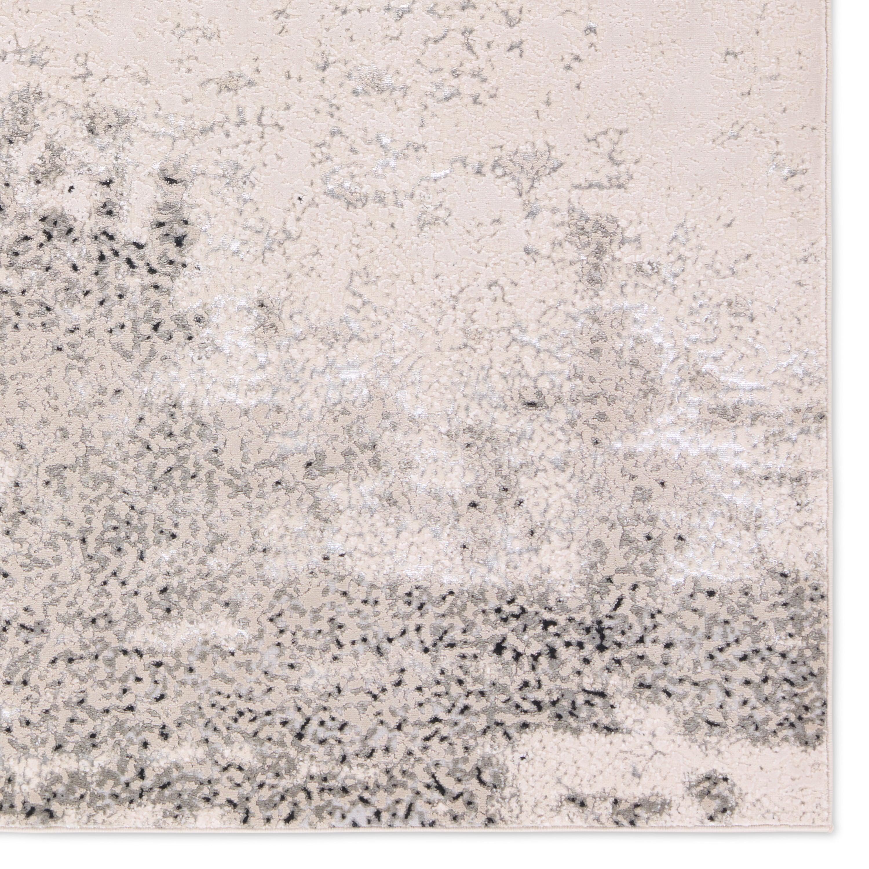 Catalyst CTY36 Faizah rug, a bold and eye-catching addition to your space. This shimmering rug boasts an abstract design with a modern color palette of cream, gray, blue, silver, and beige. The edgy look is perfect for making a statement in any room.