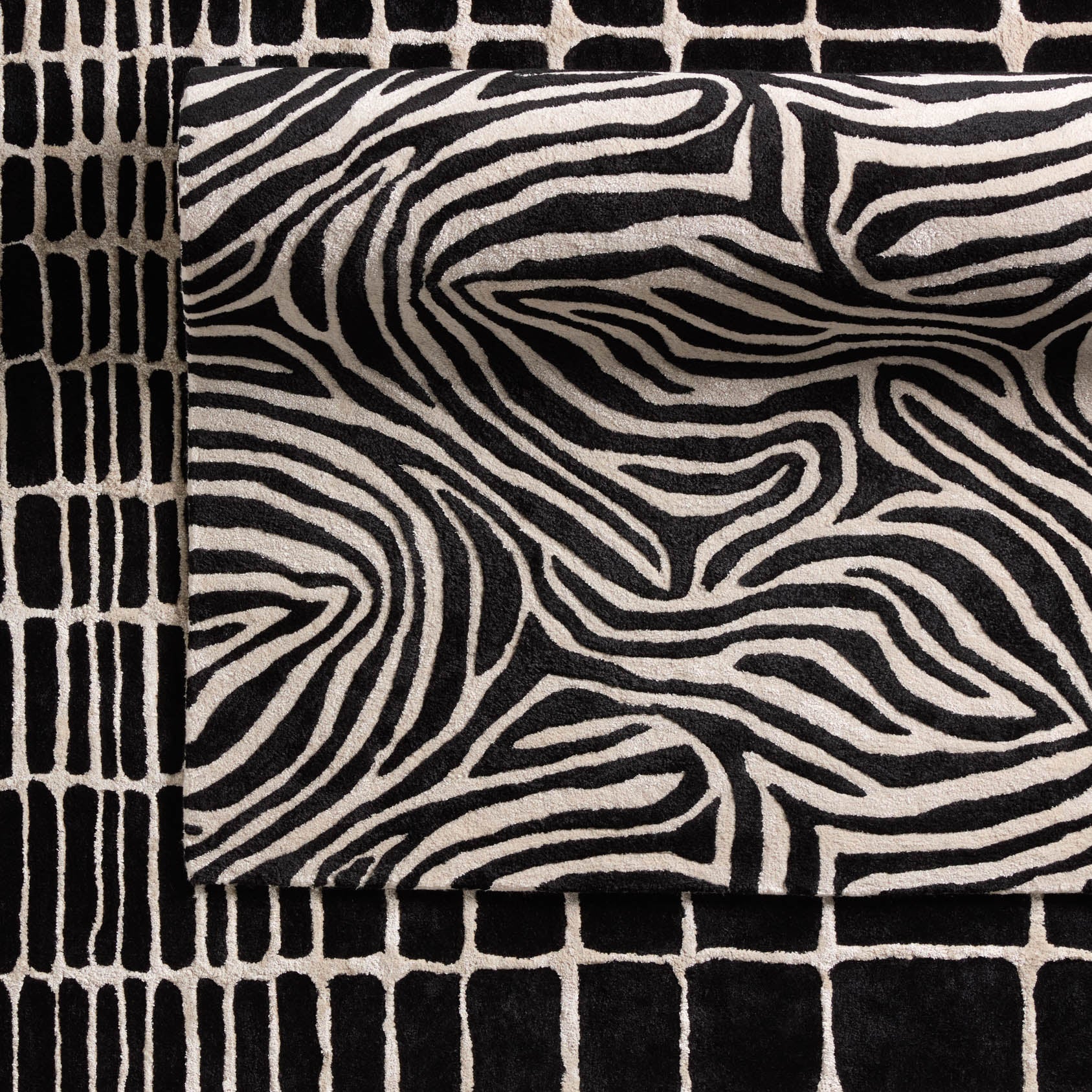 Clayton CLN18 Collide area rug, a stunning piece crafted with an impressionistic design. Hand-tufted to perfection, this rug features an organic-inspired abstract pattern with a touch of animal motifs. The contrasting black and cream color palette adds a touch of elegance while making a bold statement in modern interiors.