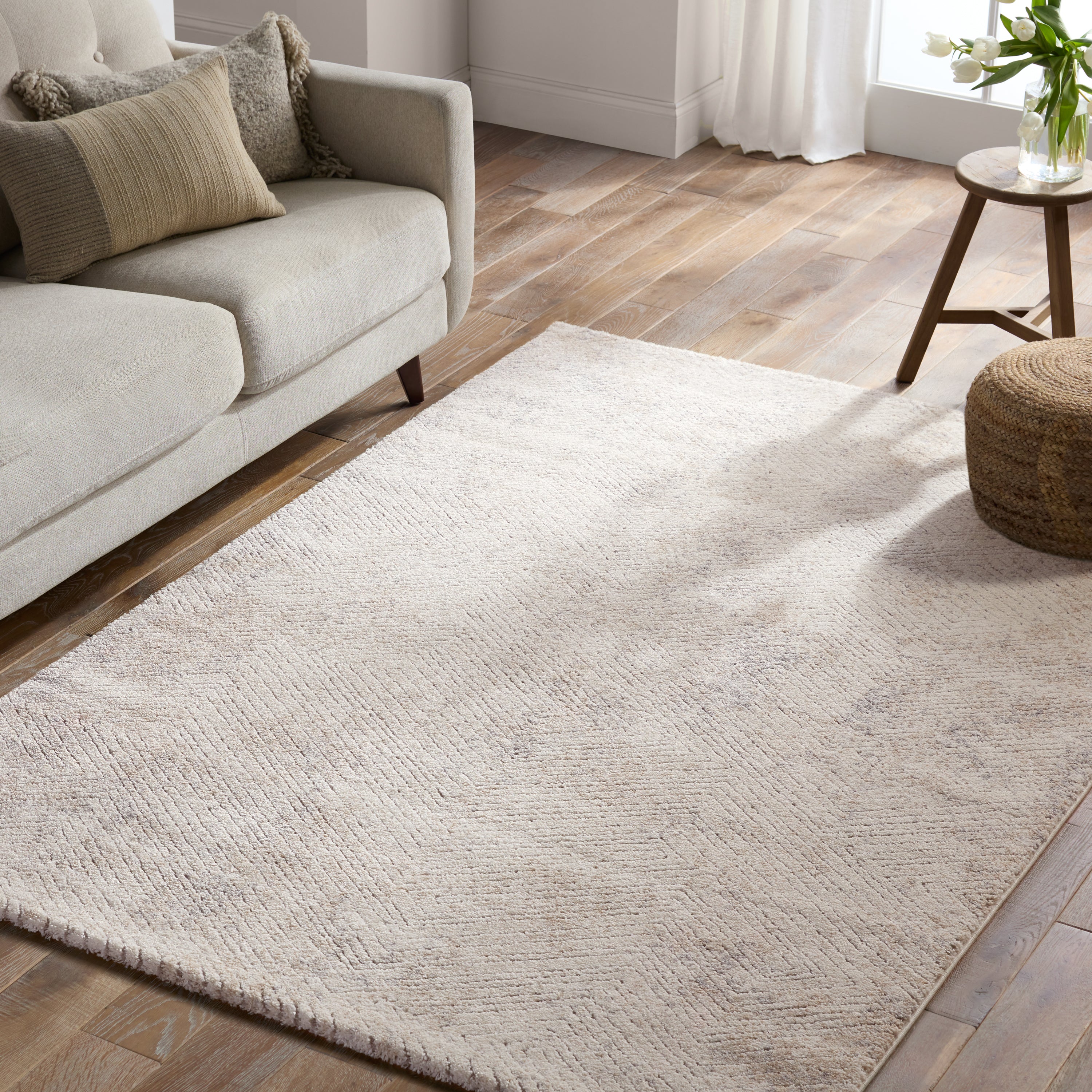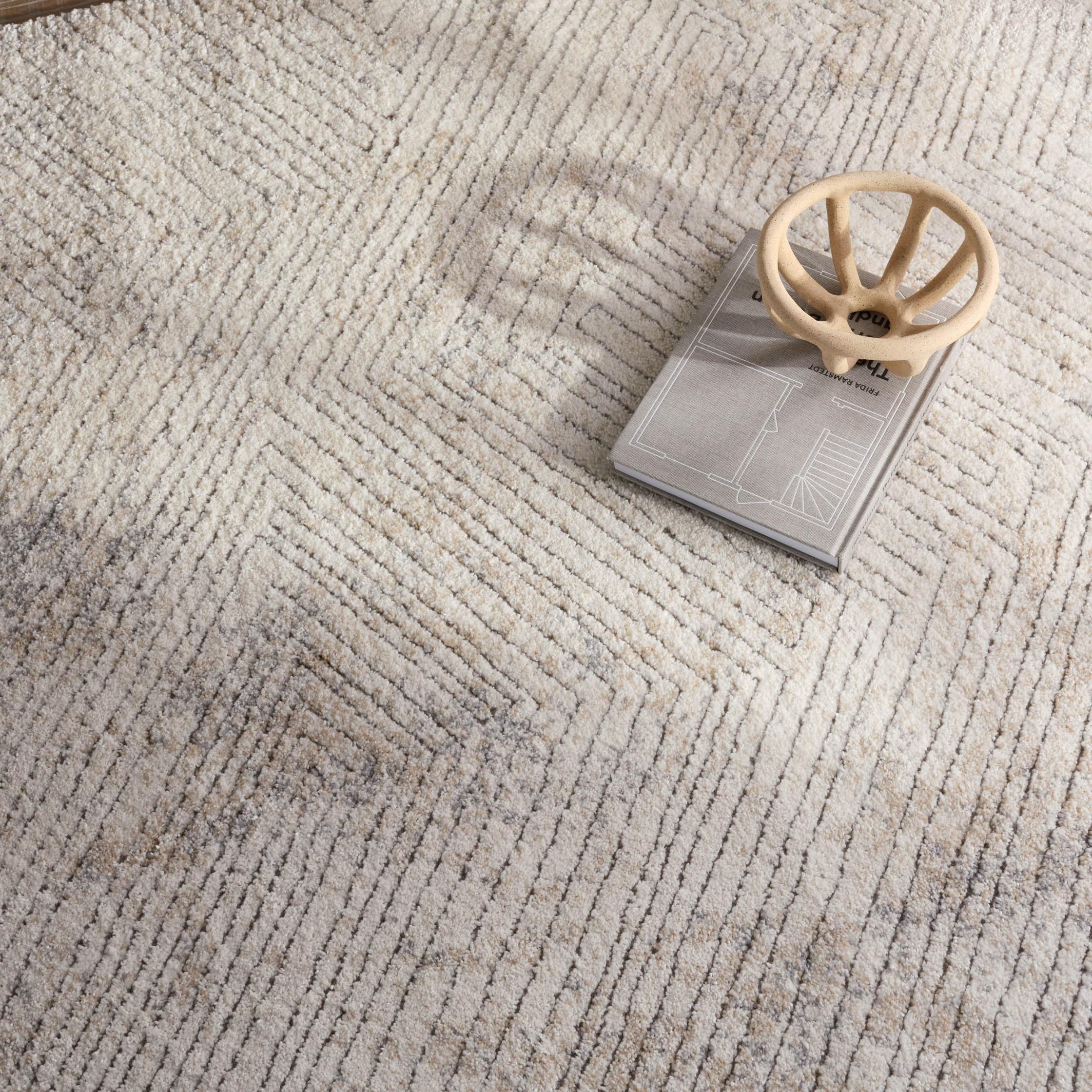 Ferris FRR13 Natrix area rug - a chic addition to your space. Its industrial style and soft color palette make it a standout piece in any room. The modern and abstract design features a rich texture created by the high-low carved pile, adding depth and dimension to your decor.