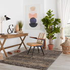Sanaa By Nikki Chu SBC10 Tamari rug, a stunning addition to Nikki Chu's African-inspired collection. This rug effortlessly combines bold tribal patterns with versatile neutral tones, making it a standout piece for any room. The intricate design features deep black, tan, beige, and gray shades, accented with pops of bright pink and blush for a touch of vibrancy. Adding to its charm is the ivory fringe trim that offers both texture and a hint of vintage elegance.