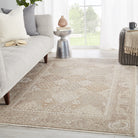 Vienne VNE10 Lourdes from the elegant Vienne collection. This stunning rug features a chic blanc de blanc design, perfect for creating a vintage and sophisticated atmosphere in your space. The Lourdes rug showcases a beautiful mosaic motif in warm cream, taupe, and ivory tones with delicate metallic gold accents.