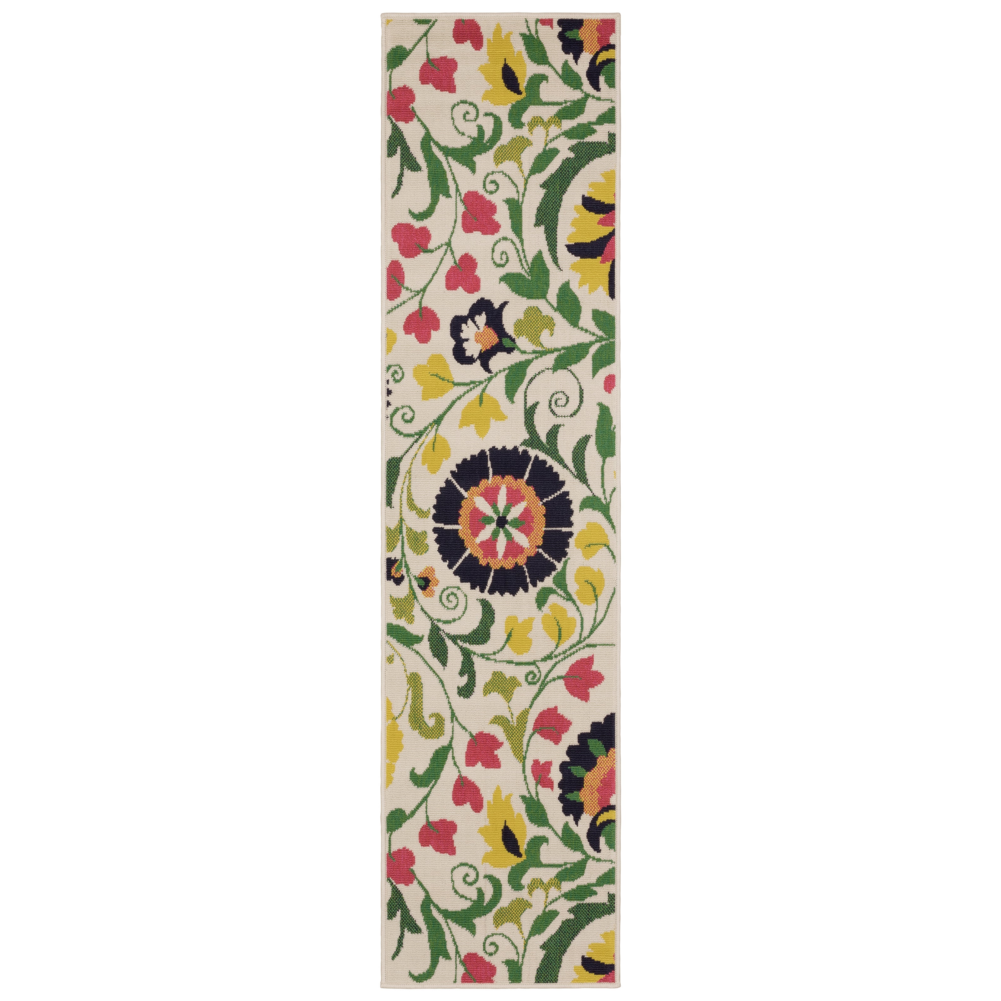 a little preppy and a lot of fun! Featuring iconic motifs in vibrant shades of sunflower yellow and flamingo pink alongside a classic navy and green duo, this collection is sure to bring feelings of sweet summer year-round. Power-loomed of 100% polypropylene, these easy-care rugs are perfect for use inside or outside the home.