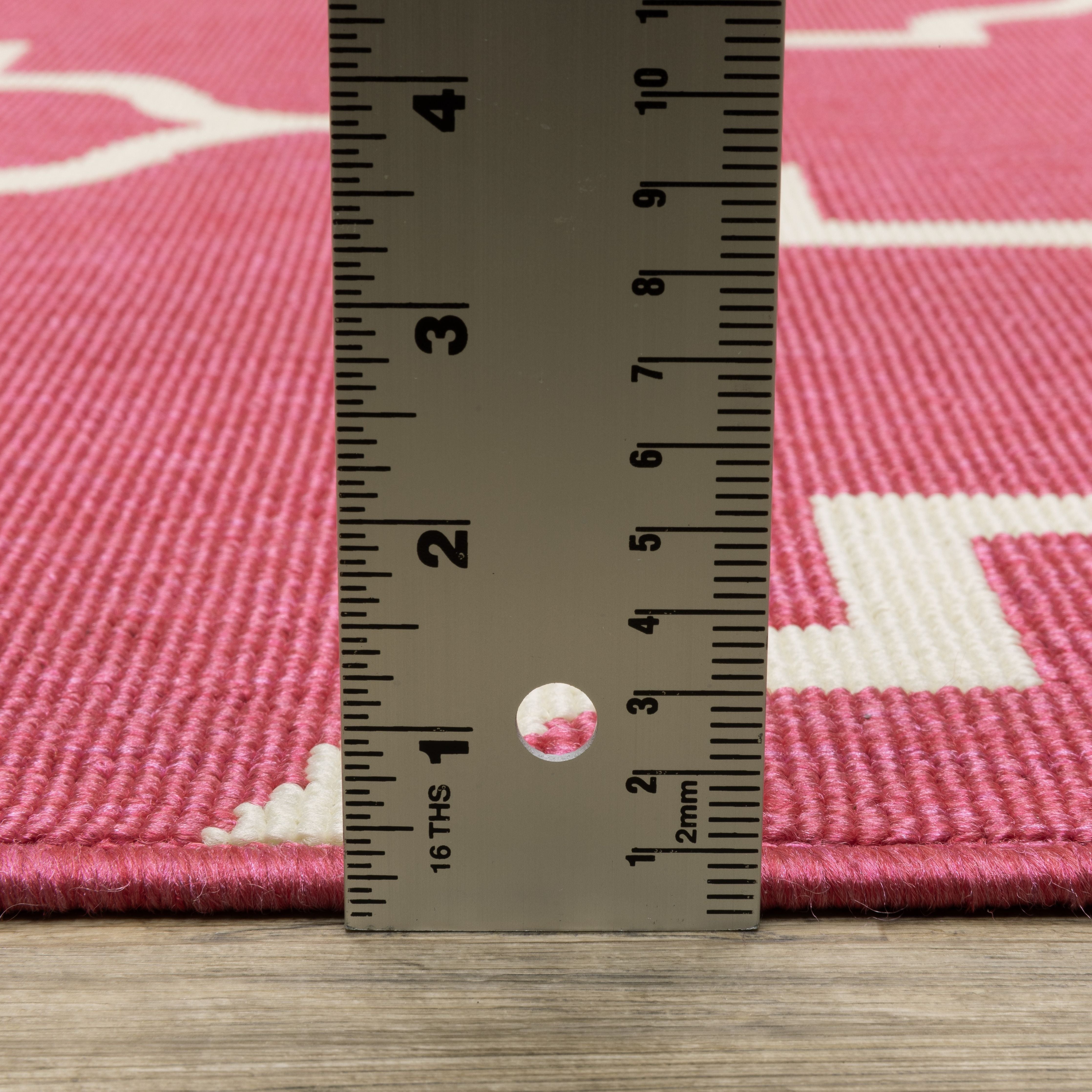 a little preppy and a lot of fun! Featuring iconic motifs in vibrant shades of sunflower yellow and flamingo pink alongside a classic navy and green duo, this collection is sure to bring feelings of sweet summer year-round. Power-loomed of 100% polypropylene, these easy-care rugs are perfect for use inside or outside the home.