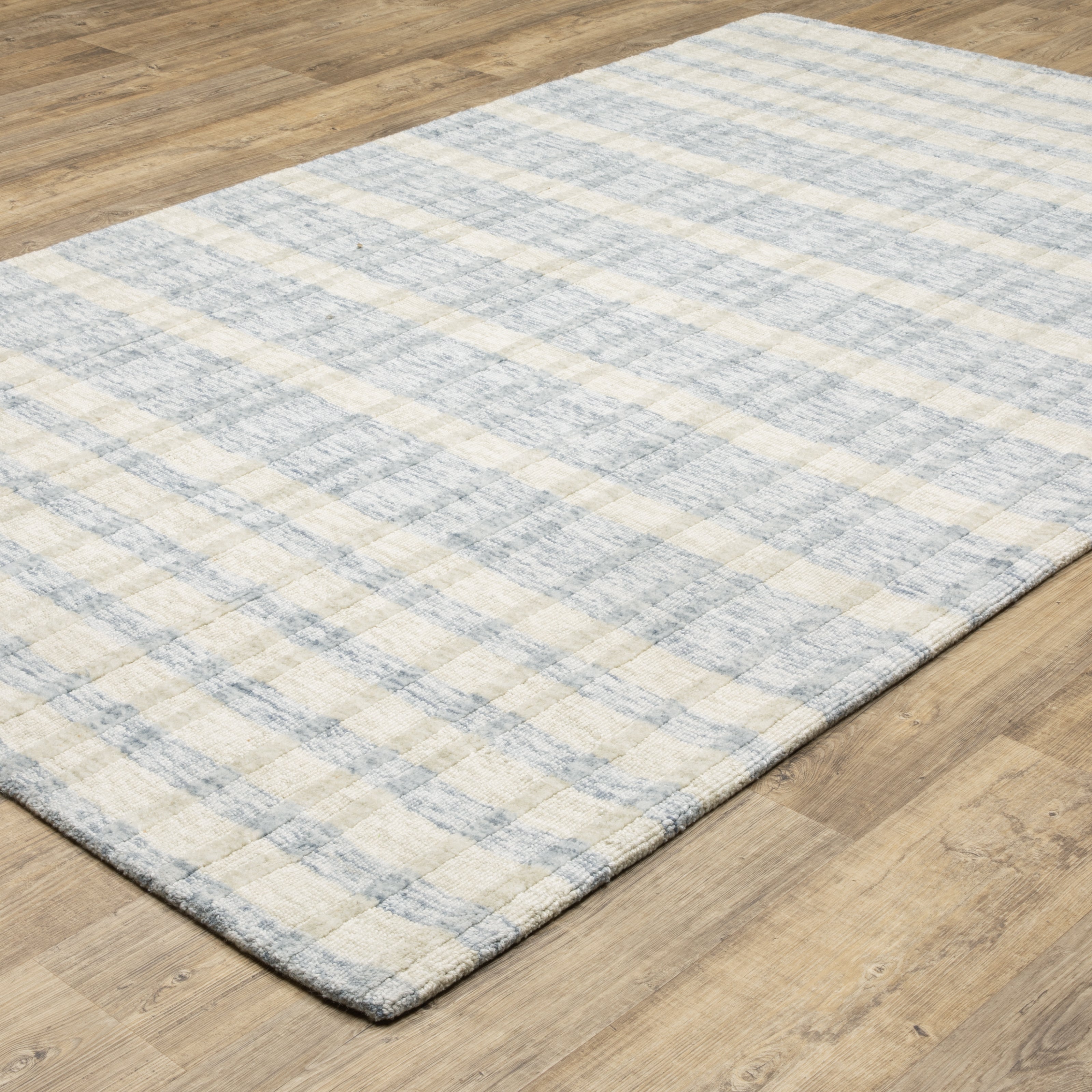 The Thatcher Collection showcases modern geometric designs brought to life through a hand-loomed cut and loop pile construction, for added surface interest and tactile appeal. Crafted from space-dyed PET yarn - a sustainable material made from recycled plastic bottles Thatcher has the look of wool but much less likely to shed and easier to clean. Nature-inspired colorations, from warm sand and soft clay to brushed sage and watery blue, lend a grounded, organic look to any space.