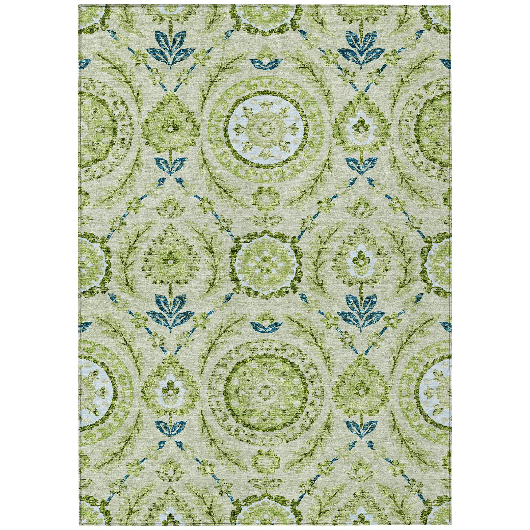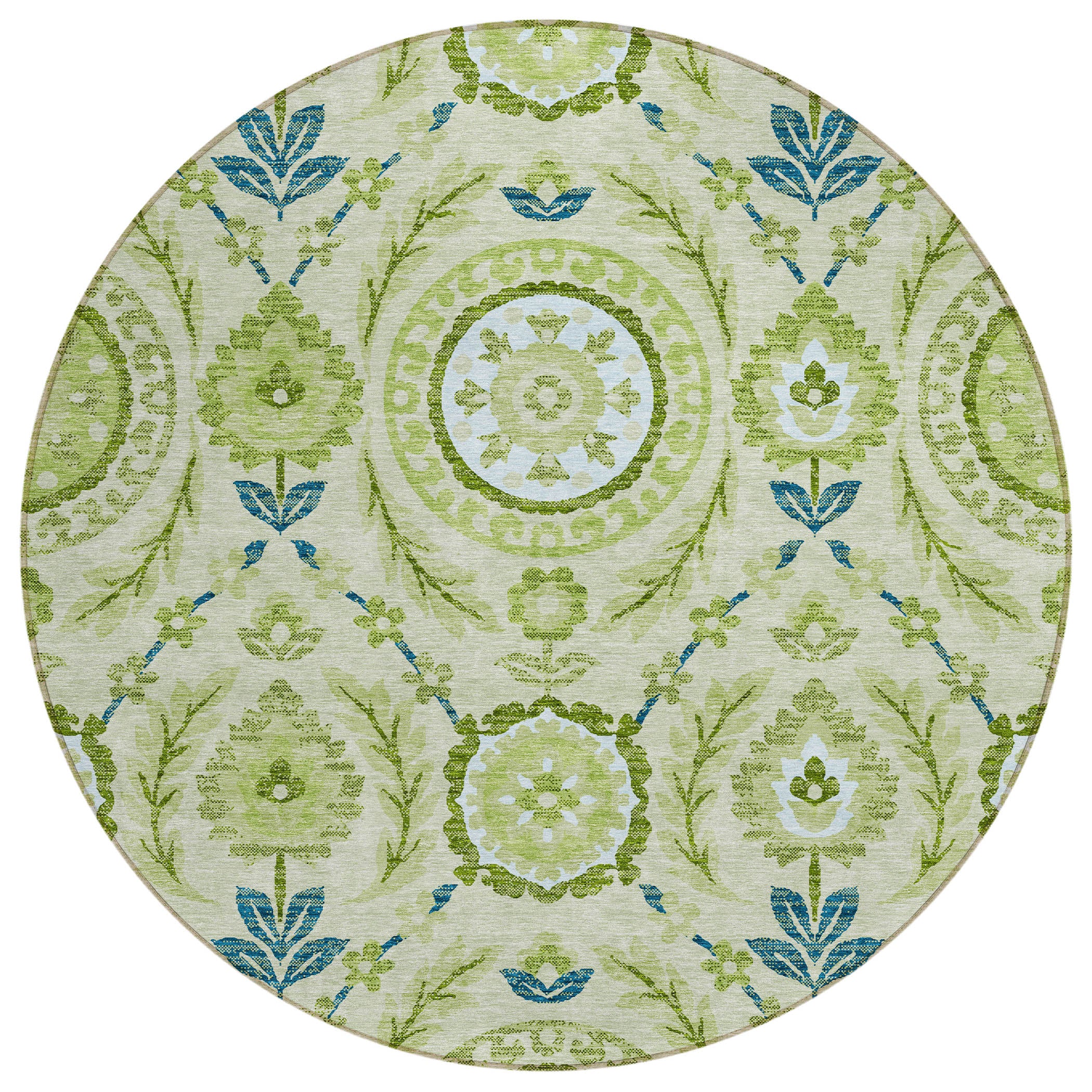 Chantille ACN751 Aloe rug, a masterpiece of transitional design that will elevate the look of any modern space. The rug showcases exquisite centered medallions surrounded by intricate vines, florals, and leaves, creating a captivating floral pattern that exudes luxury and warmth.