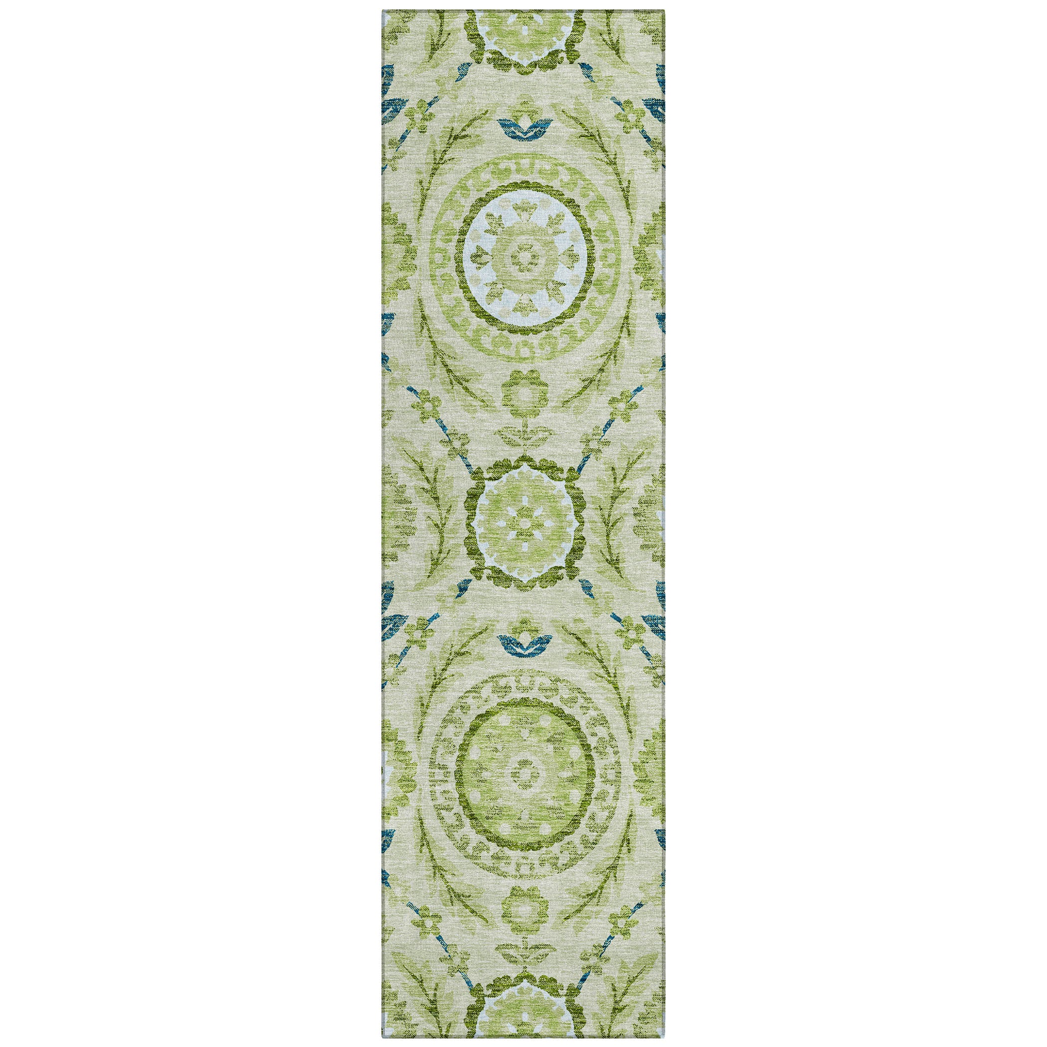 "First off, I love this rug .. the colours and the texture of the rug turned out to be exactly what I was hoping for - a very neutral-looking moss green and ivory background with a few tiny pale blue accents. Love the look!"