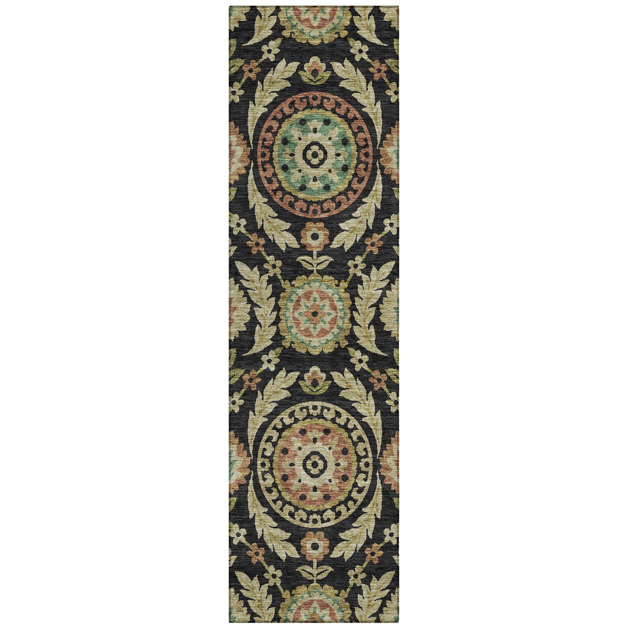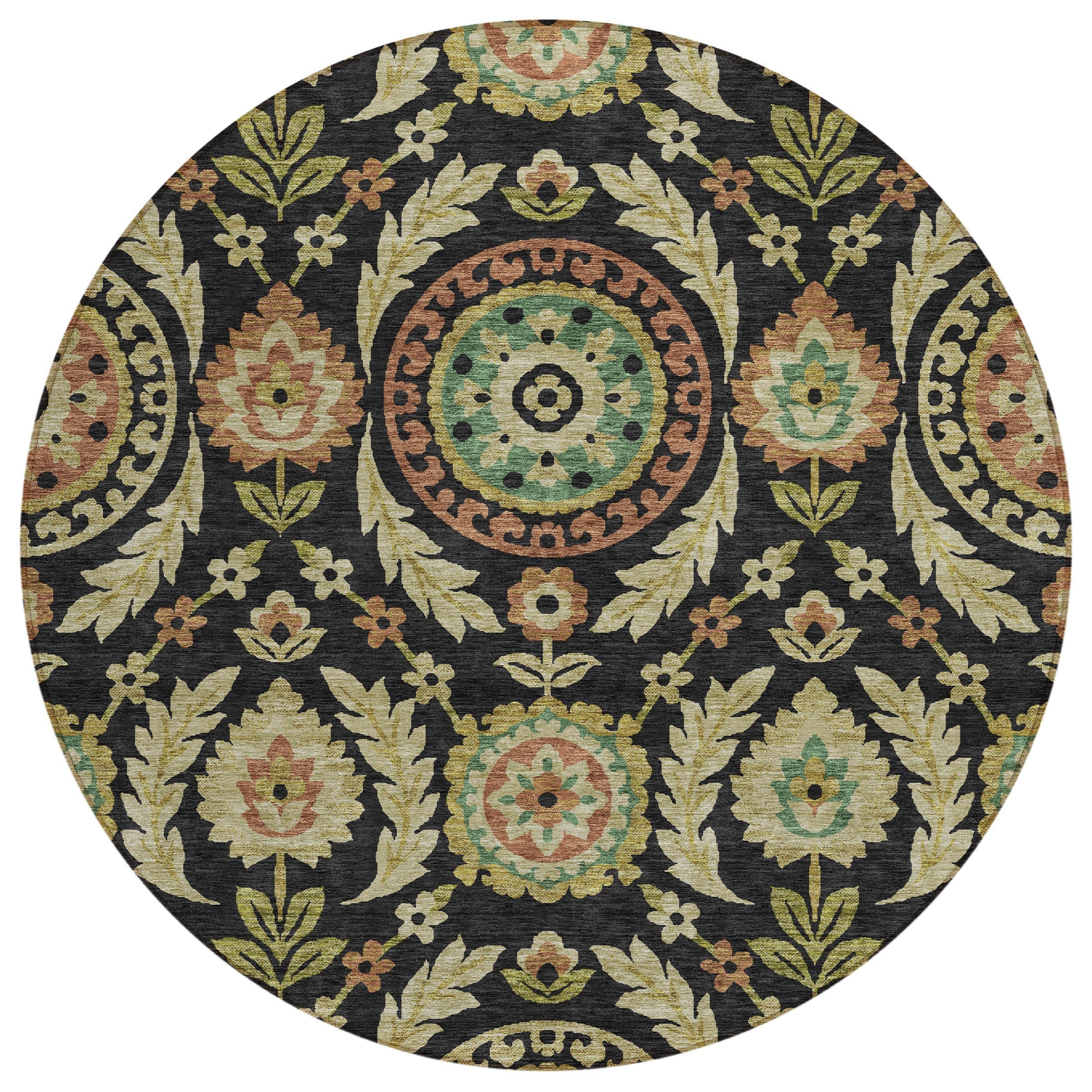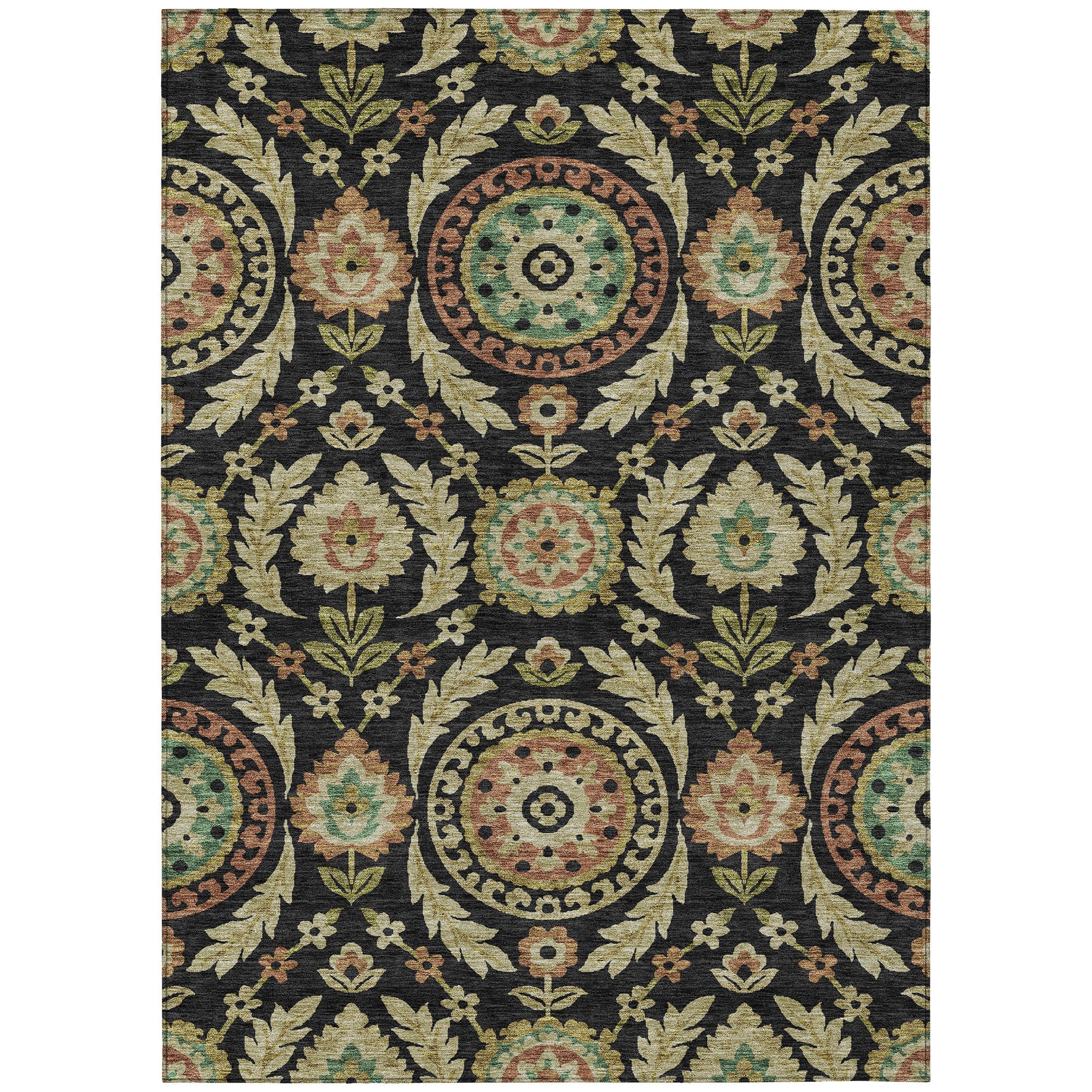 Introducing our Chantille ACN751 Black rug, a beautiful addition to any contemporary setting. The centerpiece of this rug is a captivating display of medallions surrounded by lush vines, florals, and leaves that embody transitional design. Its floral pattern exudes luxury and warmth, making it perfect for elevating the look of your space.
