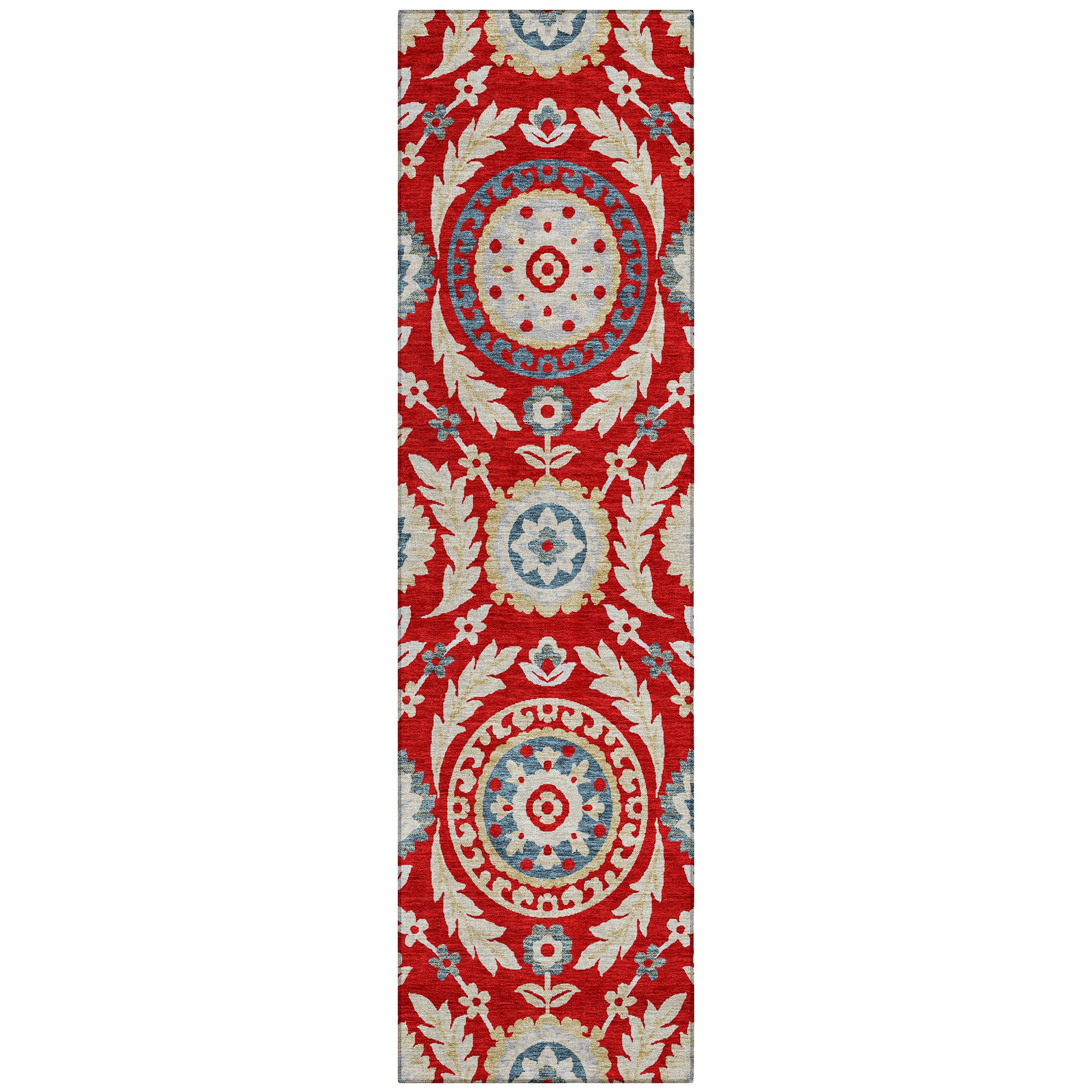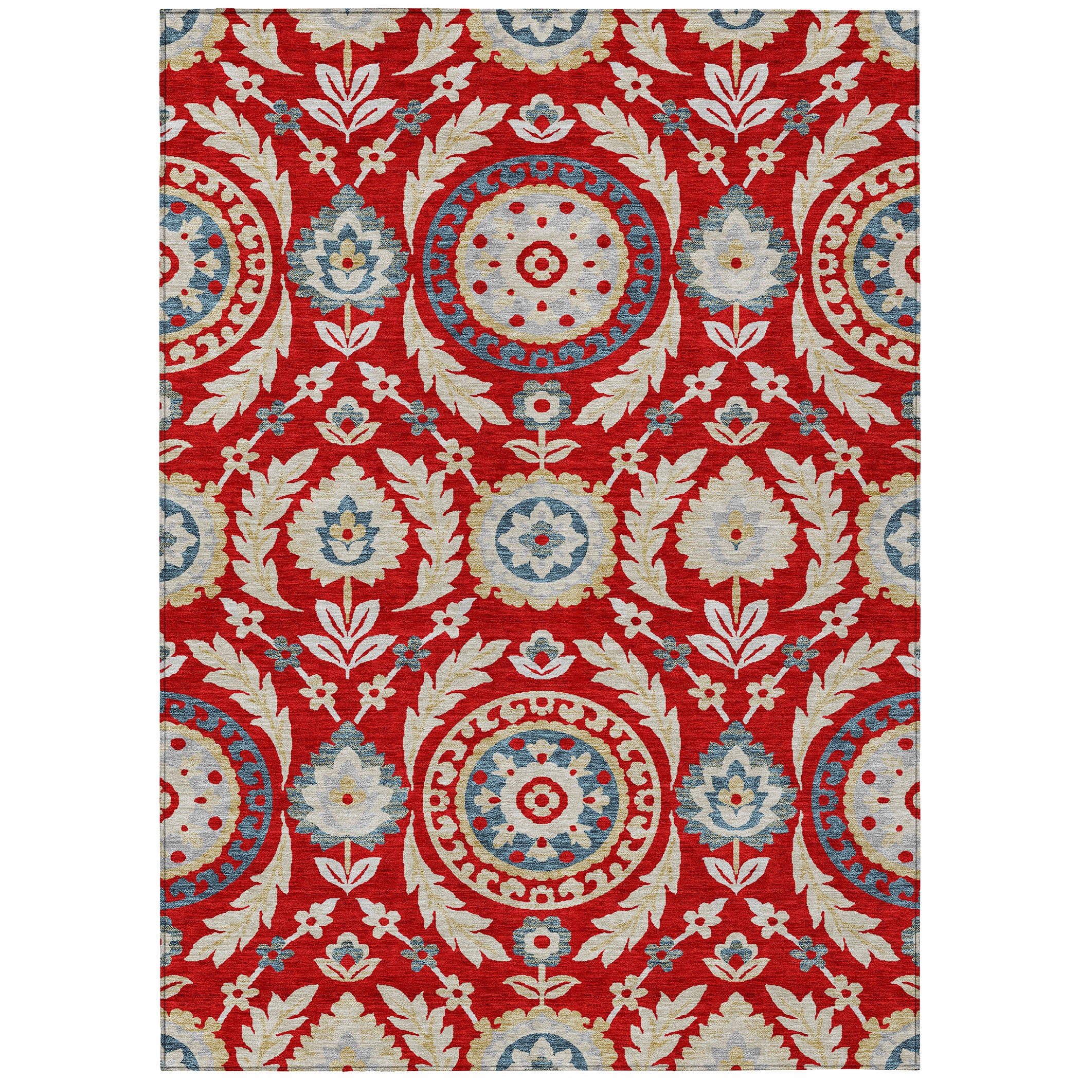 Chantille ACN751 Red rug, a beautiful addition to any contemporary space. The rug showcases a captivating floral pattern with intricate medallions, vines, florals, and leaves that bring a touch of elegance to your room.