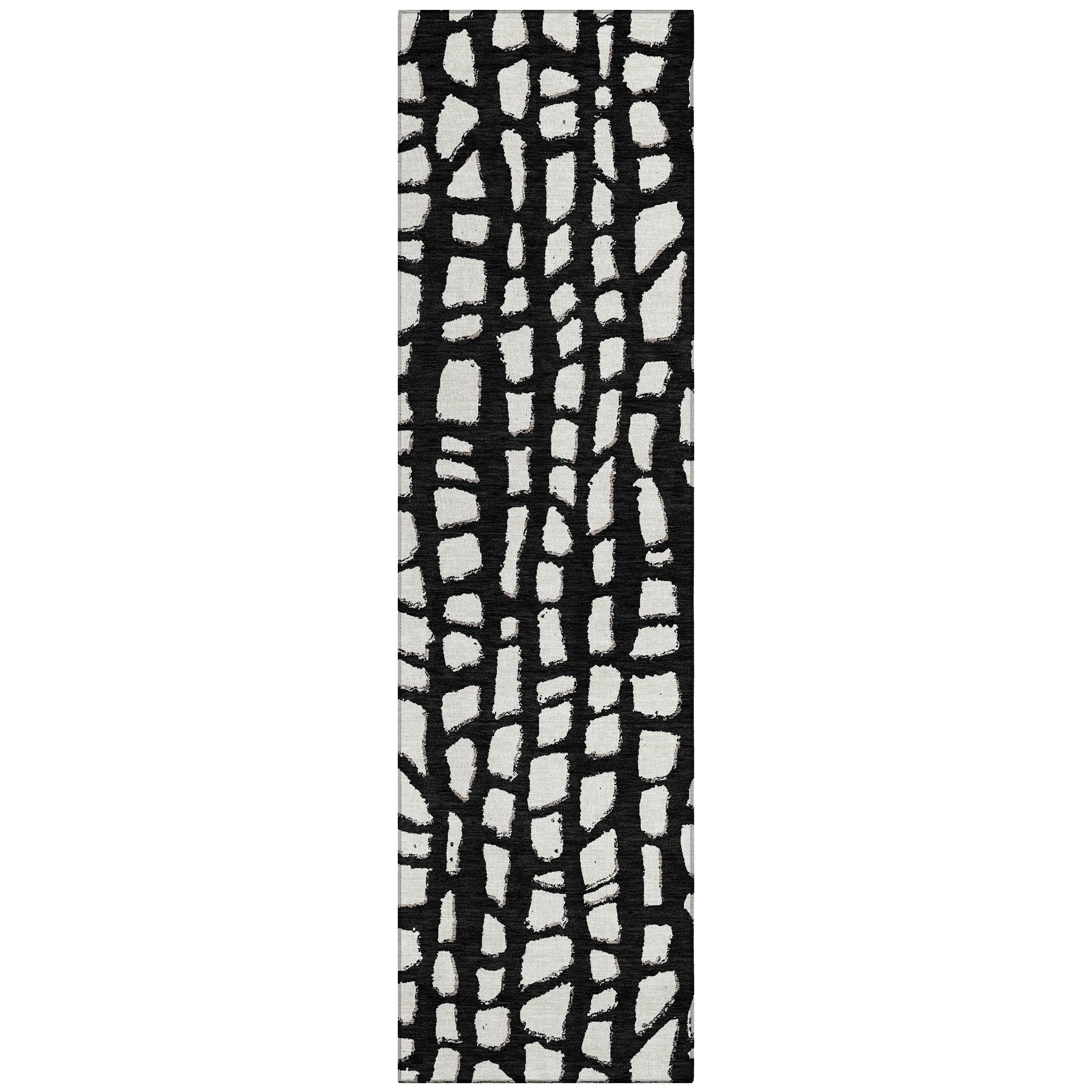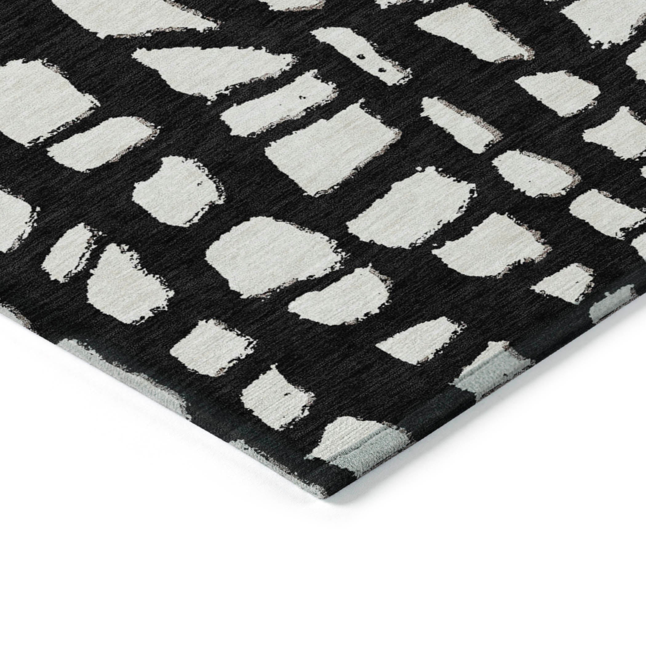 Chantille ACN754 Black rug, a contemporary masterpiece that will elevate the look of any room. The design showcases free-formed squares meticulously arranged to form a captivating symmetrical pattern. This transitional piece exudes modern elegance with a hint of geometric charm, making it a standout decor element.