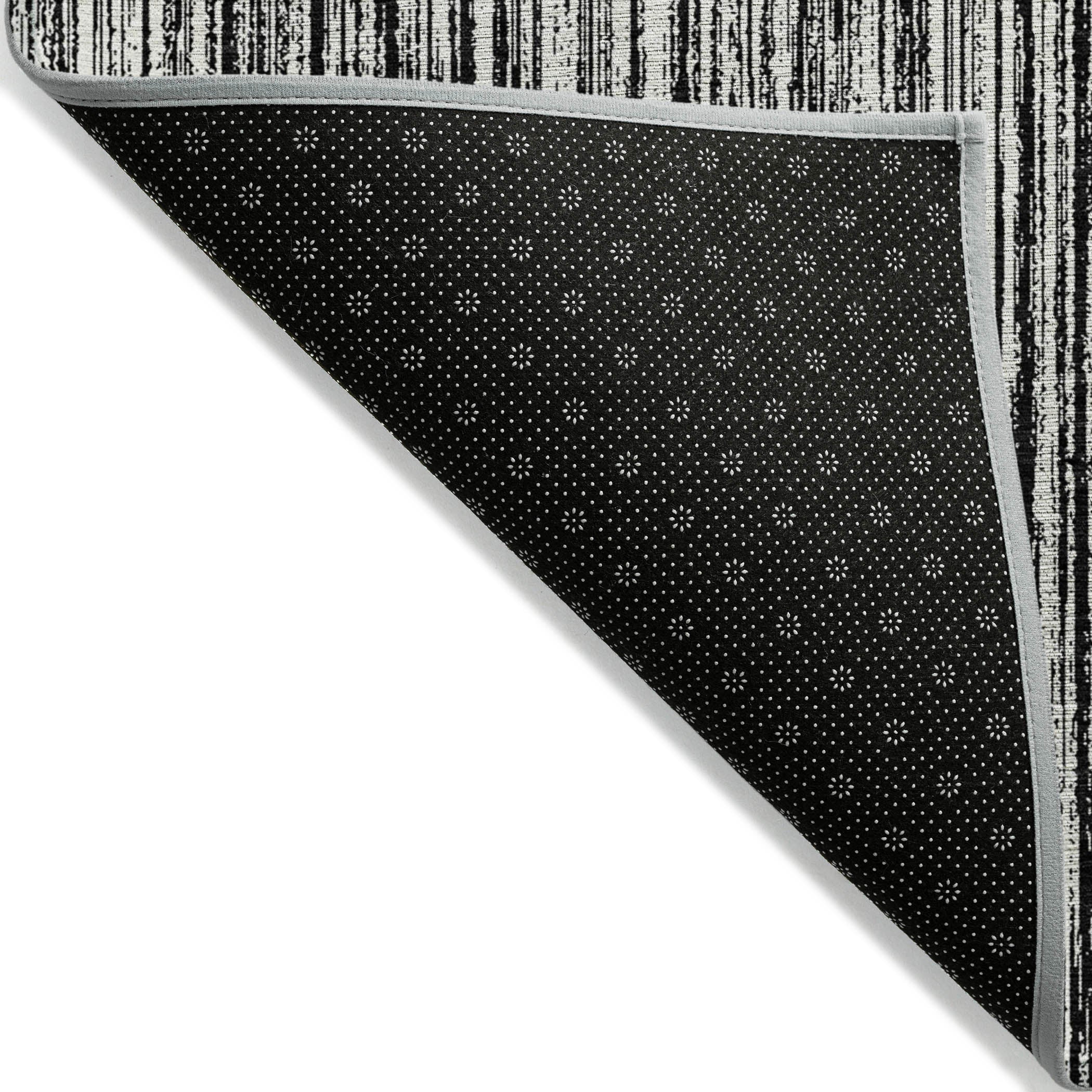 Chantille ACN760 Black rug, a perfect blend of modern style and classic design. The vertical thin stripes give it a hand-drawn look that adds a touch of artistry to any room. Its UV stabilization ensures long-lasting durability, while its ultra-thin construction offers a sleek contemporary appeal. Cleaning is a breeze as this rug is machine-washable, making it ideal for busy households with pets and children.