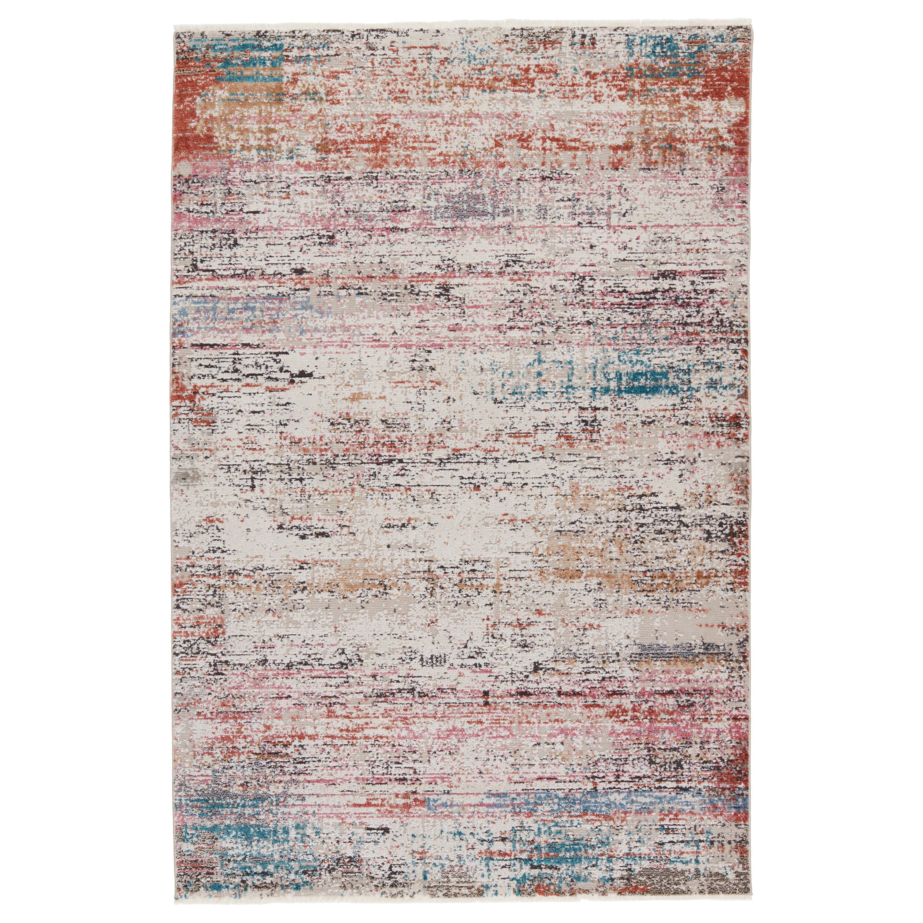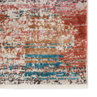 Myriad MYD20 Starla rug, a captivating piece inspired by the timeless beauty of sun-soaked Turkish motifs. The Myriad collection exudes a cozy charm with its faded yet rich color palette that adds a touch of nostalgia to any space. The Starla rug showcases a stunning mottled abstract design in shades of ivory, rust, teal, pink, and gold, complemented by an elegant ivory fringe trim for added texture and vintage appeal.