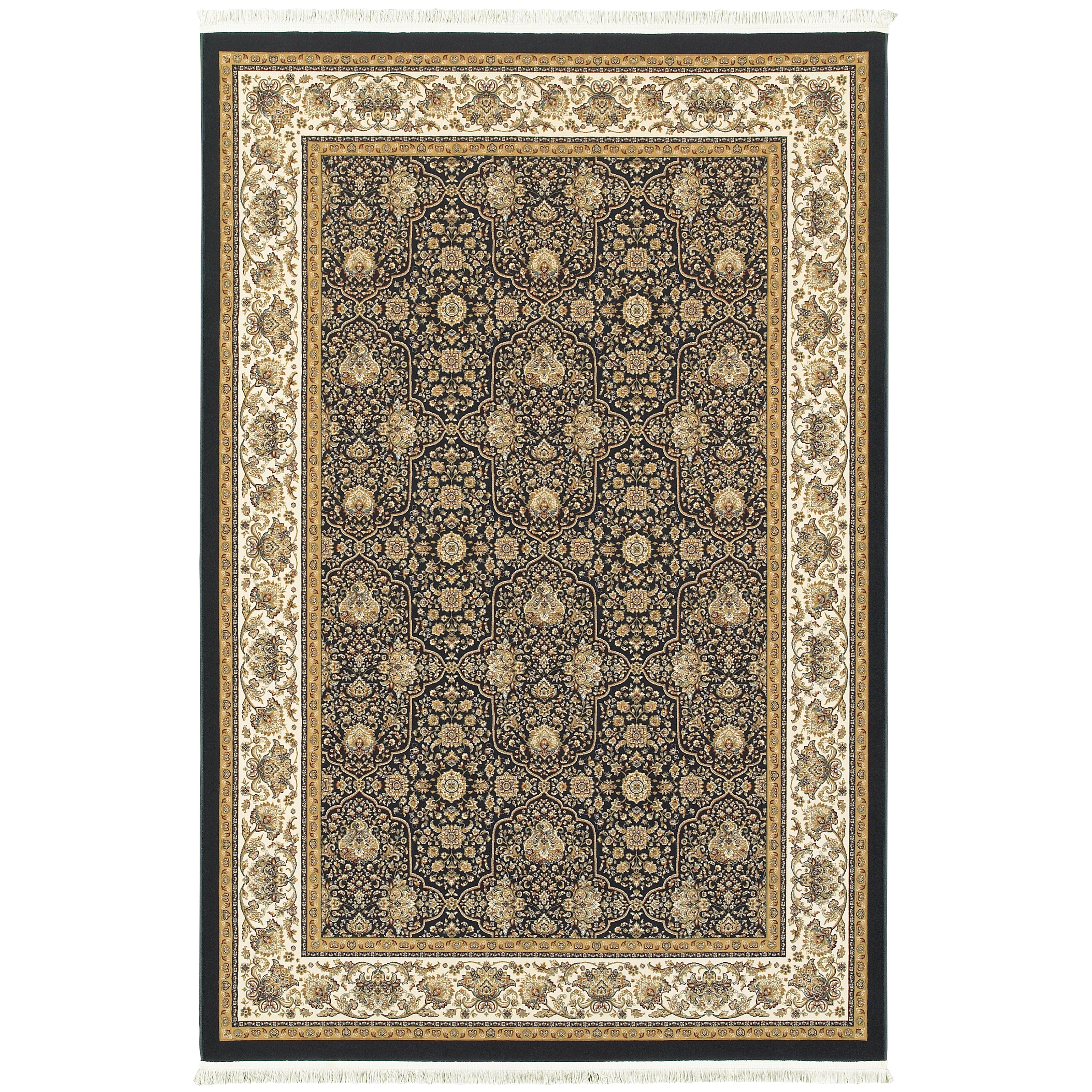 Masterpiece 1331B, a stunning collection of Persian patterns designed to stand the test of time. This exquisite rug features classic colors like navy, garnet red, black, ivory, and sage that blend harmoniously in a timeless design. Crafted with an ultra-dense and luxurious polypropylene pile, the Masterpiece collection offers exceptional clarity and a truly remarkable feel underfoot.