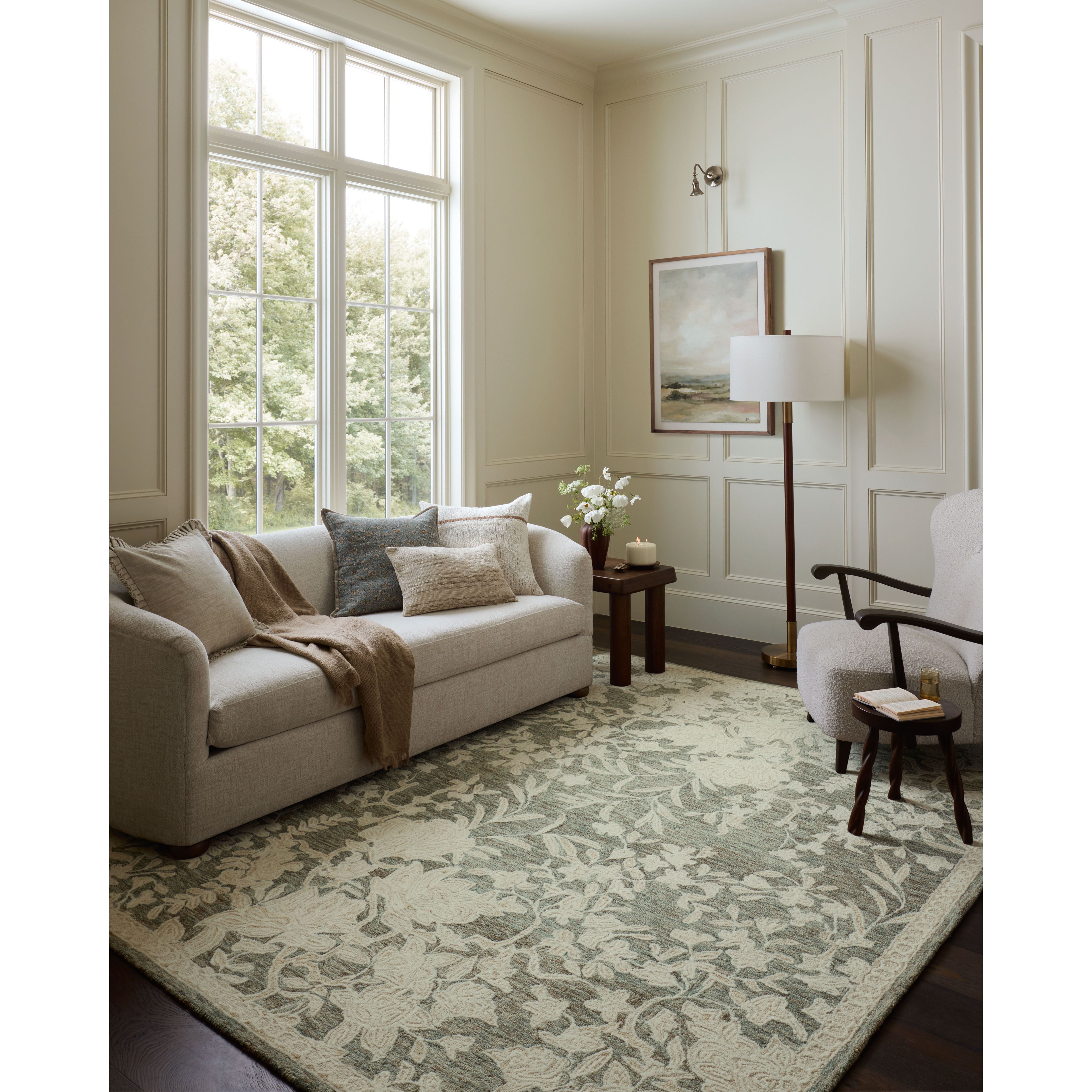 The Lenore Collection is a floral wool area rug with a two-toned design for elegant home decor. The rug intricate linework is cut pile and the base is looped yarn, which gives the florals a slightly raised appearance and lovely depth. Lenore is hand-tufted of wool in India and GoodWeave-certified, ensuring our commitment to ethical production and the support of weavers communities. Some shedding is expected and a natural characteristic of wool rugs; we recommend vacuuming frequently without a beater bar.