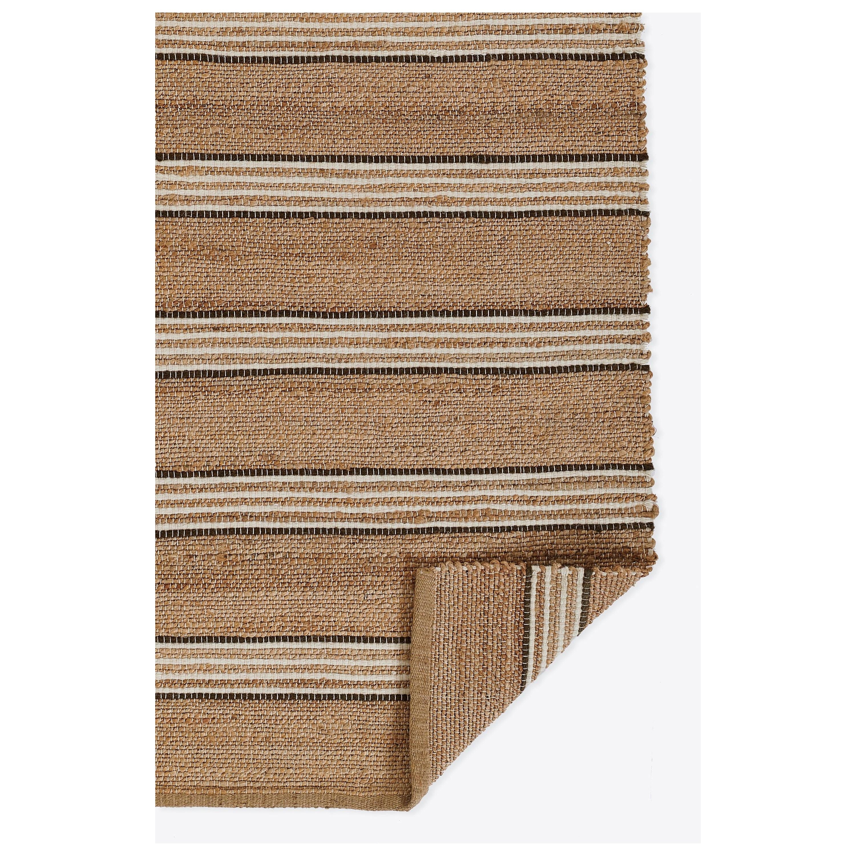 Chestnut Chs 1 Brown rug from the stylish Chestnut Collection by Erin Gates. This collection offers a contemporary take on classic striped designs, elevating your space with its unique aesthetic. Handwoven from jute and wool, these rugs are not only beautiful but also sturdy and long-lasting.