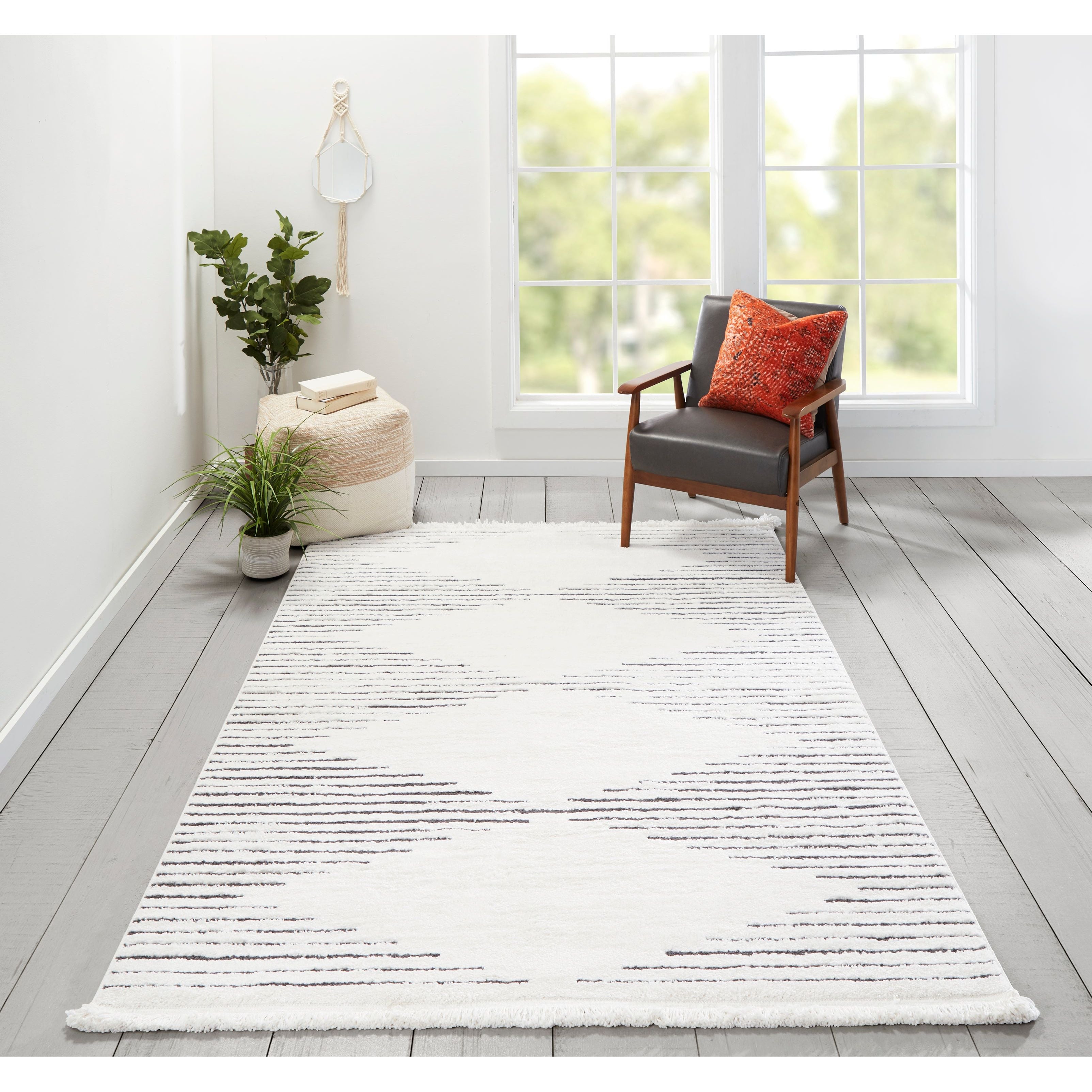 Ferris Frr 1 Ivory rug from the Novogratz by Momeni Collection. This collection showcases symbols and simple geometric shapes, adding a touch of modern flair to any room in your home. The versatile designs make it easy to incorporate into different decor styles, making it a perfect addition to your living space.