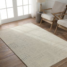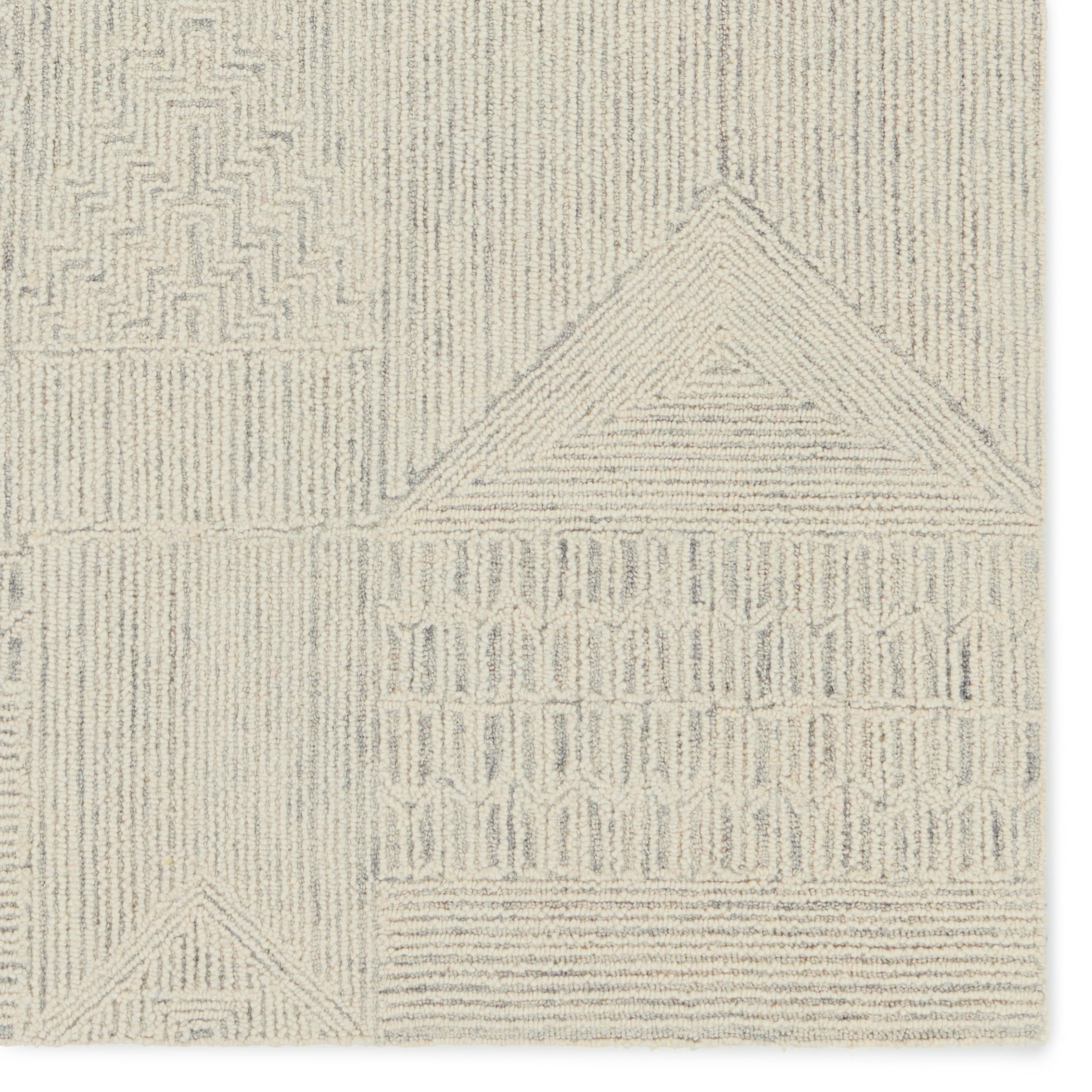 The stunning hand-tufted Lineage collection boasts intricate detailing and beautiful texture. A modern take on African and Moroccan motifs, these wool rugs lend pattern and interest with the versatility of neutral tones. The intricate Karim design features an eclectic mesh of stripes and geometric shapes that creates a stunning accent piece. Made of cream and light gray looped pile with varying height, this texture-rich area rug thrives in medium and low traffic areas of the home like bedrooms, formal living areas, and dining rooms.