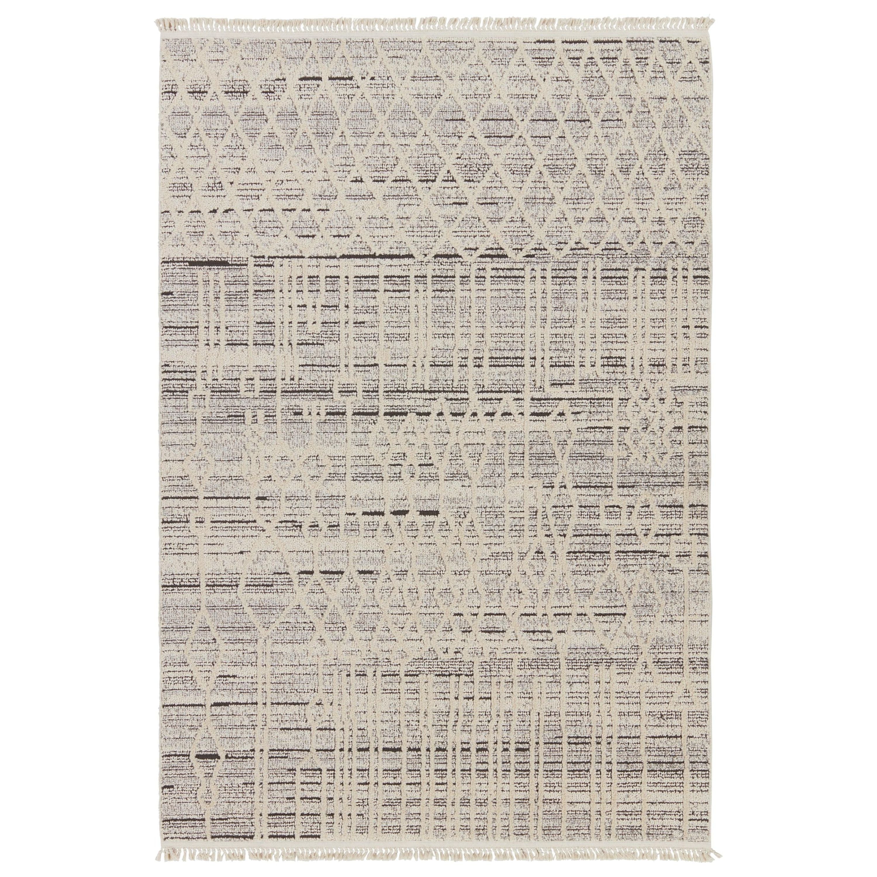The Lore collection introduces an assortment of modern Moroccan motifs and unique texture that grounds spaces with statement-making style. The Caiya area rug features distressed trellis designs, cut and looped pile, and cream, fringe. The contrasting neutral tones of cream and gray offer the perfect anchor to contemporary design. This indoor rug thrives in medium and low traffic spaces of the home such as bedrooms, dining areas, formal living rooms, and guest areas.