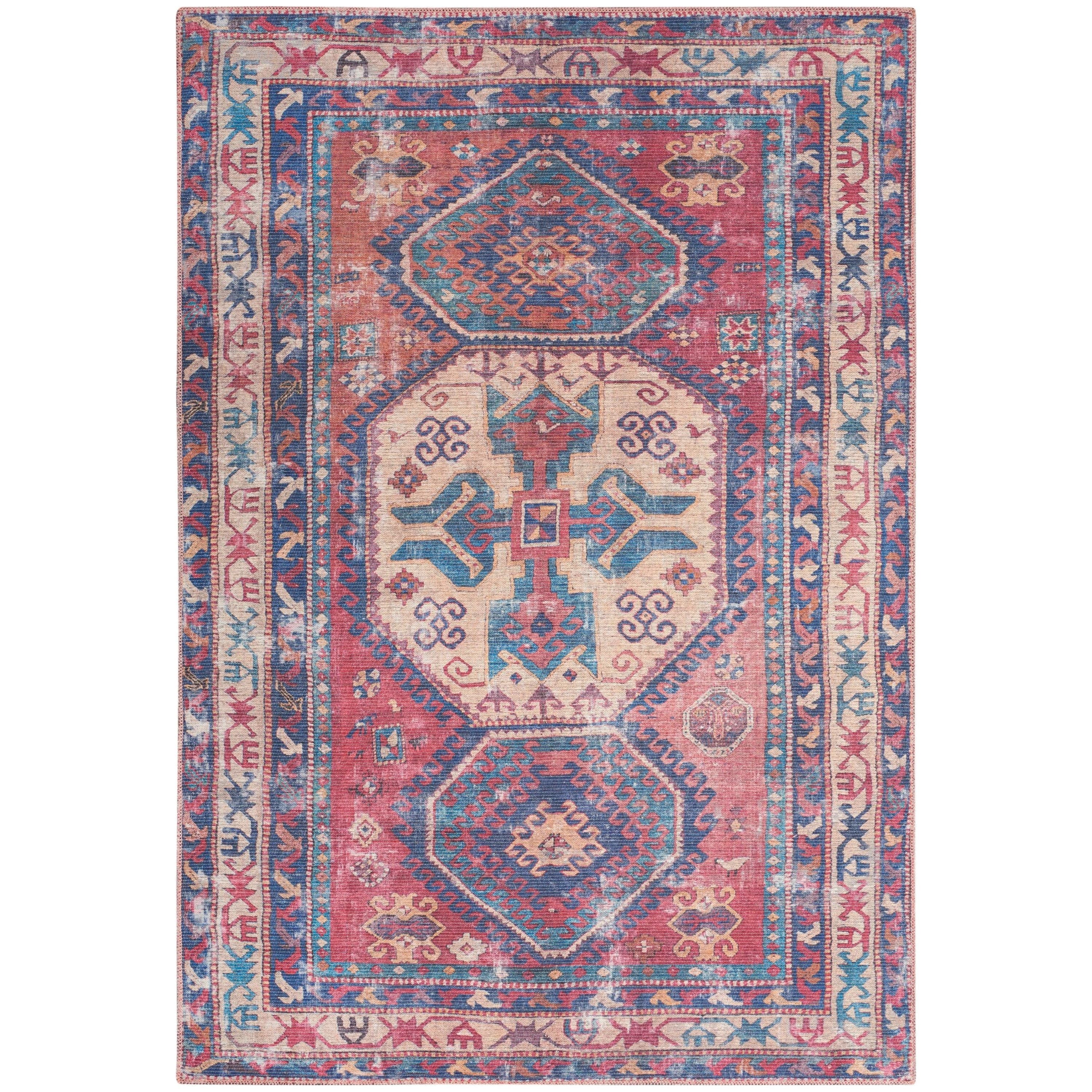 Nicole Curtis Machine Washable Series 1 SR105 Red Navy rug collection! Renowned designer Nicole Curtis believes that every home has a unique story to tell, and now it's your turn to write yours with this timeless assortment. This series draws inspiration from the vibrant patterns of Persian floral and tribal designs, bringing a touch of vintage charm to your living space.