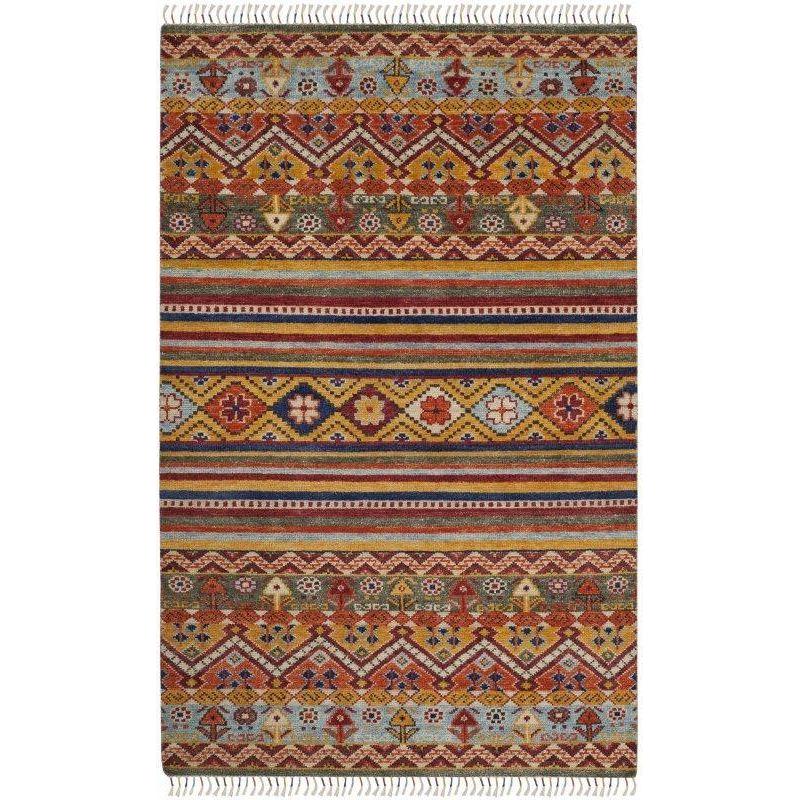 Nomad NMD785A Multi, a stunning addition to Safavieh's Nomad Collection. This exquisite rug draws inspiration from indigenous and tribal designs, boasting a harmonious blend of colors that will enhance any space. Hand-knotted by skilled artisans, each rug is crafted using traditional techniques that have been perfected over generations.