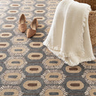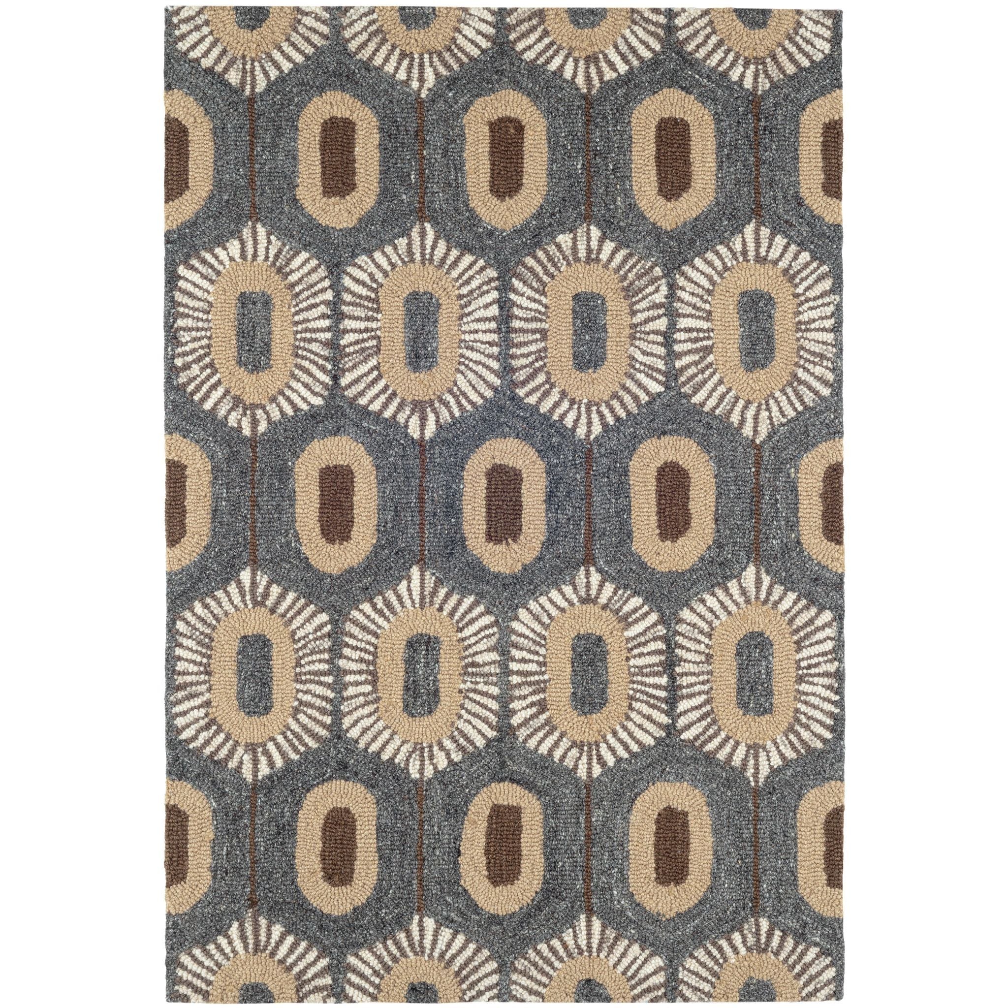 With contrasting neutral hues of Java, Sand, Ivory and natural, undyed marled Grey wool, dynamic textured motifs deliver a decorative yet modern element to this intricate design. Expertly handwoven in an extremely durable, low profile, micro-hooked structure from naturally warm and cozy wool, a durable, soil resistant, sustainable, biodegradable resource.