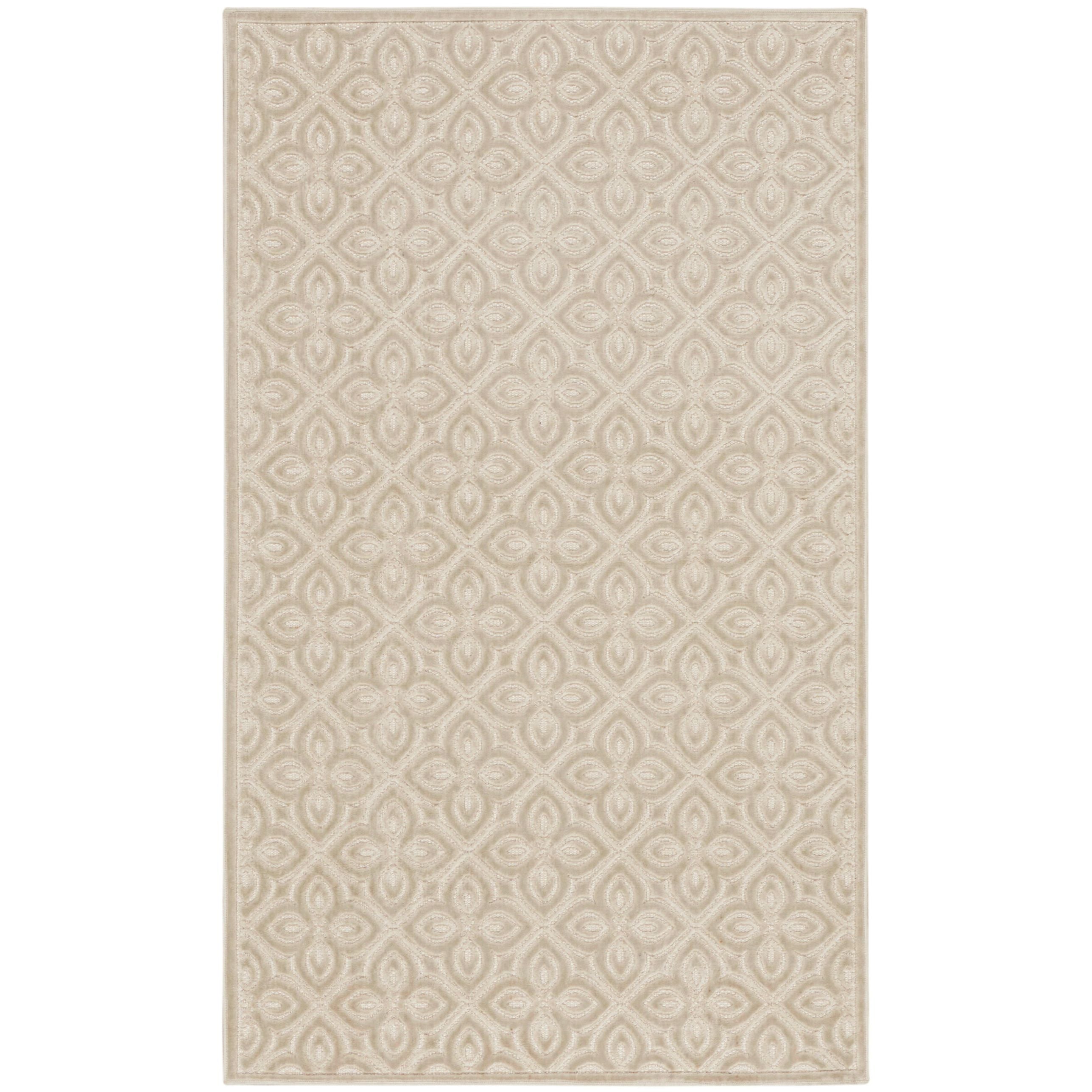 Timeless charm meets modern practicality with this silver Washable Charm rug. The floral pattern, inspired by classic decorative tile, is enhanced by a subtle high-low texture that adds a touch of visual interest to your surroundings. Machine-made in a sleek, low-profile construction for fuss-free care: simply toss into your washing machine and air dry.