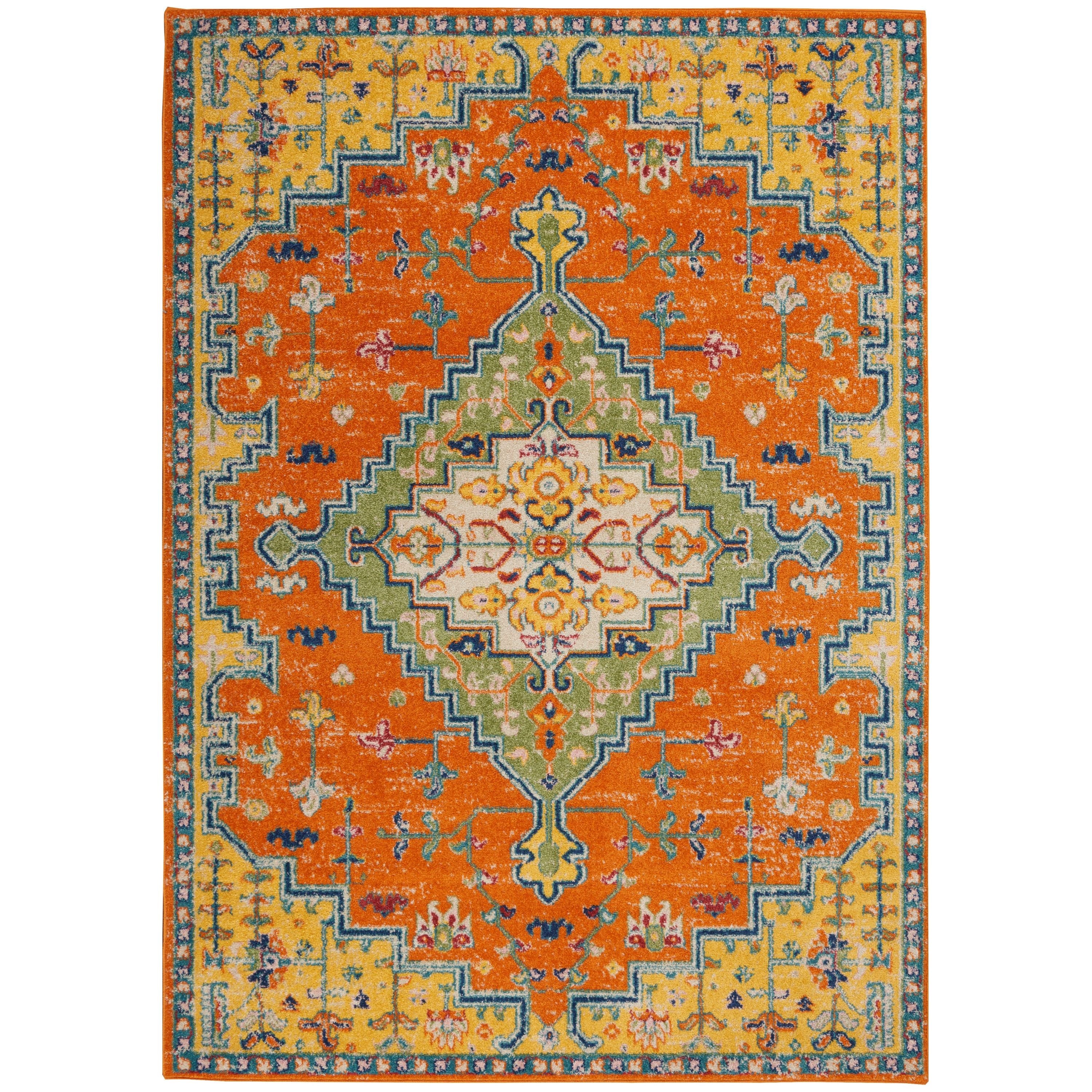 Allur ALR01 Orange Multicolor area rug from the Allur Collection, designed to bring a touch of warmth and comfort to your space. The rug features a captivating blend of contemporary florals, Persian-inspired medallions, and tribal patterns in vibrant jewel tones, adding a boho chic vibe to any room.