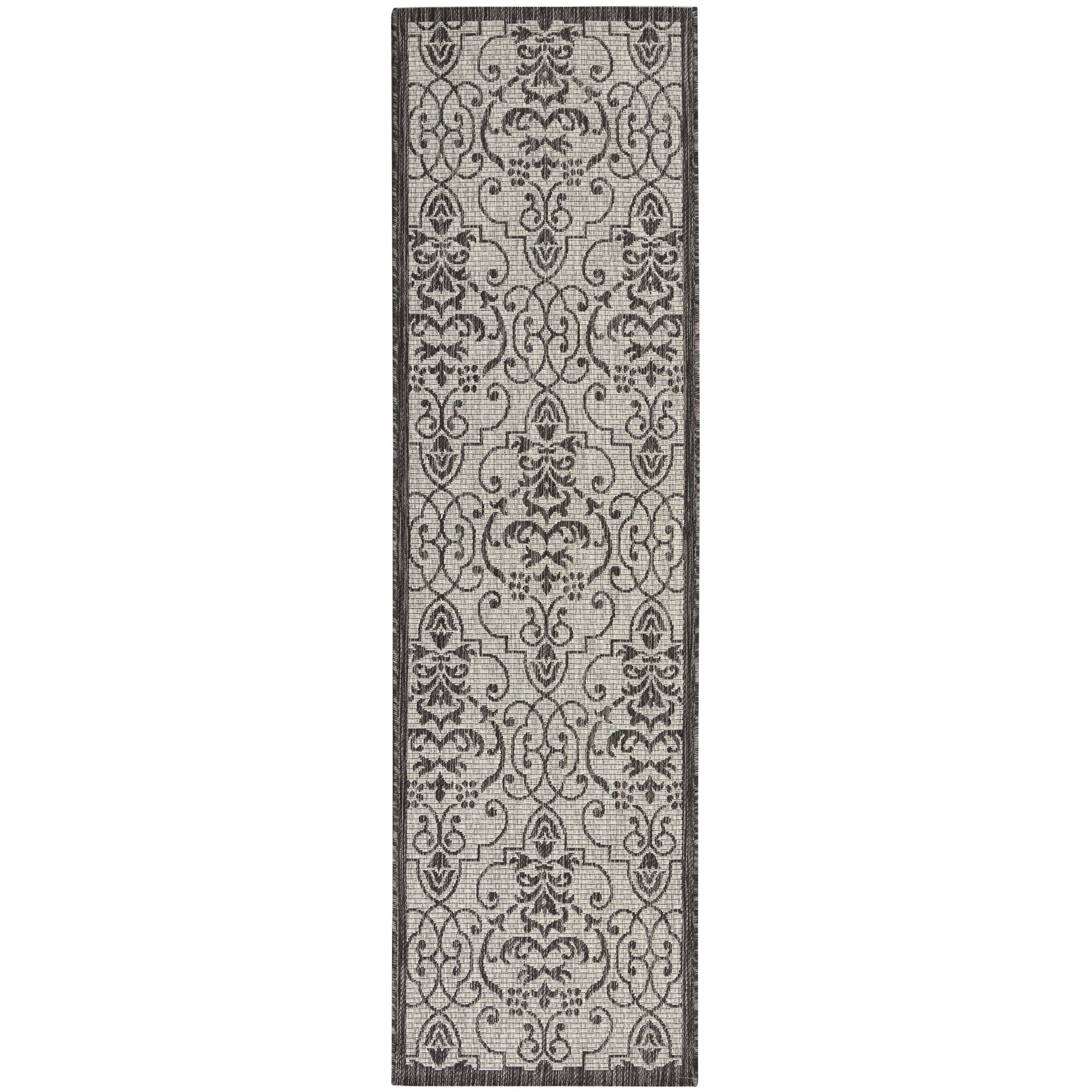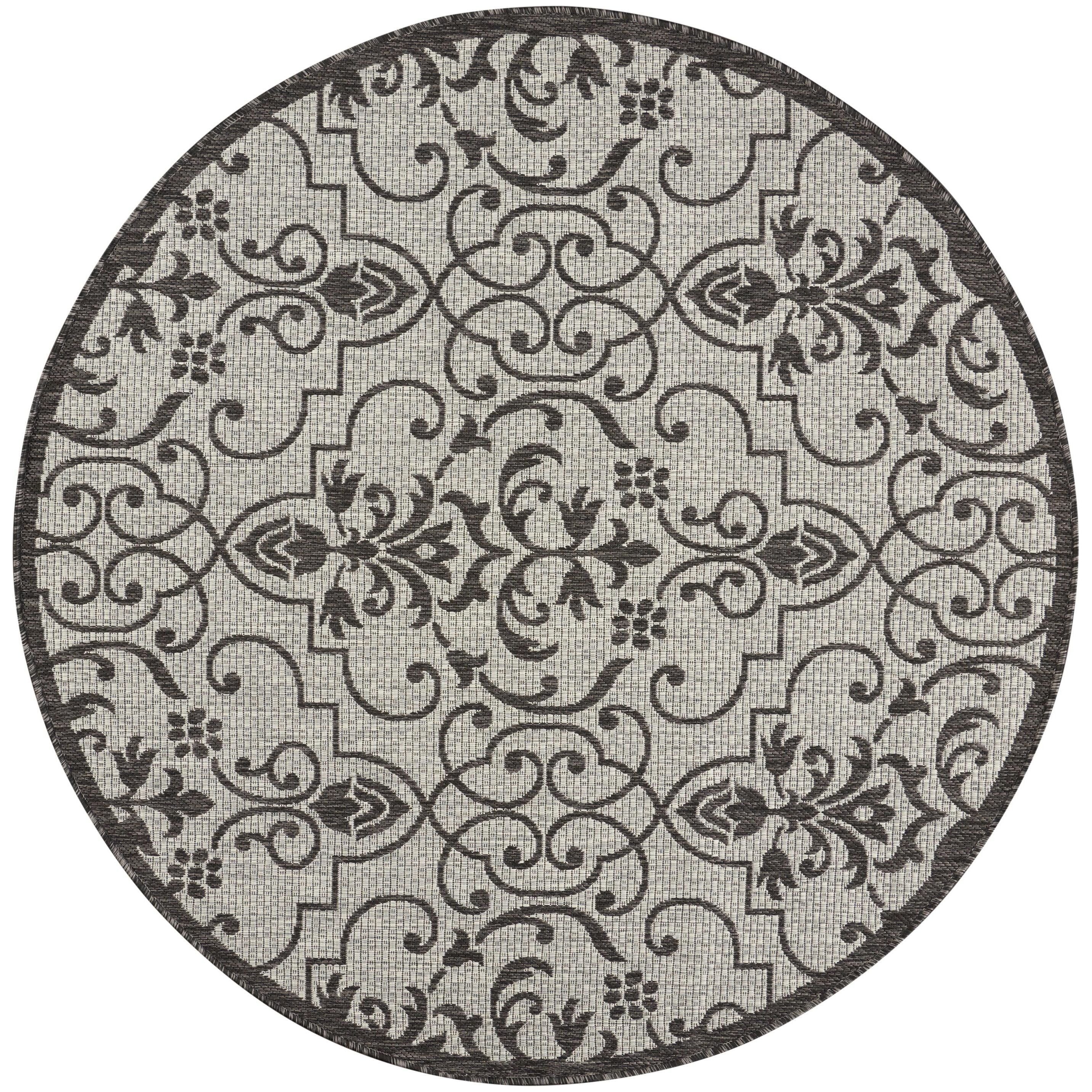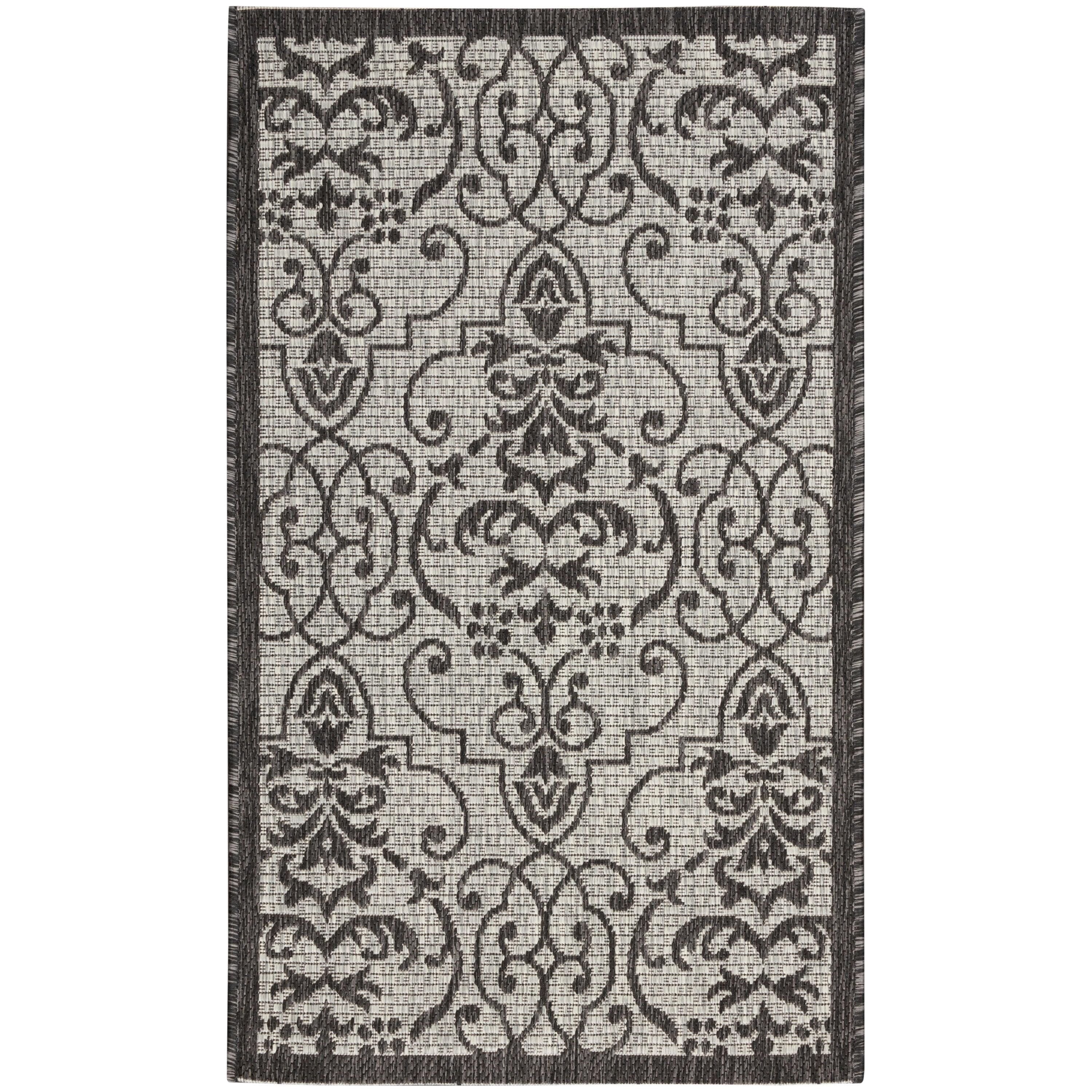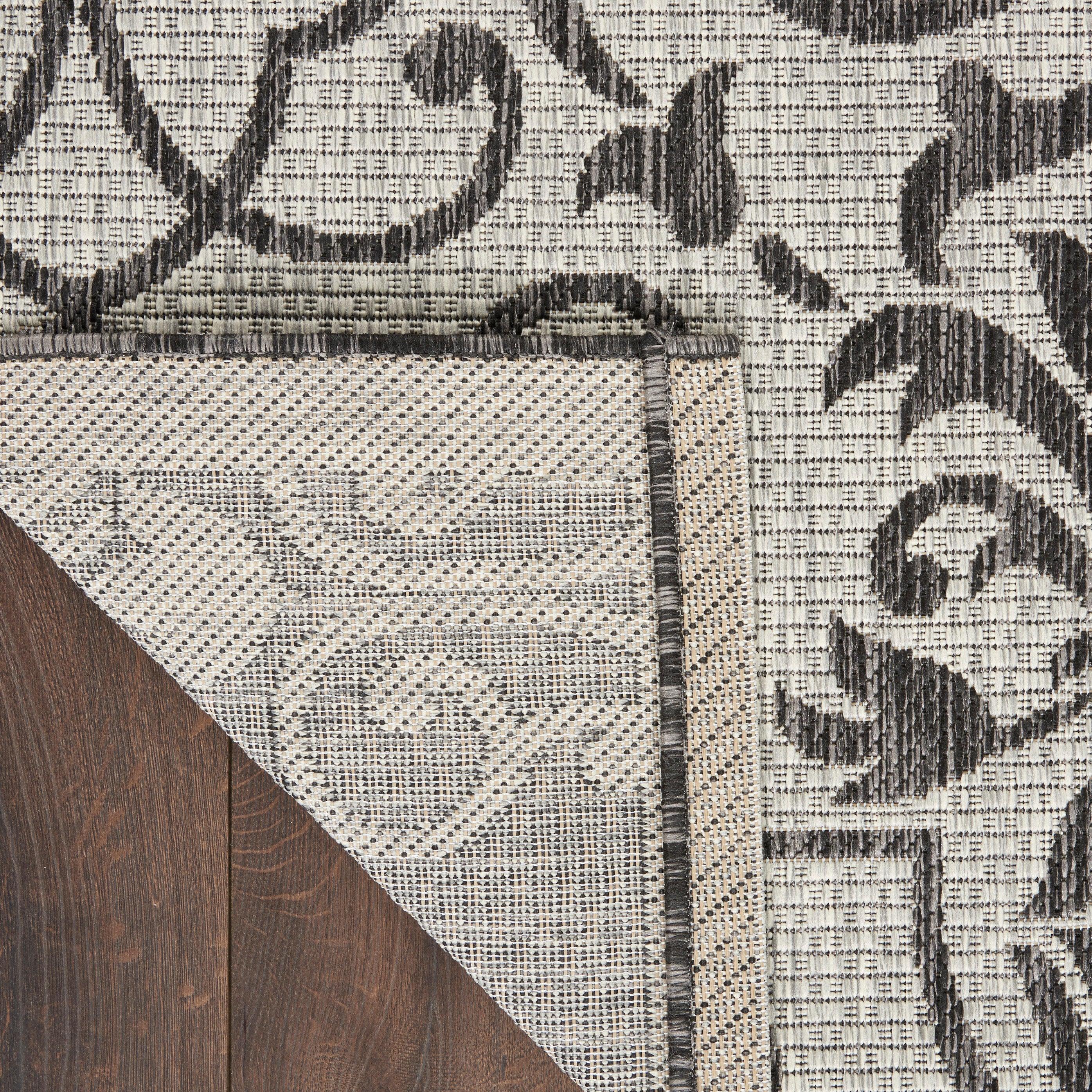 charming Country Side CTR04 Ivory Charcoal rug from the Garden Party Collection by Nourison. Crafted with chic simplicity, this outdoor area rug is a stunning addition to any space. The flat woven design offers a delightful mix of tone, texture, and durability, making it perfect for both classic and contemporary settings.