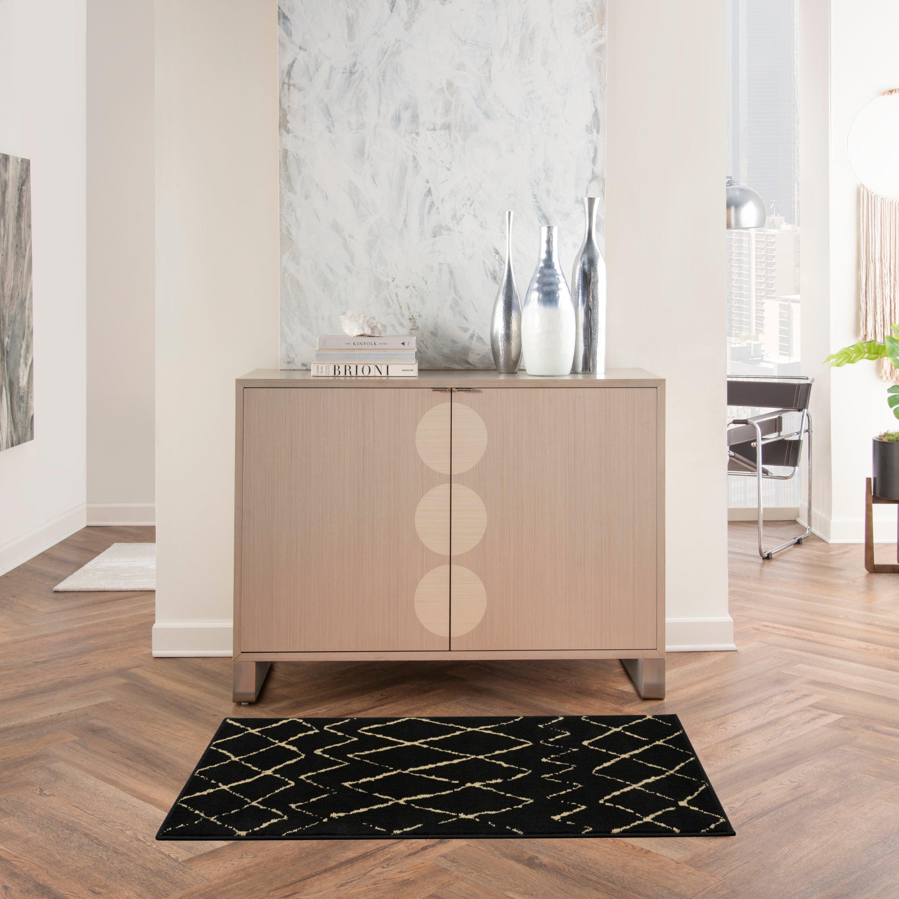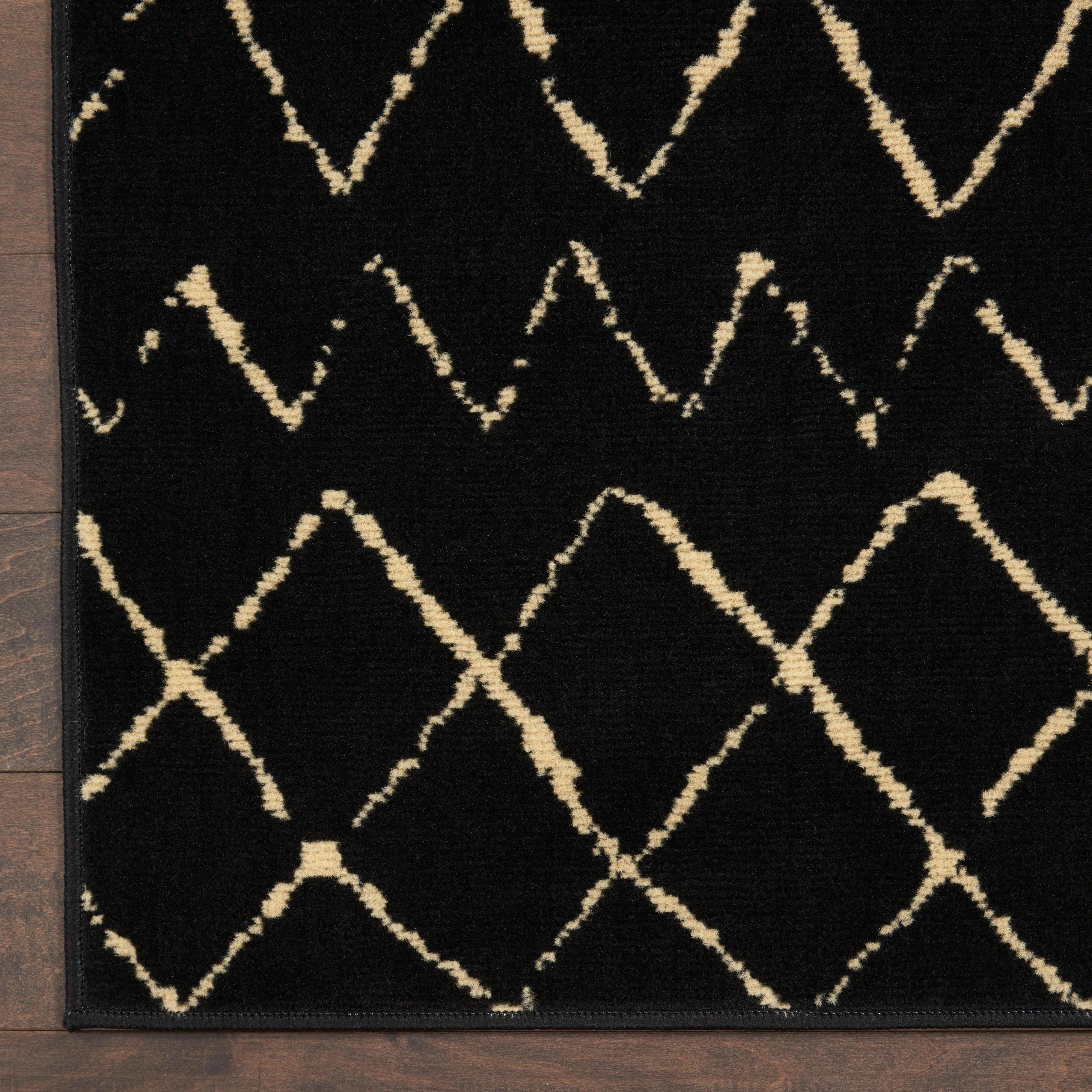 Grafix GRF04 Black area rug from Nourison's stunning Grafix Collection. With its bold and graphic design, this rug is sure to make a dramatic statement in any room. Available in a variety of contemporary color palettes, this rug is crafted from durable and easy-to-care-for polypropylene, ensuring long-lasting beauty.