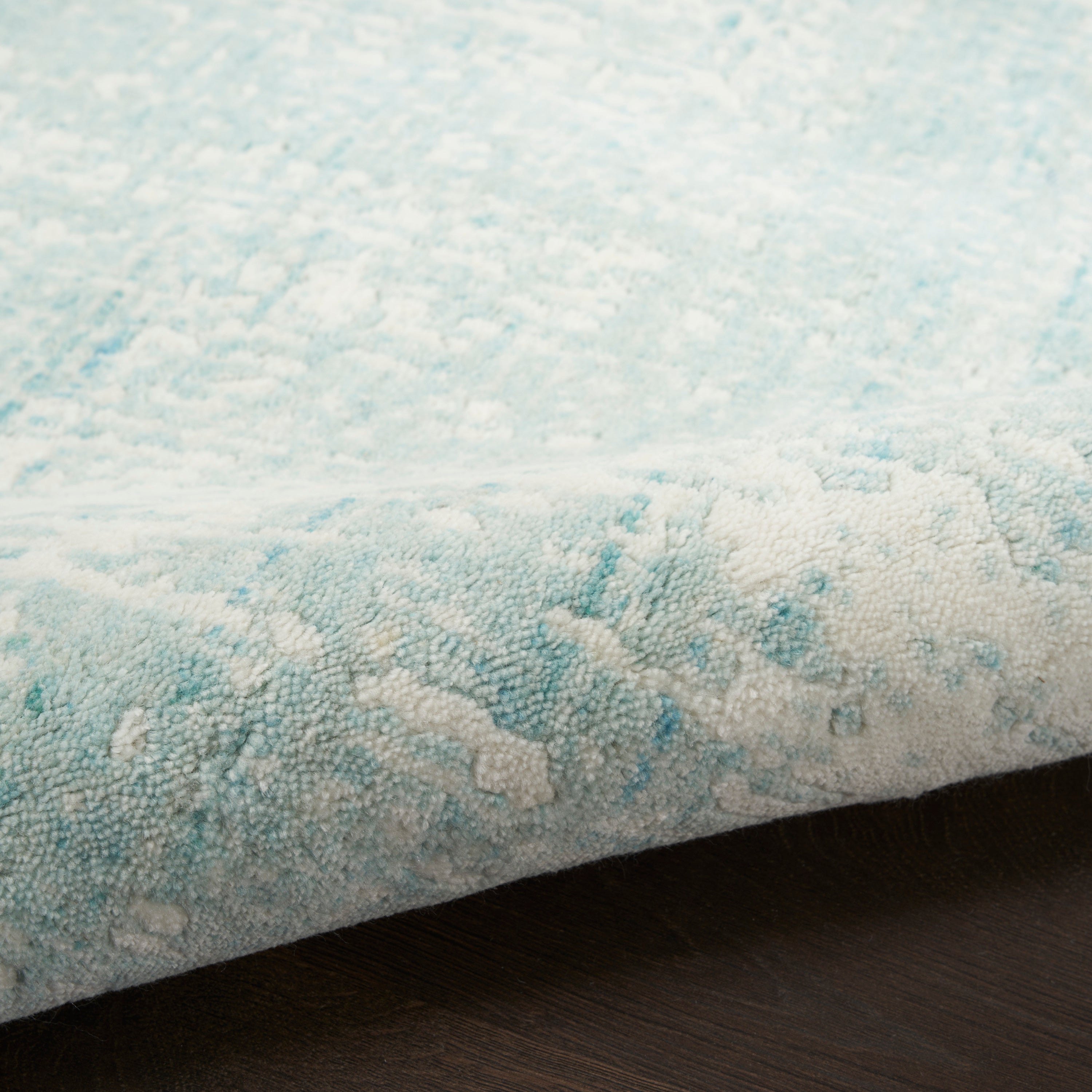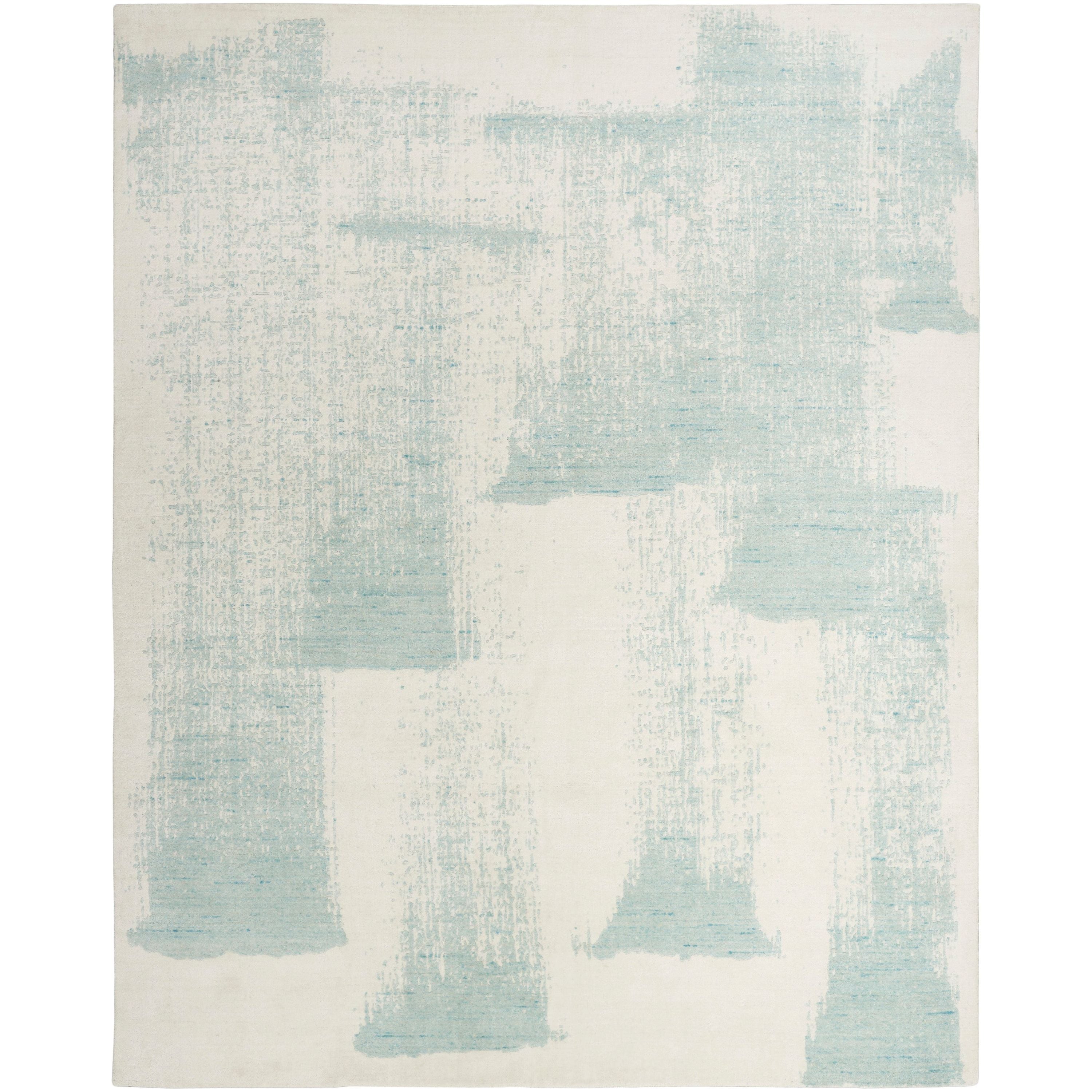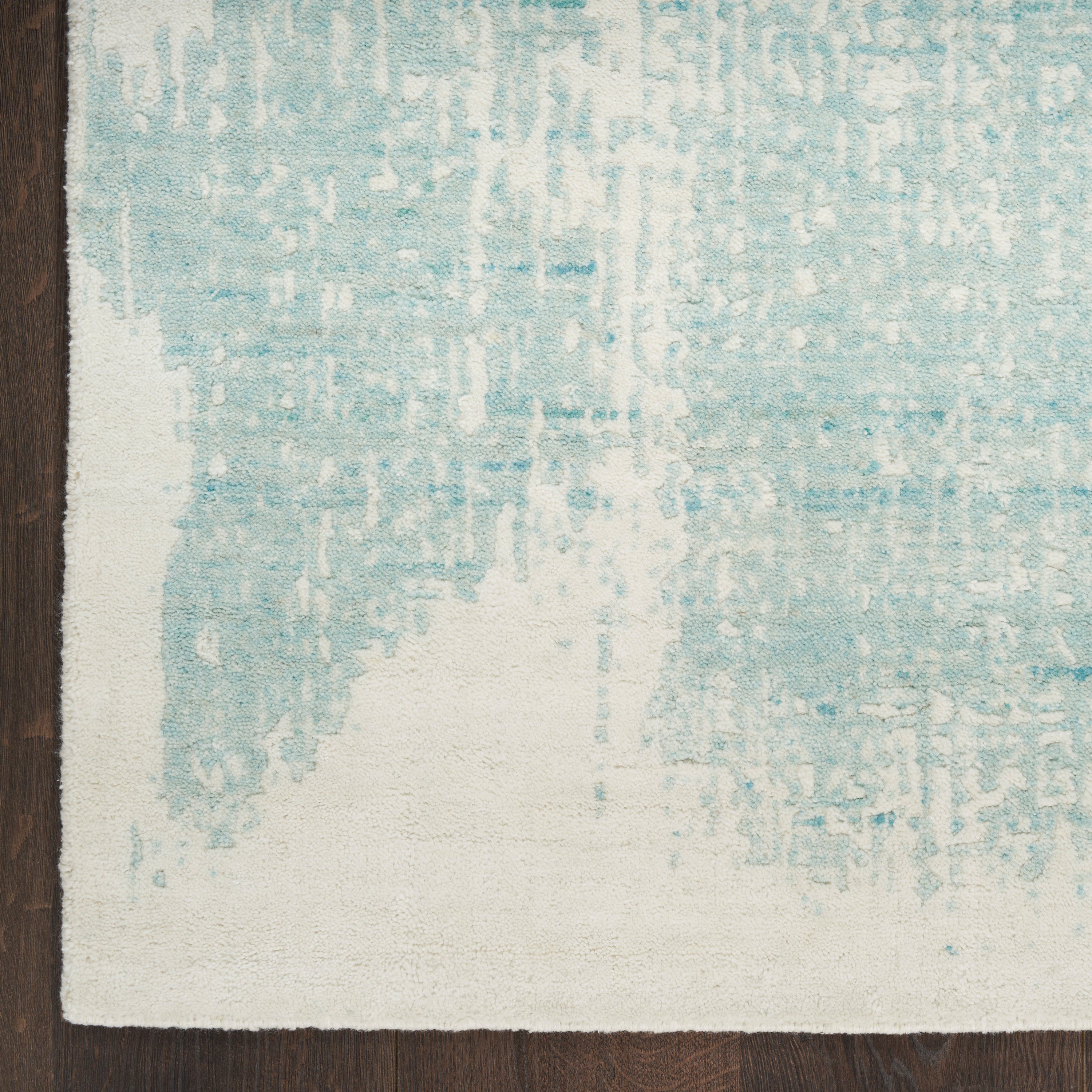 Introduce a serene ambiance to your living space with the Harmony HAY02 Ivory Aqua rug from our exclusive Harmony Collection. This contemporary piece draws inspiration from the graceful flow of an artist's brushstroke, creating an abstract pattern that ignites artistic conversations. The calming hues of aqua blue and ivory, combined with high-low textured details featuring silk-like fibers, make this handcrafted rug a stunning centerpiece for any room. Meticulously woven from a luxurious blend of wool, rayon, and polyester, this rug promises both durability and elegance.