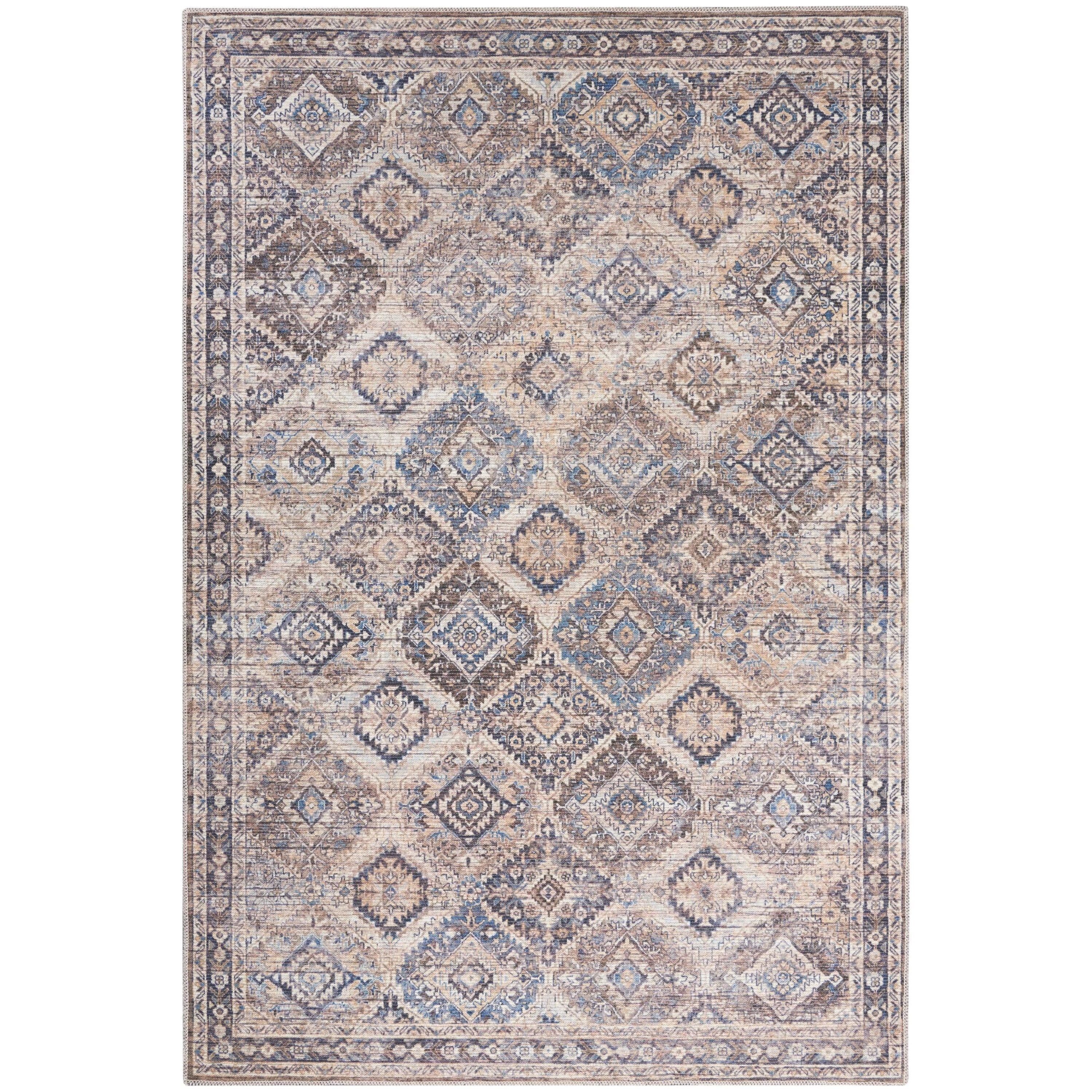 Machine Washable Series 1 SR103 in Ivory Latte - a versatile and stylish addition to your home decor. Designed by Nicole Curtis, this rug collection is inspired by the charm of vintage Persian floral and tribal patterns, bringing a touch of history and character to any room. Embrace the cozy and welcoming atmosphere that these rugs create, thanks to their distinctively distressed finish that exudes a lived-in aesthetic.