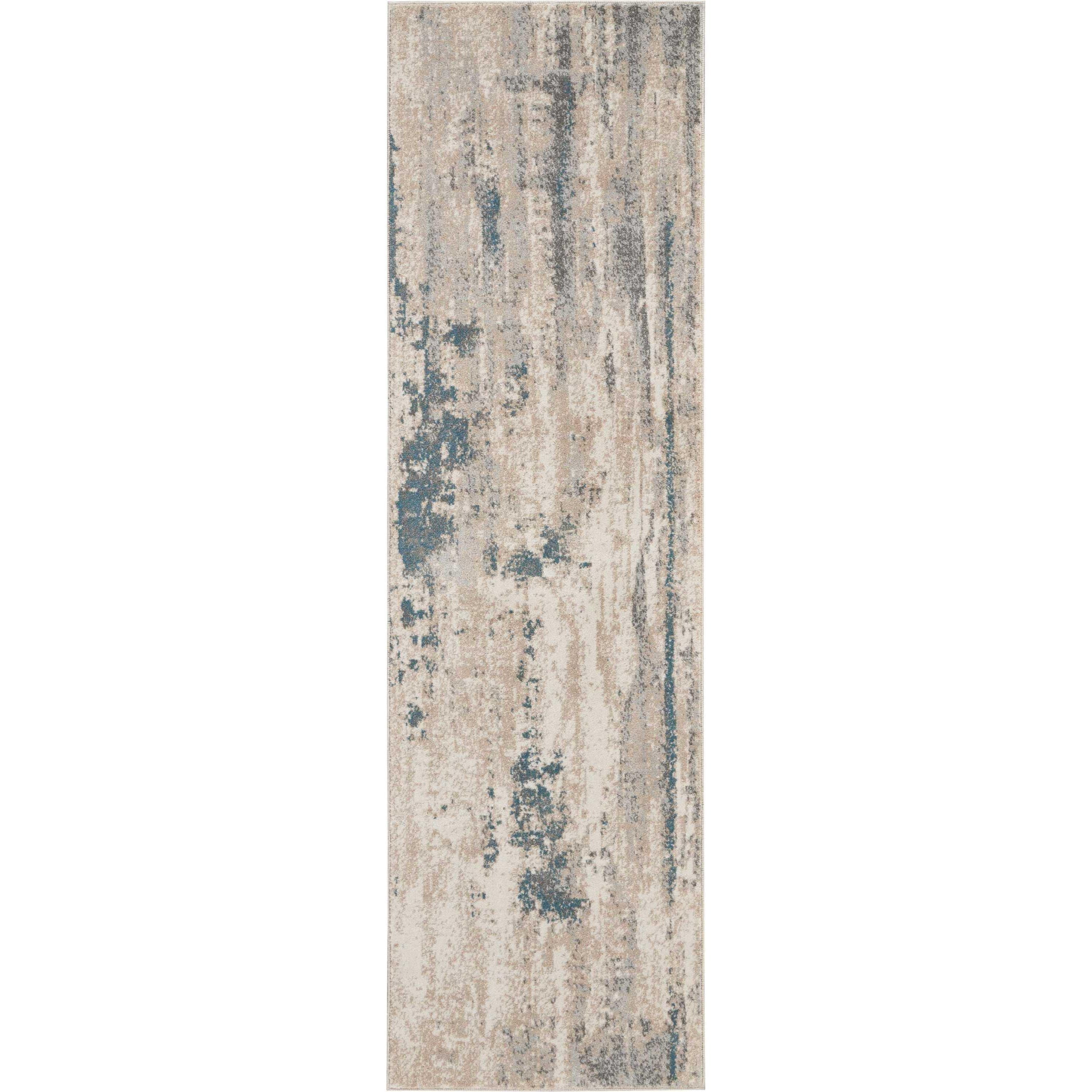 Maxell MAE17 Ivory Teal area rug from the Maxell Collection, a stunning piece that will elevate any space with its unique and dimensional appeal. This rug features gorgeous transitional shadings and ombre effects that create a captivating visual impact. The exciting abstract design adds a touch of imaginative intrigue to your room, while the versatile shades of smoky blue, grey, and ivory ensure it will complement any decor style effortlessly.