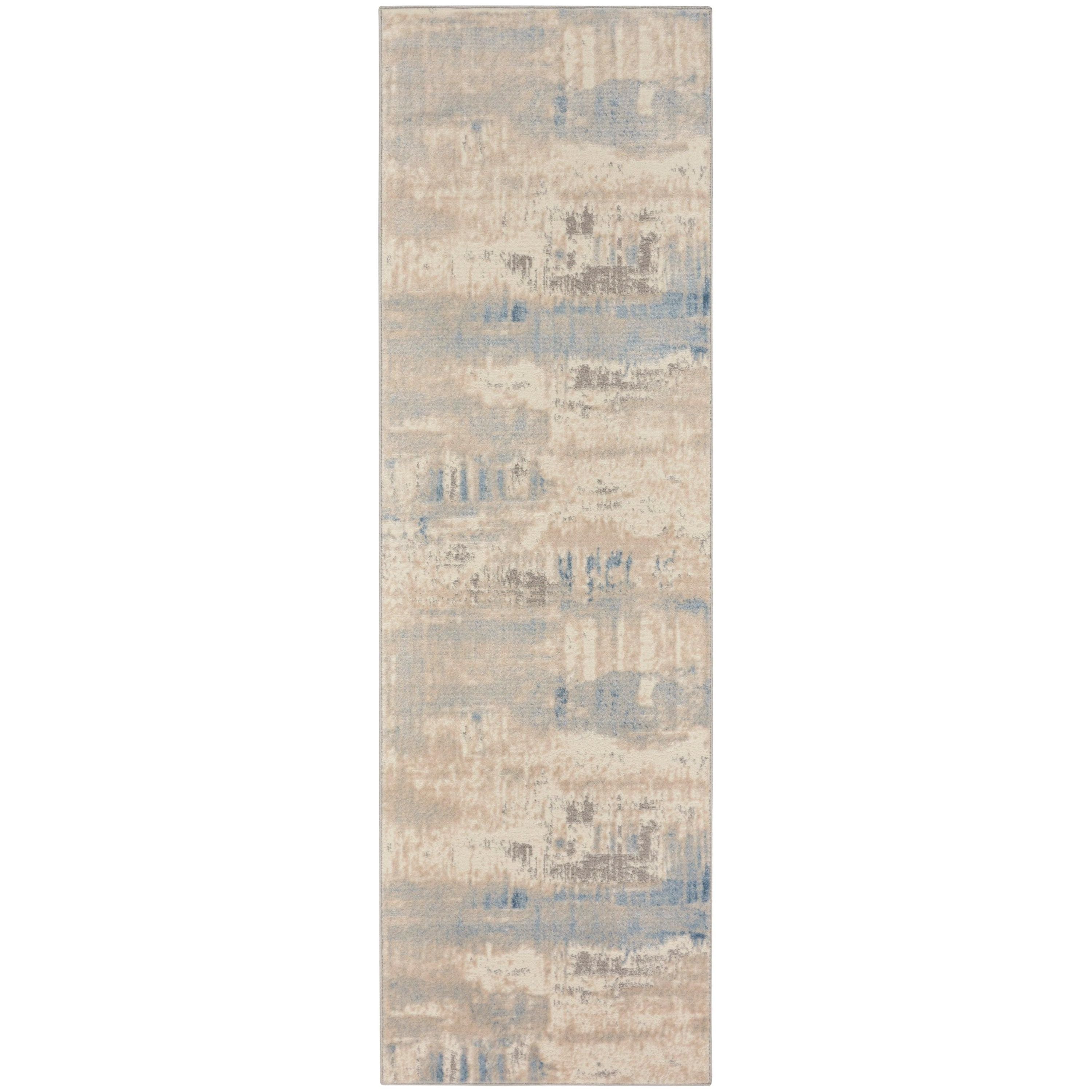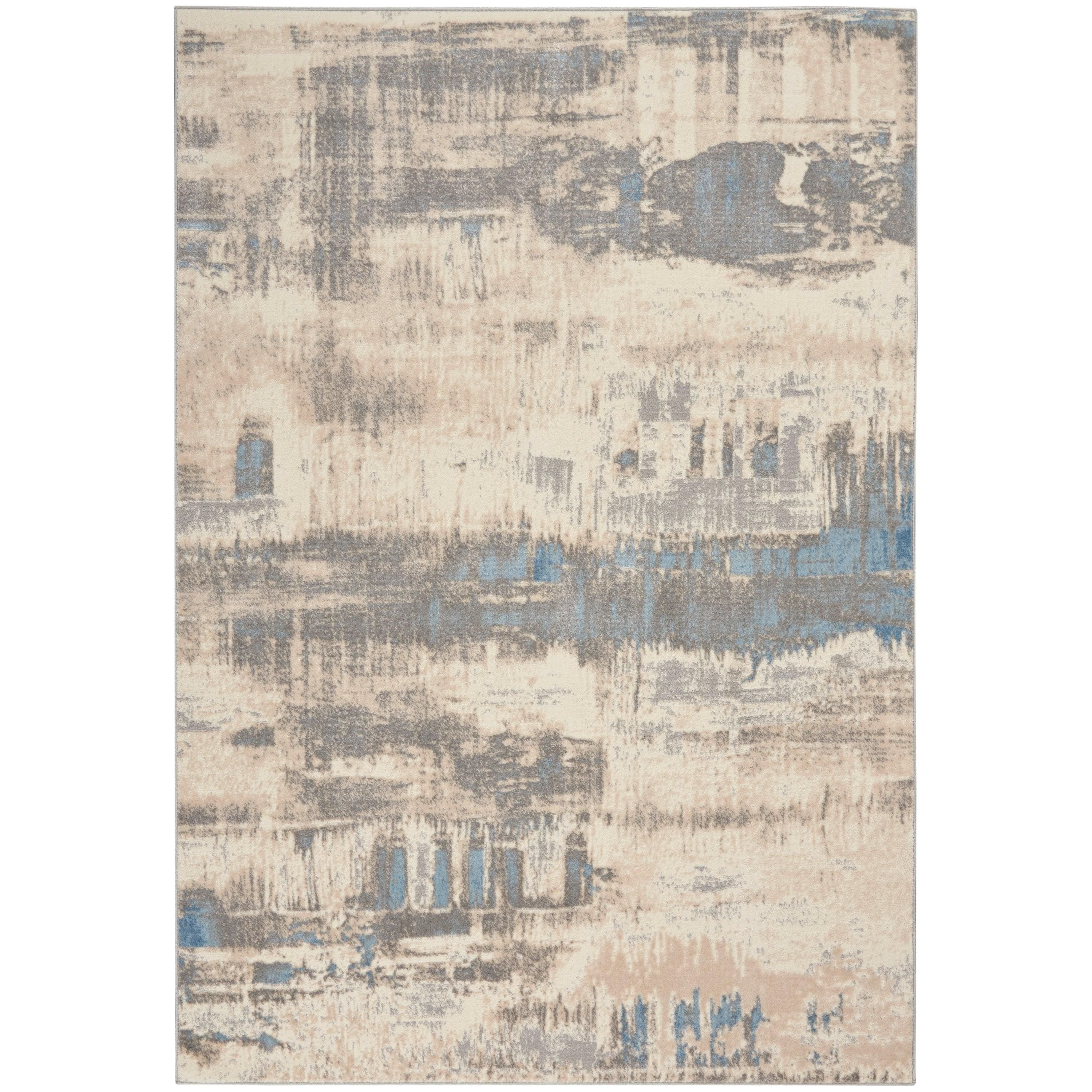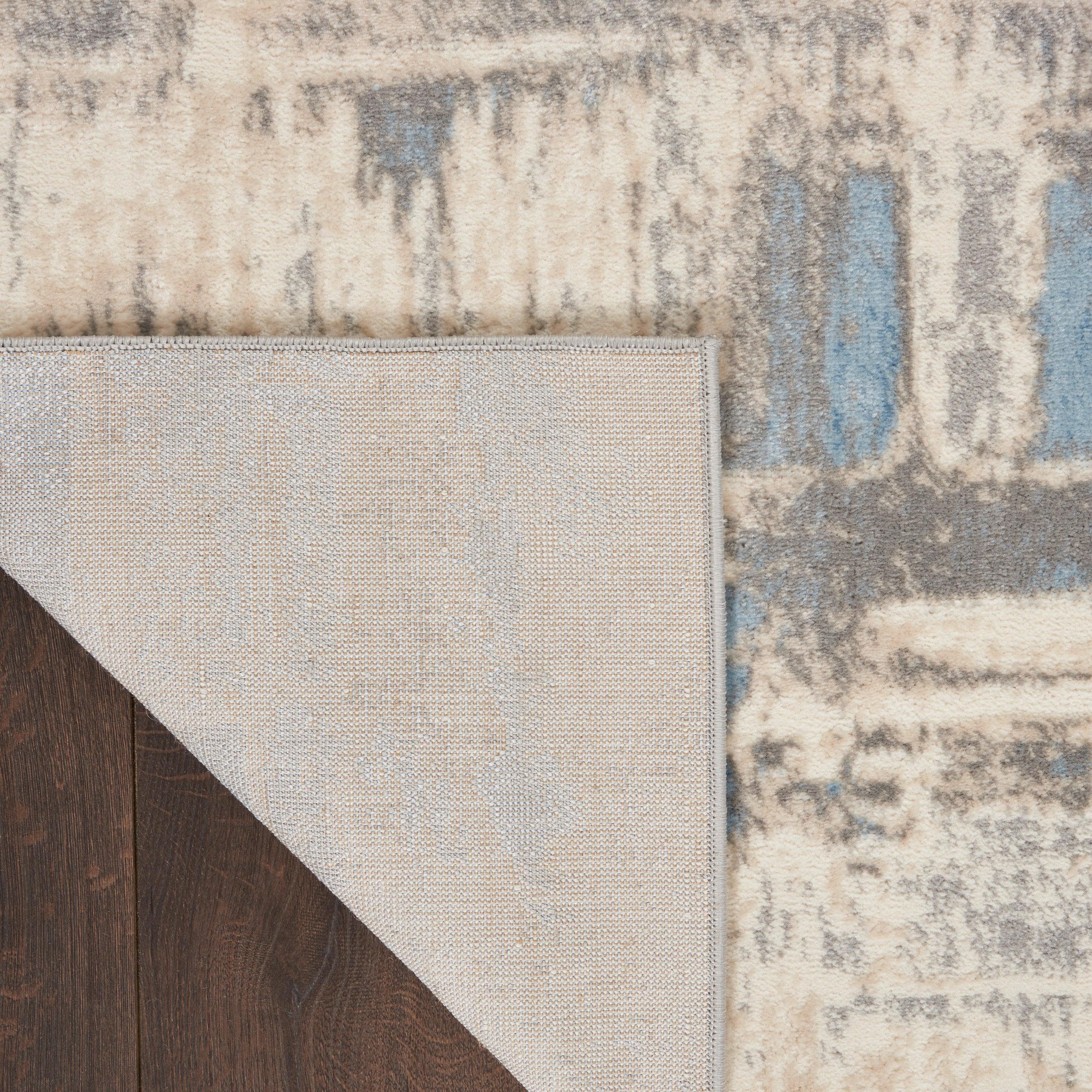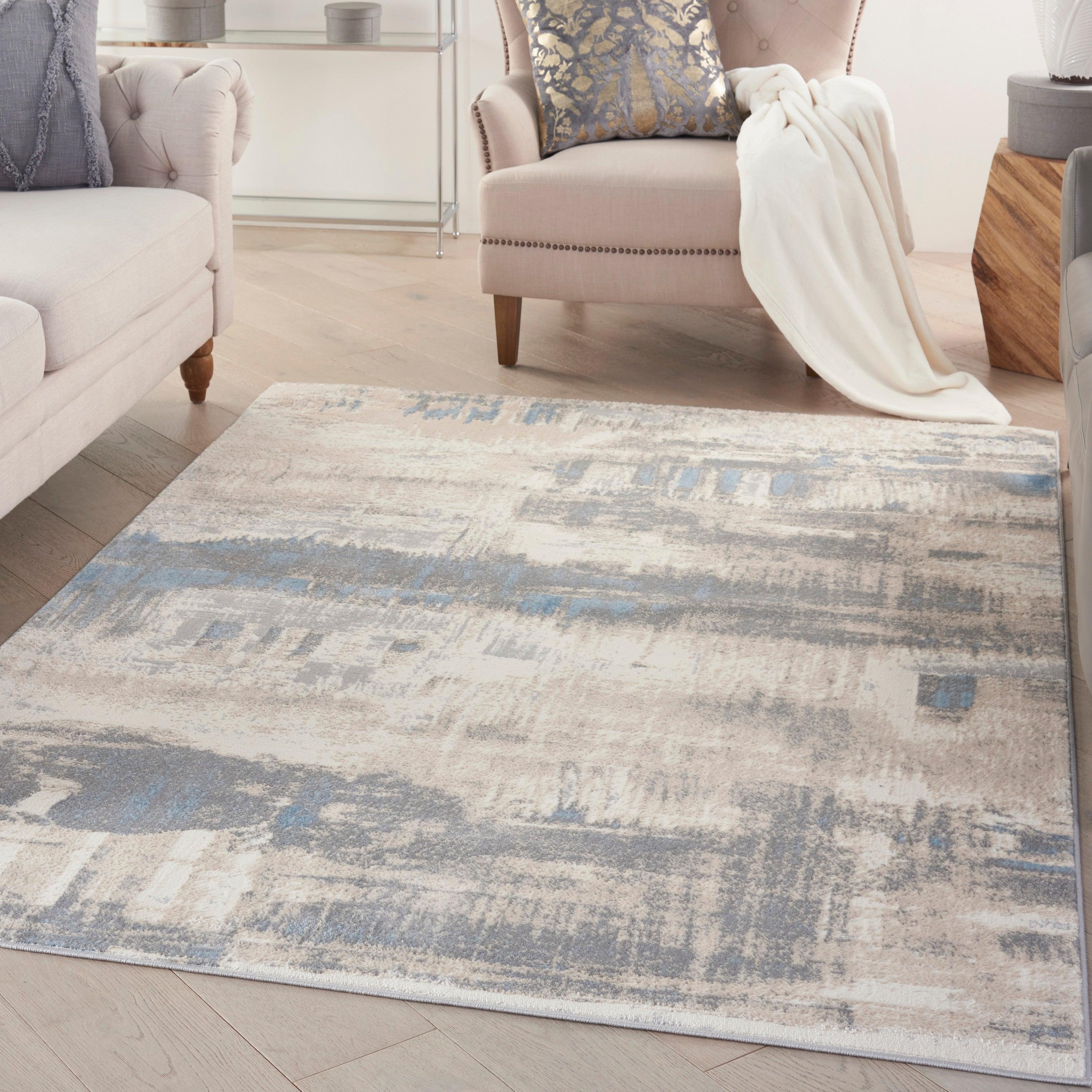 stylish Solace SLA07 Ivory Grey Blue area rug from our captivating Solace Collection. Featuring sumptuous shadings of cool neutral tones and captivating abstract designs, this rug offers a modern touch to any space. The high-low pile adds inviting texture, while the erased patterns give it a trendy, distressed appearance.