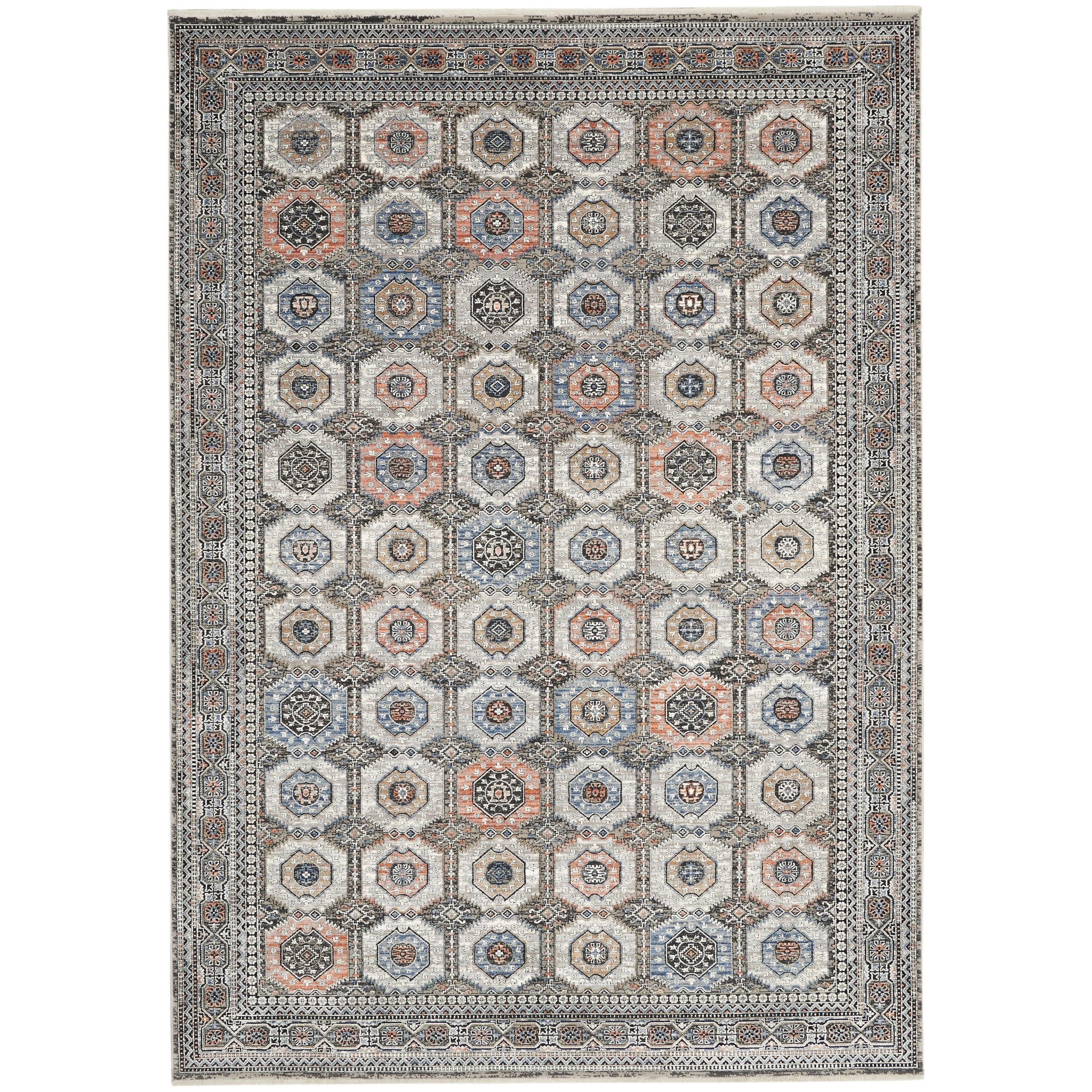 enchanting Starry Nights STN09 Grey Navy rug, a timeless piece inspired by ancient Persian opulence. This exquisite collection pays homage to traditional area rugs with a vintage charm that evokes the elegance of bygone eras. The intricate patterns and framed designs exude a sense of sophistication, while the faded color palette creates a nostalgic feel akin to a cherished family heirloom. A delicate surface shimmer adds a touch of allure, making this rug truly come alive in any space.