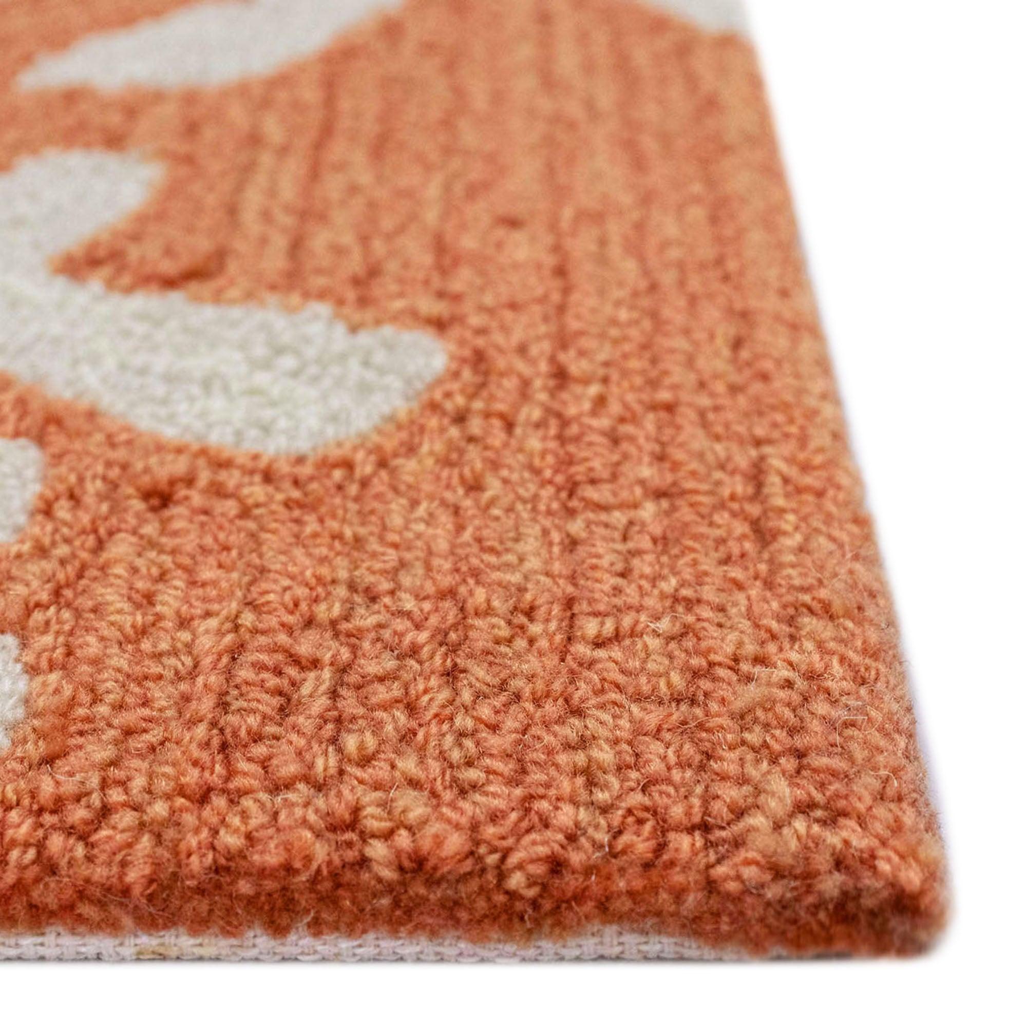 Introducing our Capri Coral Bdr Orange doormat, featuring vibrant Poinsettia flowers and Holiday greens that bring a festive touch to your doorstep. Perfect for welcoming guests during the Holidays, this doormat is hand-hooked using weather-resistant fiber for a blend of comfort, softness, and durability.