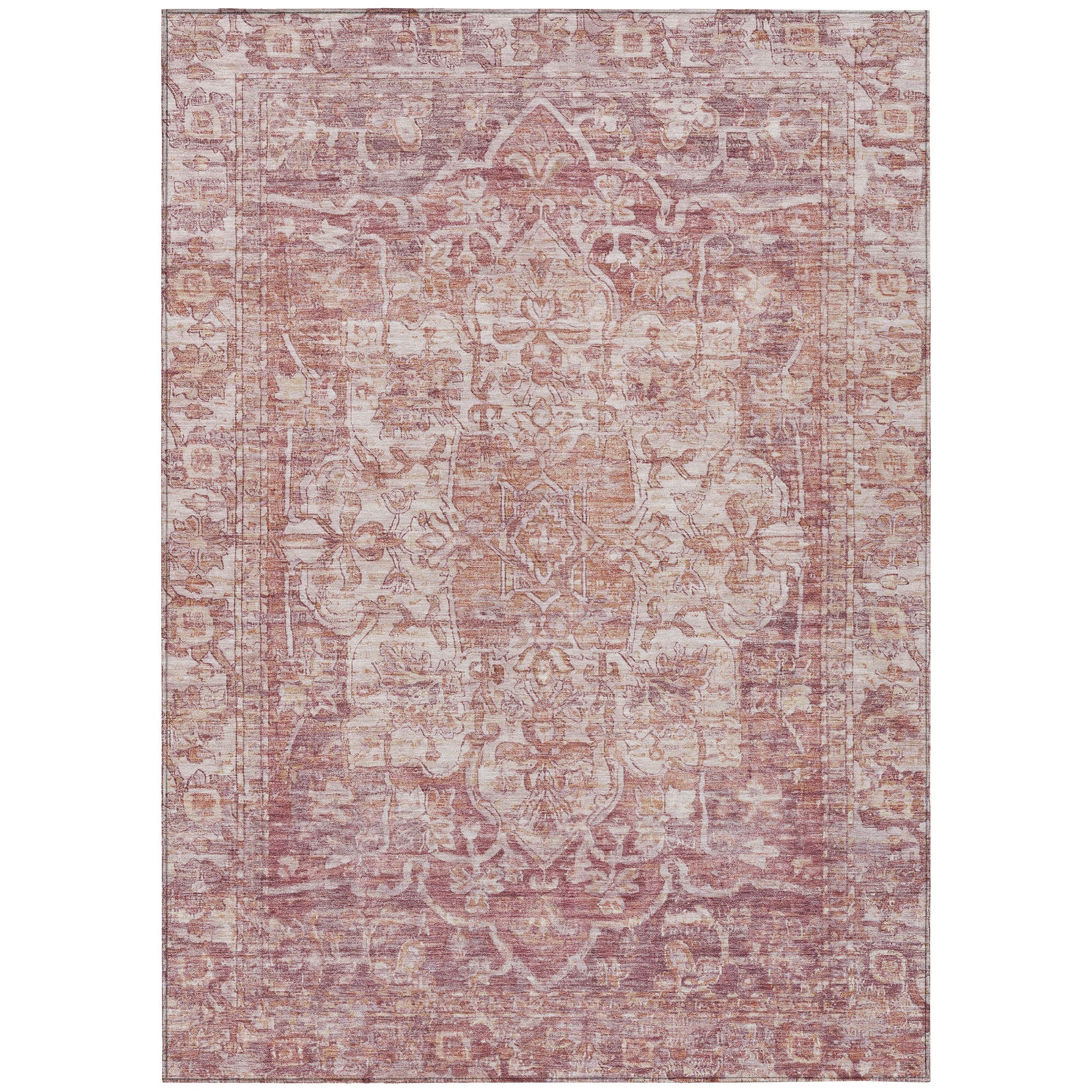 A bold center medallion anchors this rug’s design, while overall distressing adds a sense of history and charm. The distressed look softens the intricate details, giving it a worn, antique feel. Its traditional style paired with a global pattern makes it a versatile choice for adding both sophistication and cultural richness to any room. Designed for both indoor and outdoor spaces, this UV-stabilized rug features an ultra-thin construction that’s easy to clean and care for. Its machine-washable design adds convenience, while its family and pet-friendly nature ensures it can handle everyday wear and tear. Stylish and durable, it’s the perfect solution for busy households.