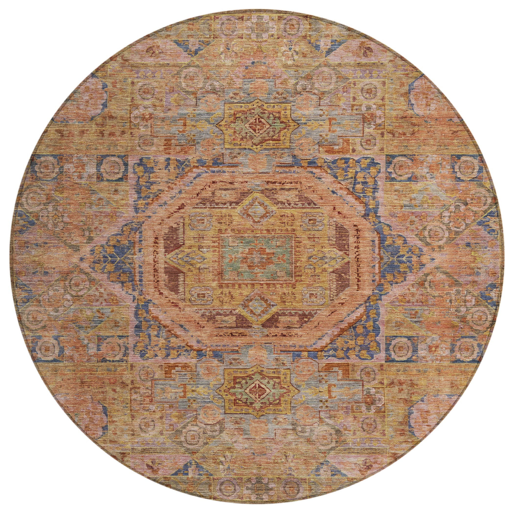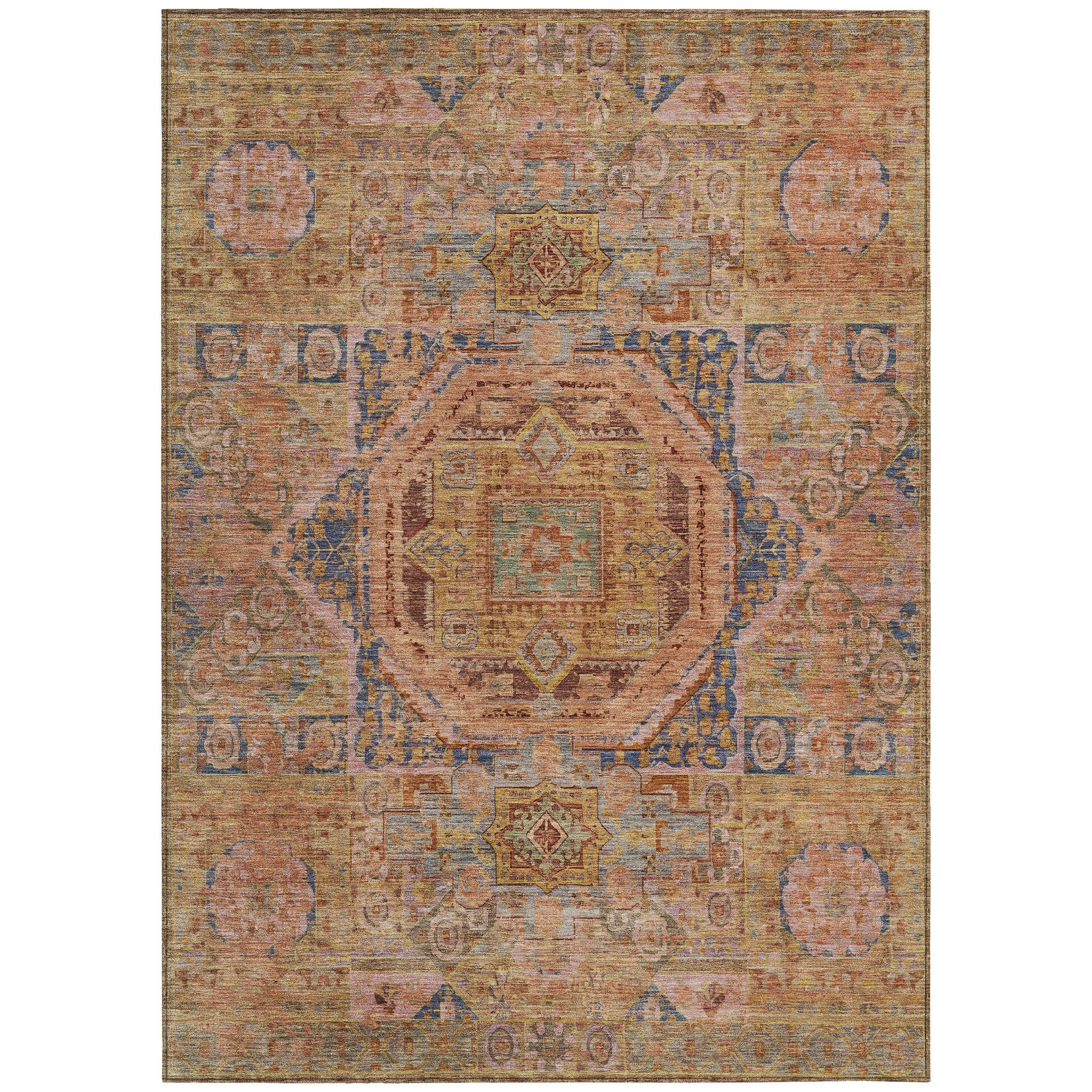 Showcasing a grand center medallion surrounded by meticulously detailed motifs, this rug draws from global patterns to create a rich, textured design. The intricate detailing of the motifs complements the boldness of the medallion, adding a refined touch. Its traditional style and global pattern offer an elegant fusion of classic and international elements. Designed for both indoor and outdoor spaces, this UV-stabilized rug features an ultra-thin construction that’s easy to clean and care for. Its machine-washable design adds convenience, while its family and pet-friendly nature ensures it can handle everyday wear and tear. Stylish and durable, it’s the perfect solution for busy households.