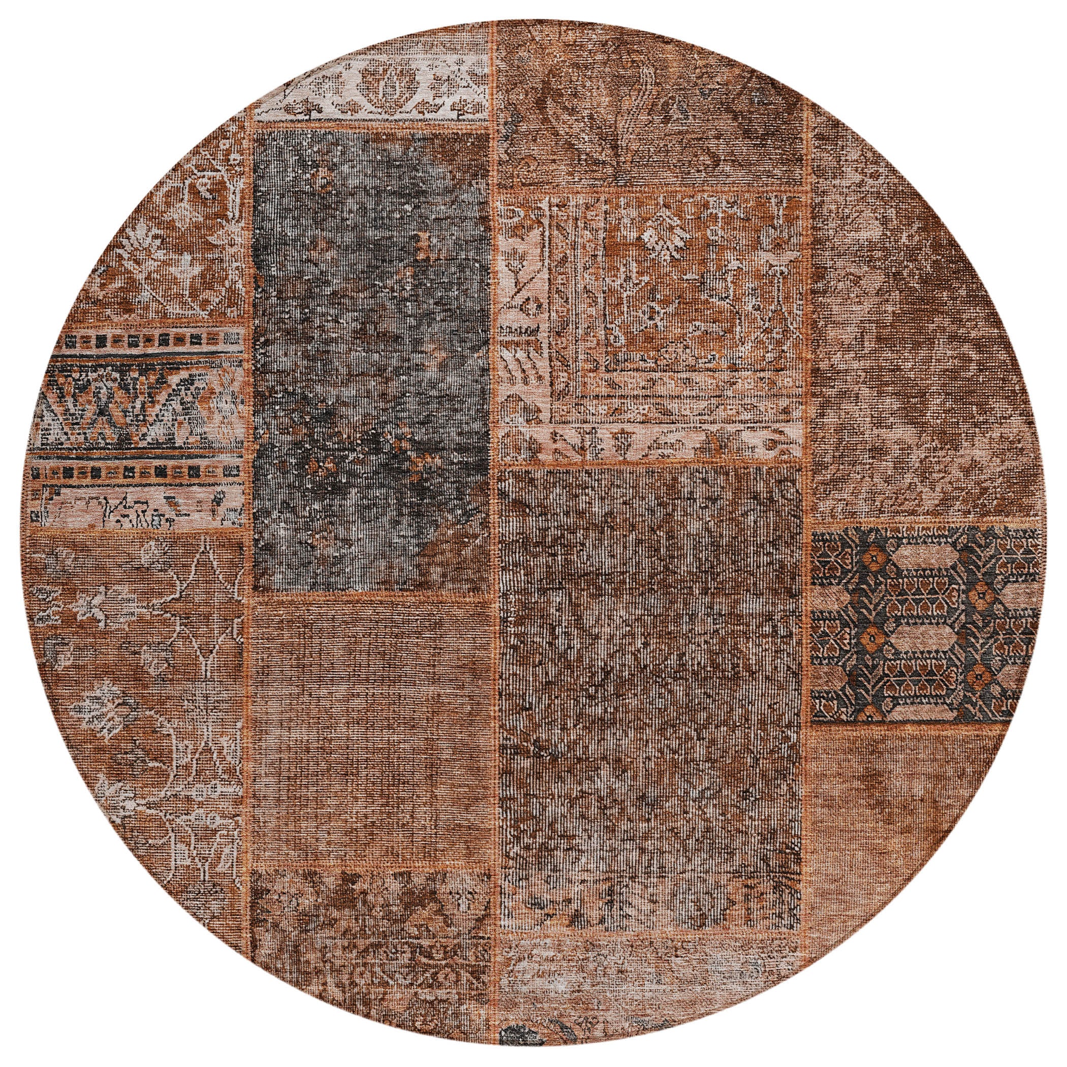 Chantille ACN669 Terracotta area rug, a stunning addition to your home decor. This rug features intricate details that come together in a captivating mosaic design, perfect for adding a touch of elegance to any room. Whether you have a transitional decor style or simply love the richness of patchwork designs, this rug is sure to complement your space beautifully.