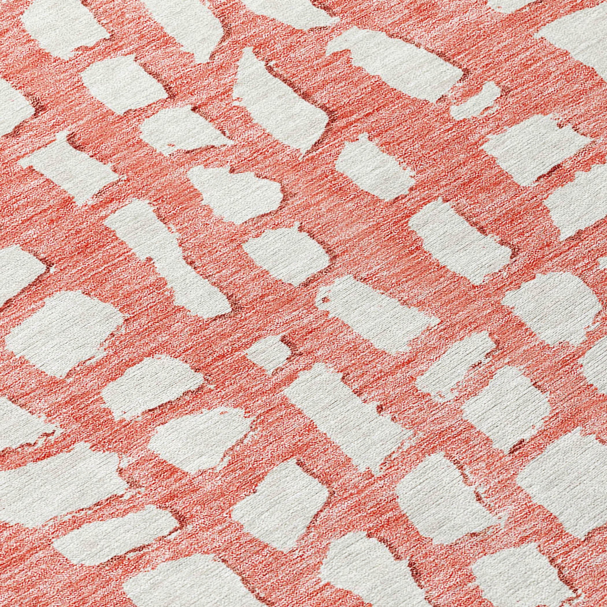 Chantille ACN754 Salmon rug, a stunning addition to elevate your space. Designed with an intriguing pattern of free-formed squares, this transitional piece exudes modern elegance and geometric charm. Its symmetrical layout adds a touch of sophistication to any room, making it a striking focal point.