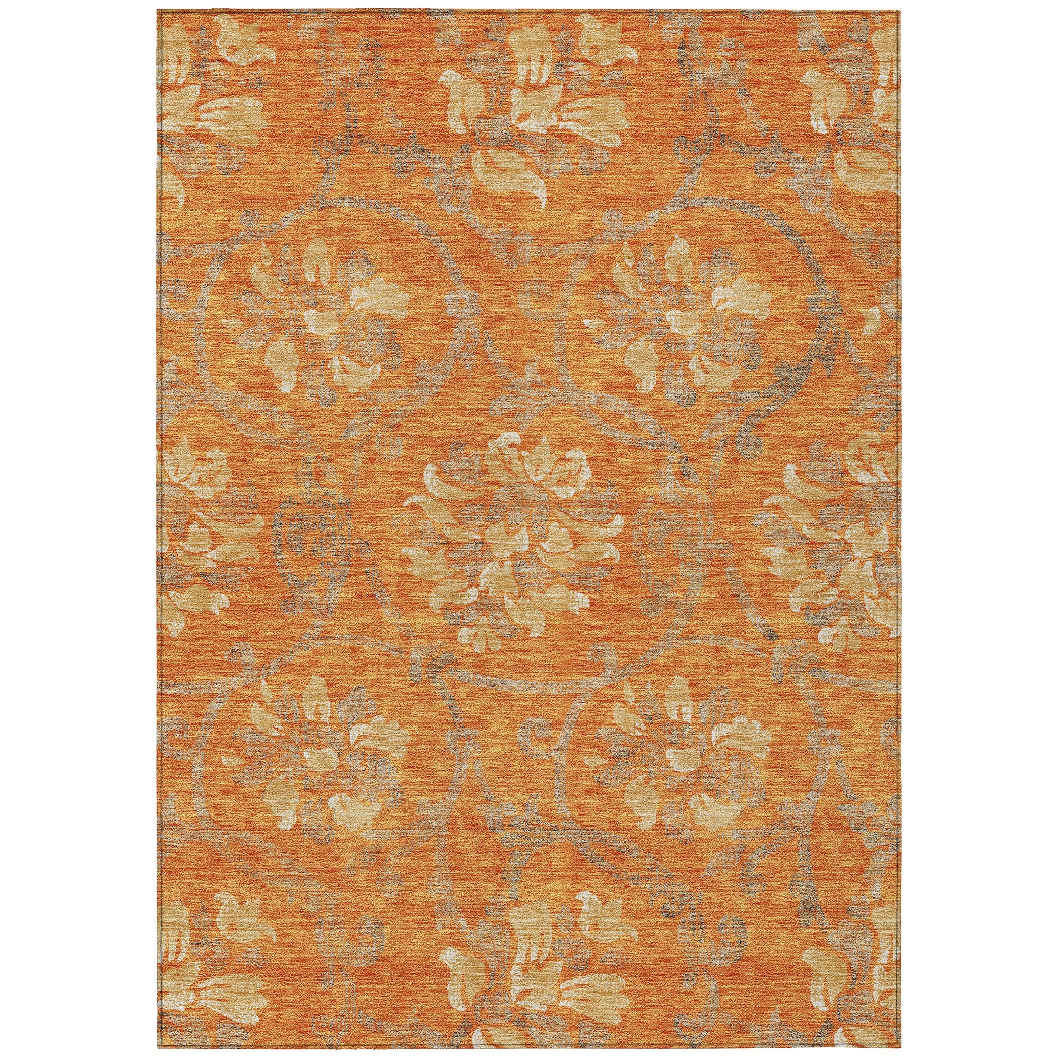 Chantille ACN762 Orange rug, a charming addition to any space. This rug features large floral motifs paired with intricate vine and leaf patterns, adding a touch of elegance to your decor. The traditional design exudes warmth and creates an inviting ambiance in any room.