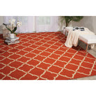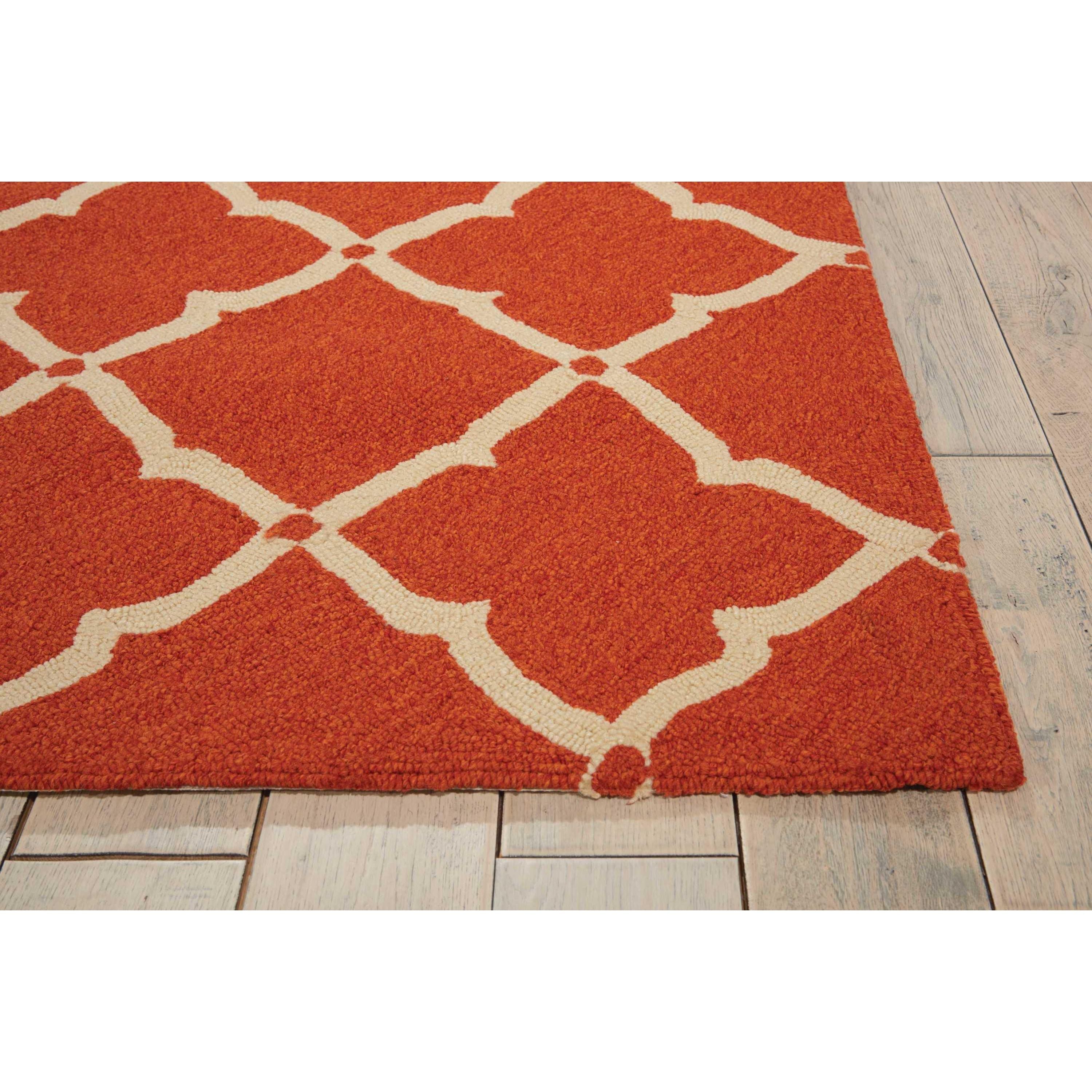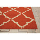 Portico POR01 Orange, a timeless and sophisticated broadloom that exudes elegance. The classic latticework pattern is a symbol of traditional design, offering a sense of purity and refinement to any space. This collection features an open work grid in a neutral tone, enhancing the vibrant colors and versatility of the rug.