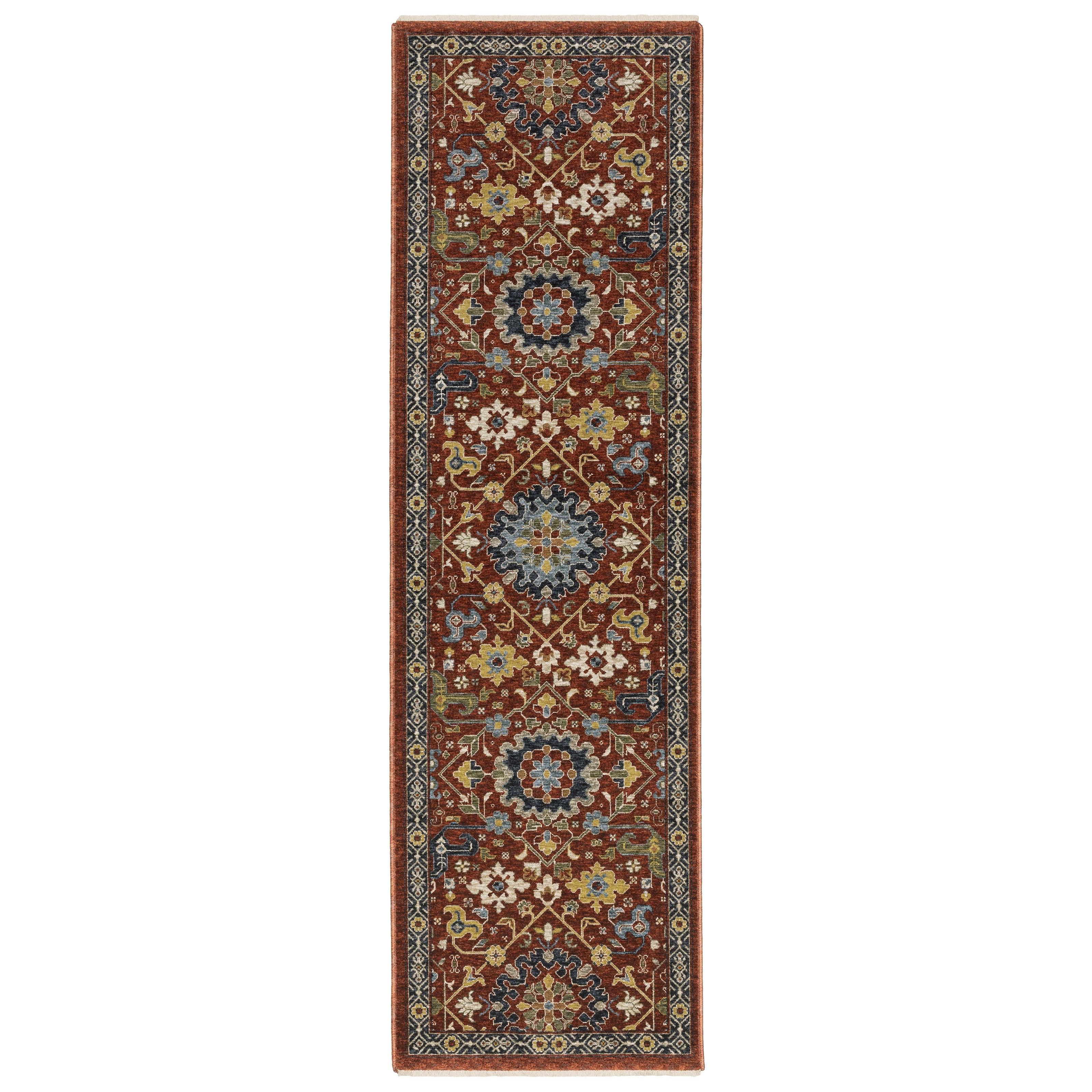 stunning Aberdeen 006R1 rug collection, where each piece tells a story of rich heritage and timeless elegance. Crafted from luxurious space-dyed polyester, these rugs boast both durability and beauty in a high-density, low profile design. The minimal self-fringe adds a touch of bohemian charm, complementing the intricate details and saturated jewel tones that exude nostalgia and traditional allure.